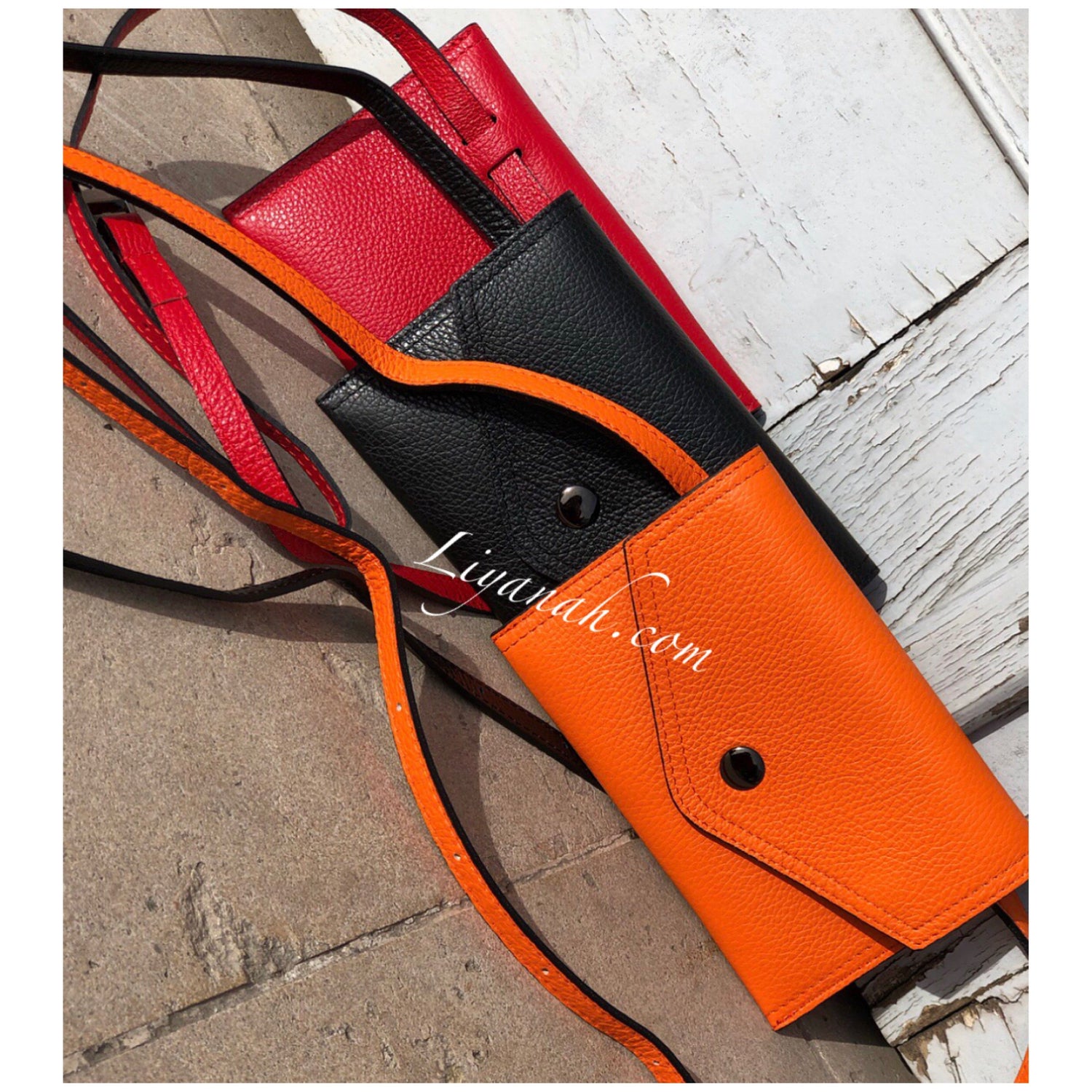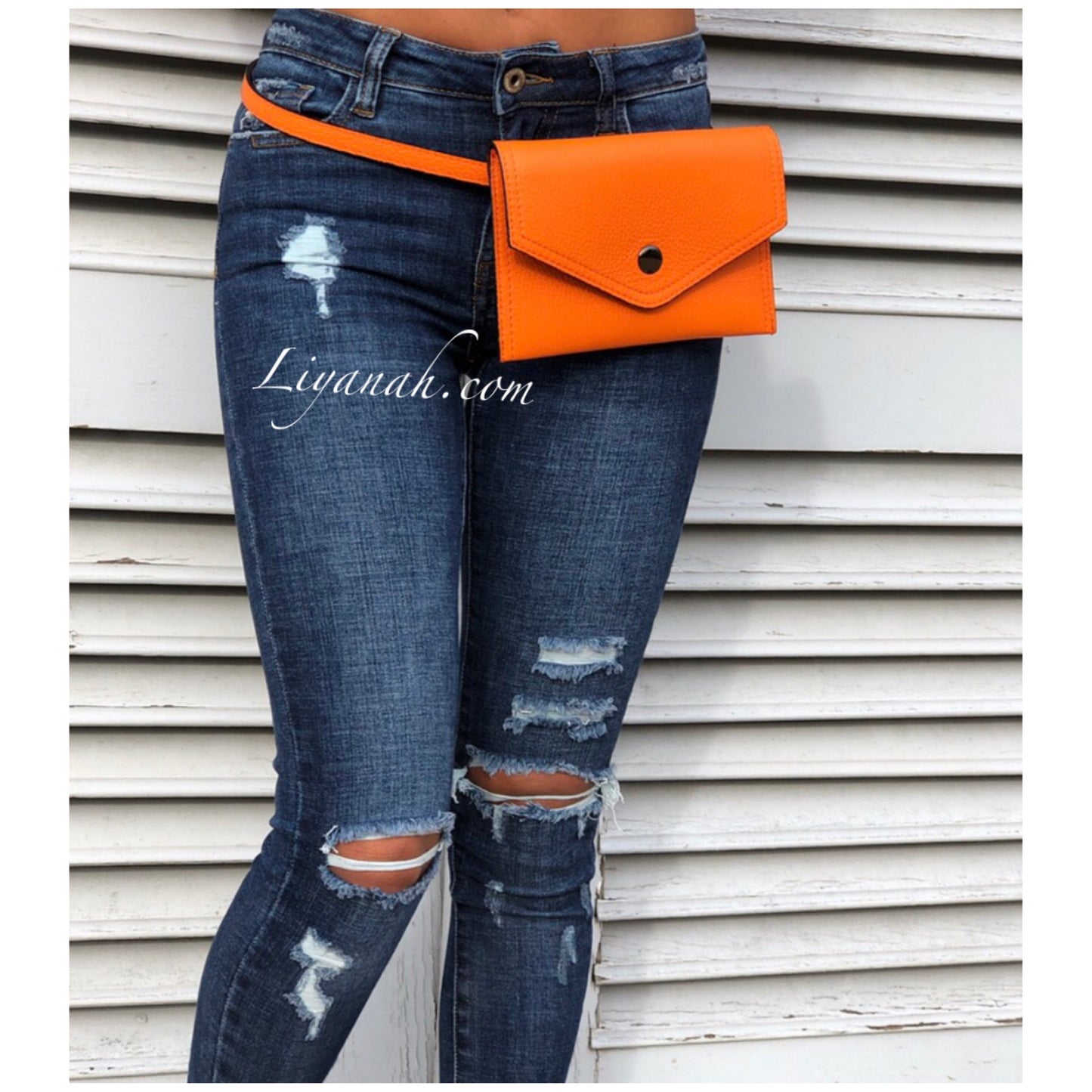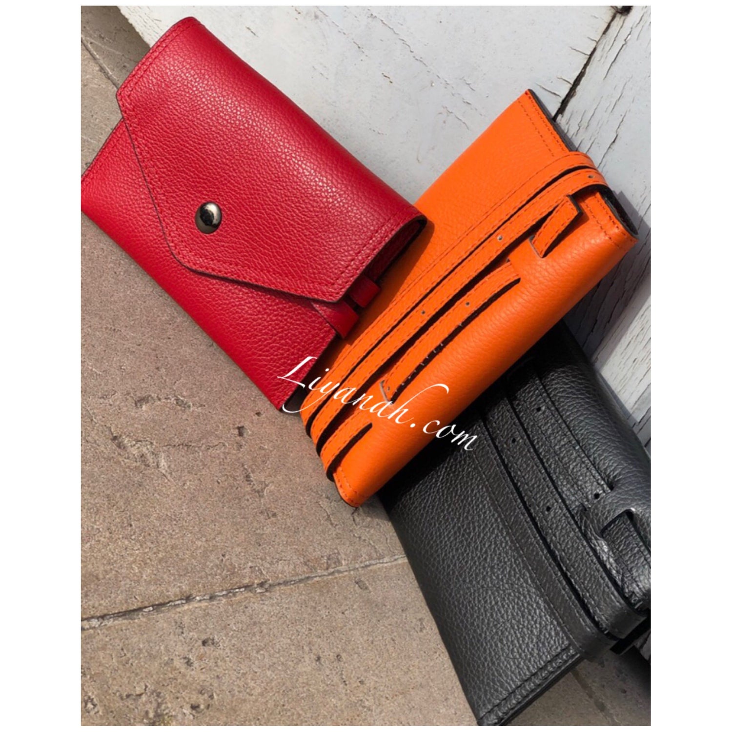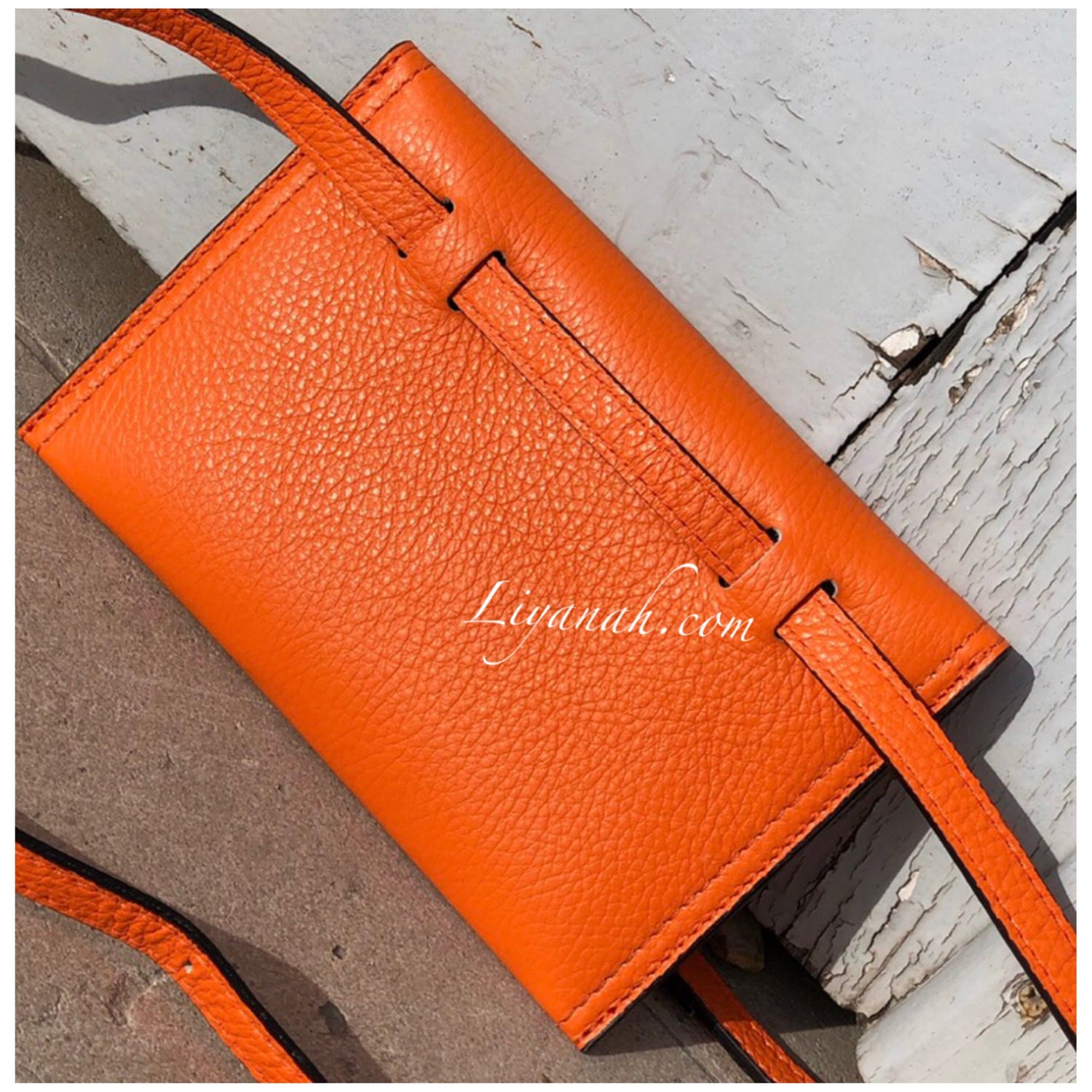 Pochette Ceinture en Cuir Petit Modèle TALYA ORANGE - Forme pochette à fermeture bouton, pochette petite et fine avec intérieur petite poche fermeture zip, ceinture réglable non fixe !! 100% CUIR 🌸 Disponible en Noir, Rouge ou Orange !! Petit modèle - Dimension : 20 cm * 13 cm - Longueur ceinture : 121 cm ✖️ Les sacs vendus sur notre site ne sont ni repris ni échangé