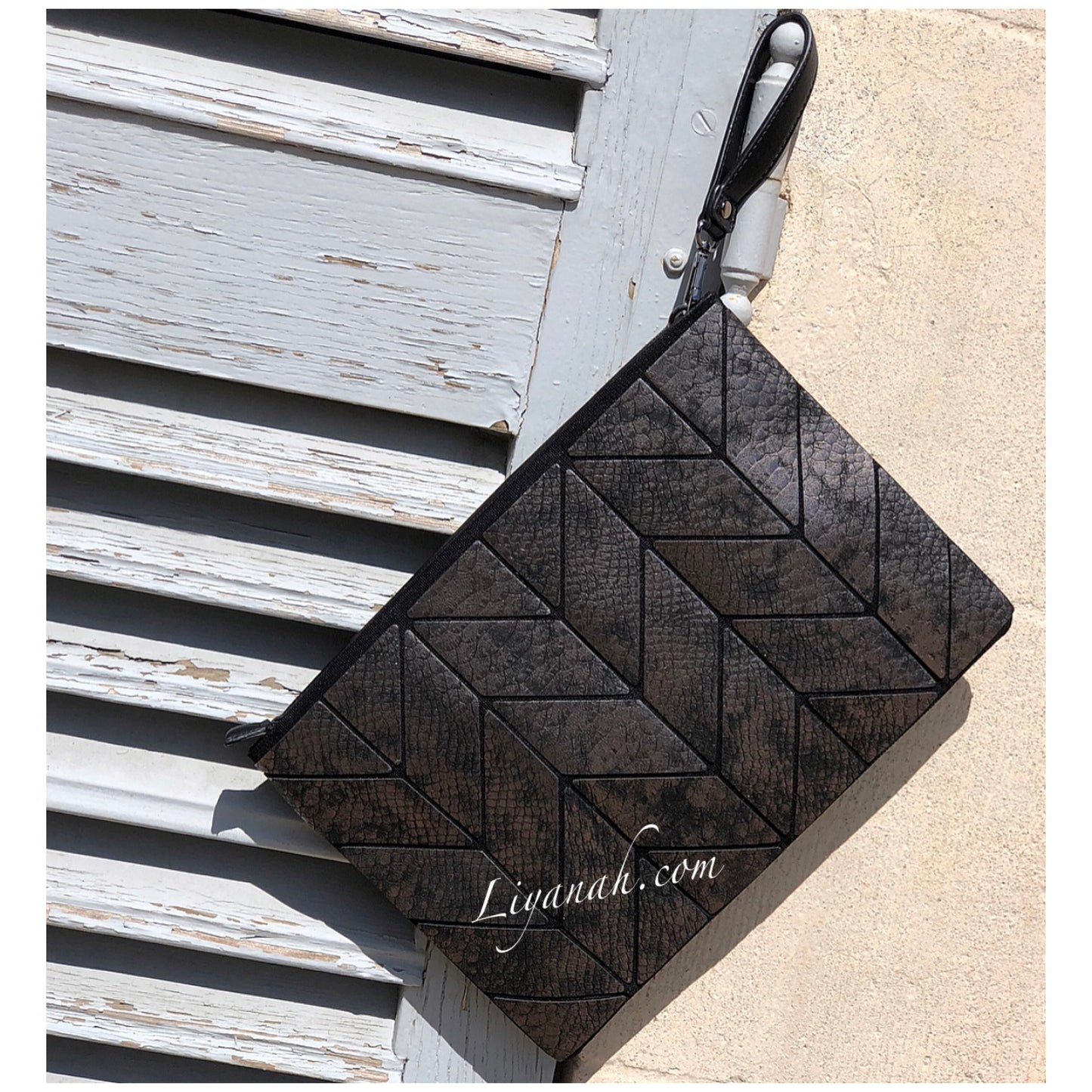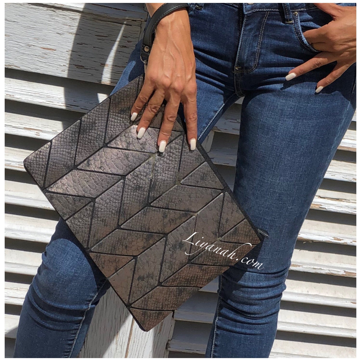 POCHETTE Modèle MAHA BRONZE Se porte Avec chaîne à l’épaule, aux poignets Ou en pochette Fermeture Zip ... Intérieur tissus et poches - ✖️ SYNTHÉTIQUE ✖️23 * 32 cm - Les sacs vendus sur notre site ne sont ni repris ni échangé