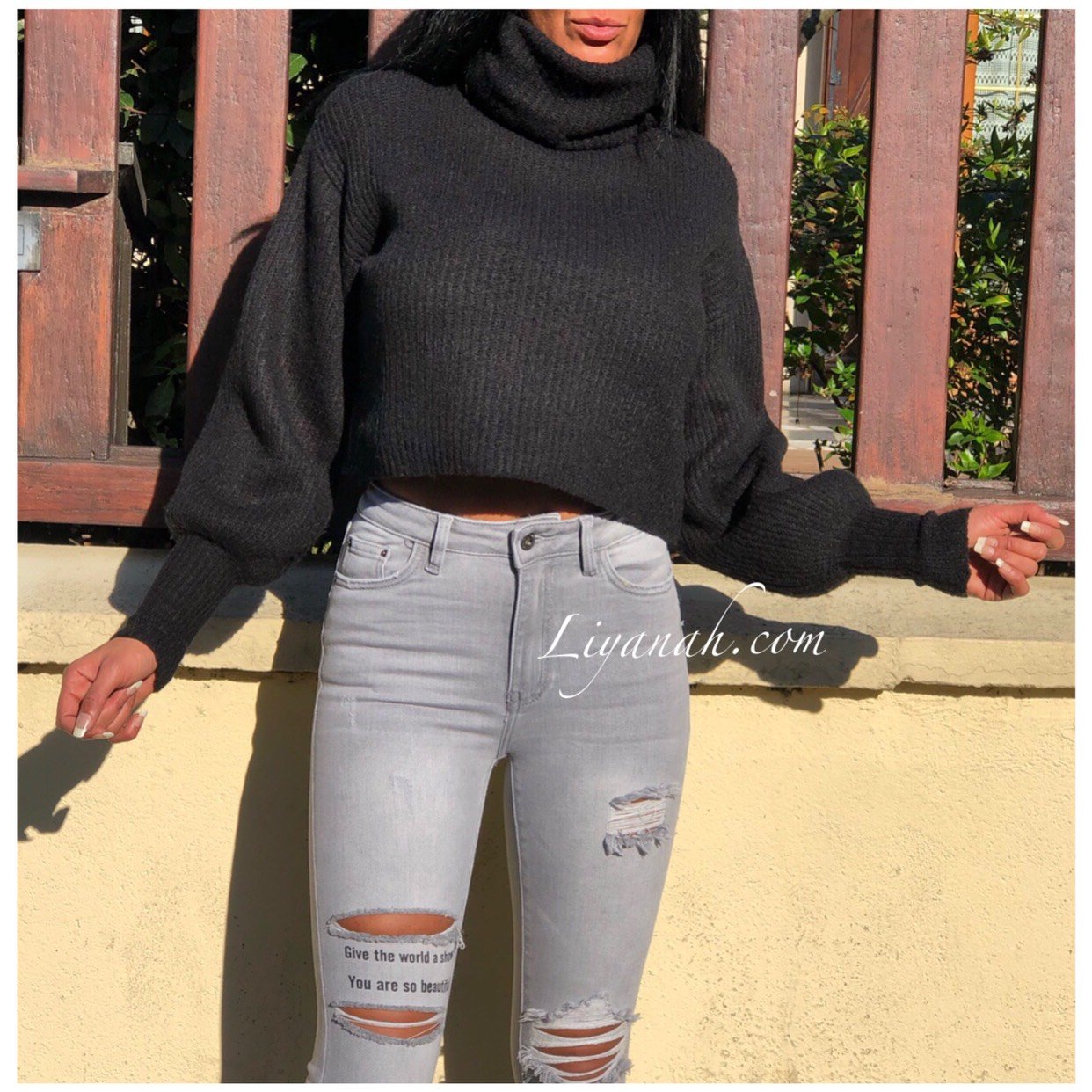 Pull Cropped Col Roulé Modèle KALARA NOIR - Pull qui se porte court avec un col Roulé Haut, évasé à la taille et resserrer aux poignets, des manches style Bishop (large et resserrer aux poignets) Matière tout doux et légèrement côtelé !!! 75% Acrylique 25% Nylon 💋 Taille Unique du 34 au 40 - Disponible en Noir et Gris