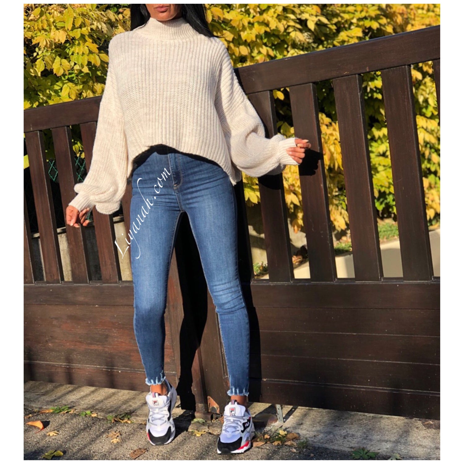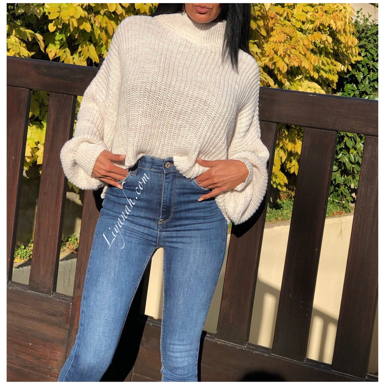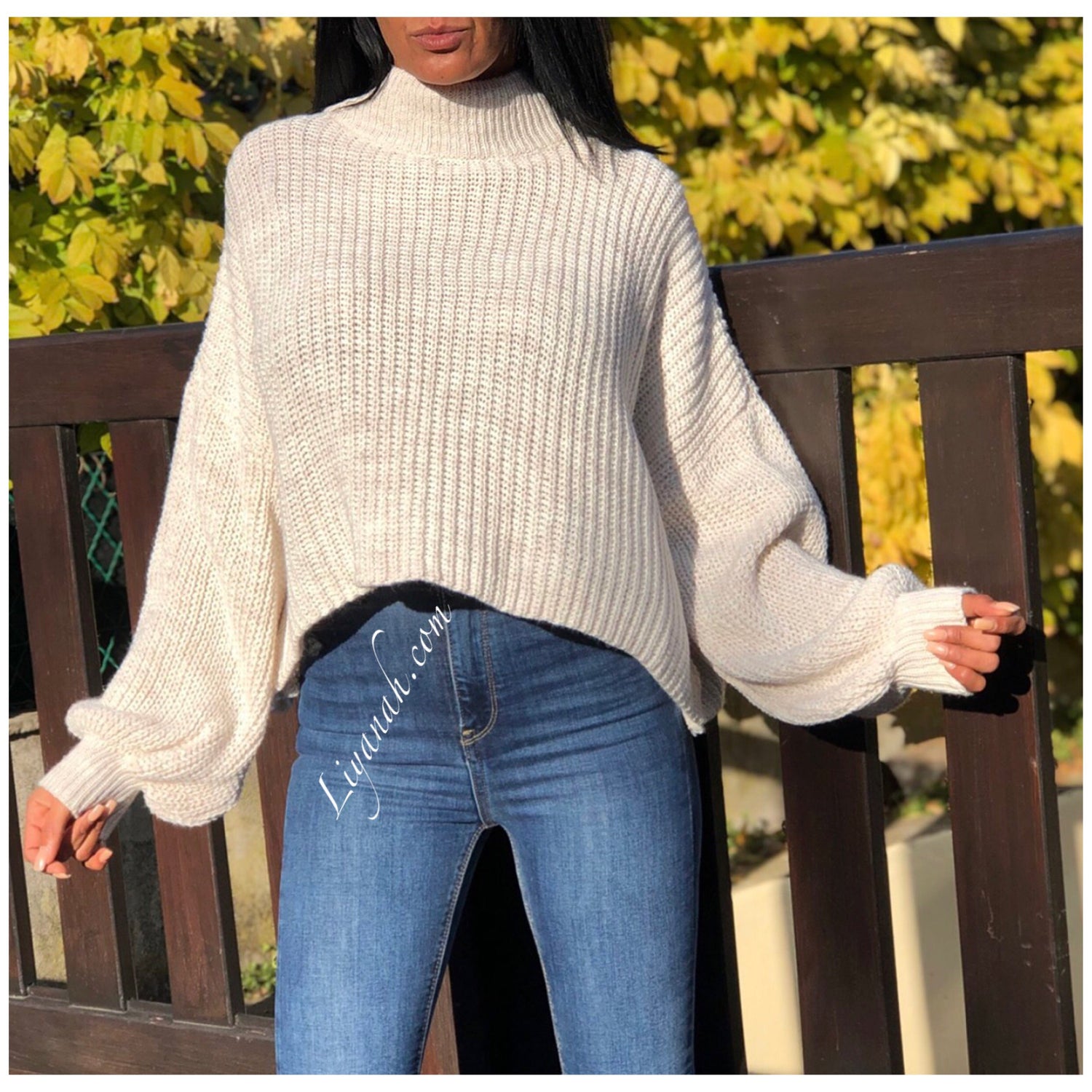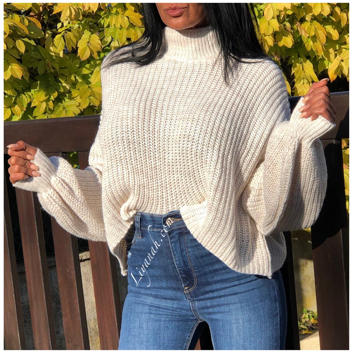 Pull Cropped Modèle FAMARYA ÉCRU- Pull qui se porte court avec un col Haut tombant et coupe large vers le bas, des manches style Bishop (large et resserrer aux poignets) Grosse maille transparente qui laisse deviner légèrement la silhouette !!! 65% Acrylique 25% Polyamide 10% Laine 💋 Disponible en Noir, Écru, Rouge, Kaki, Gris et Bordeaux