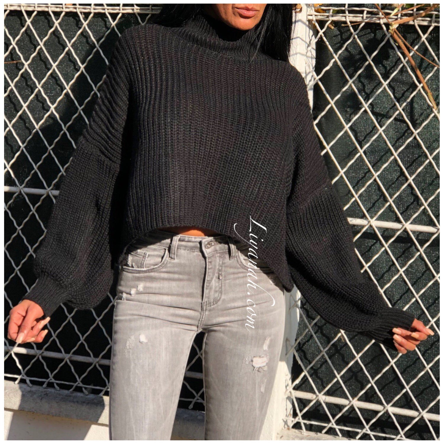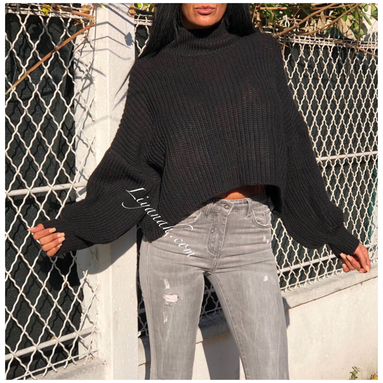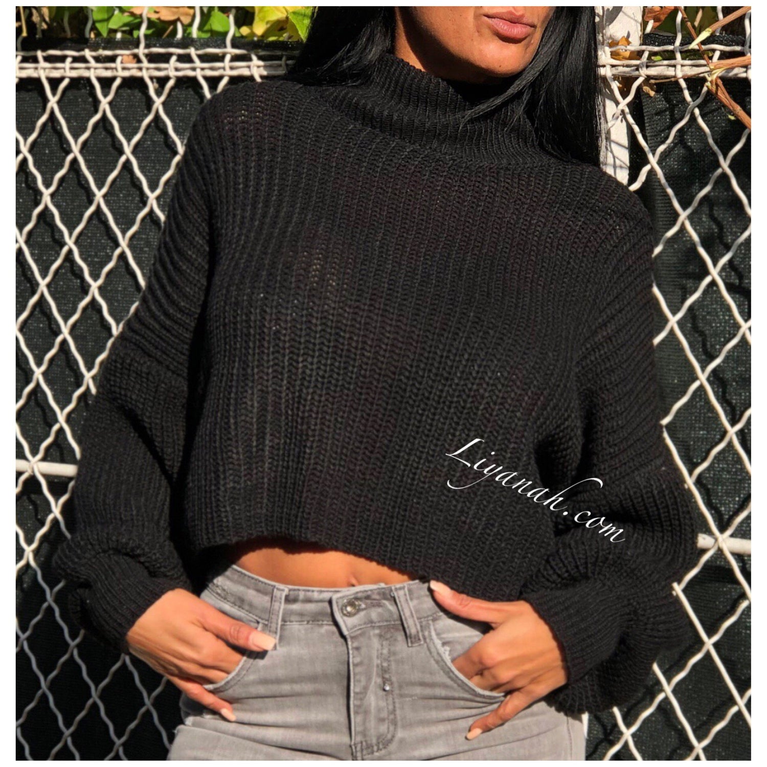 Pull Cropped Modèle FAMARYA NOIR - Pull qui se porte court avec un col Haut tombant et coupe large vers le bas, des manches style Bishop (large et resserrer aux poignets) Grosse maille transparente qui laisse deviner légèrement la silhouette !!! 65% Acrylique 25% Polyamide 10% Laine 💋 Disponible en Noir, Écru, Rouge, Kaki, Gris et Bordeaux