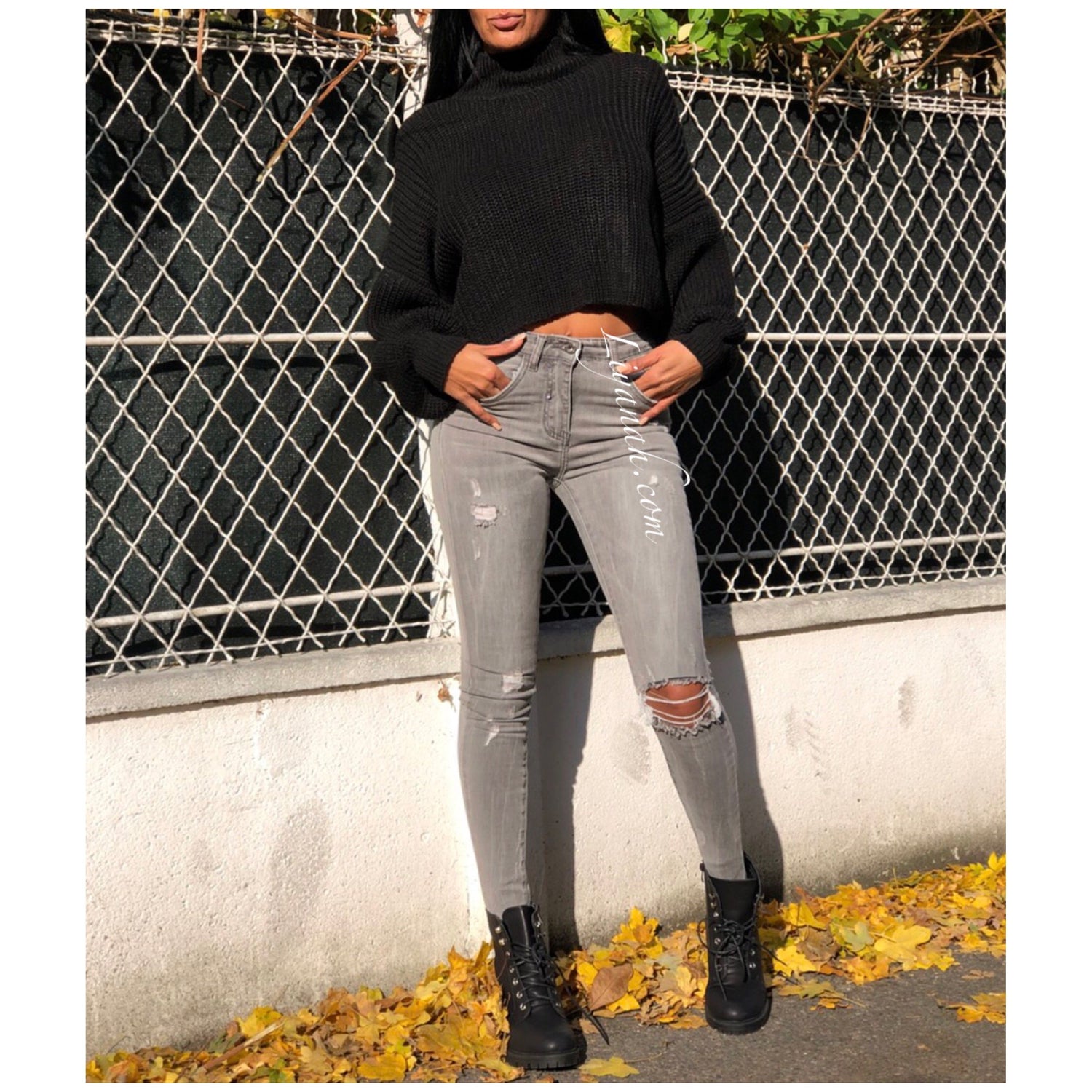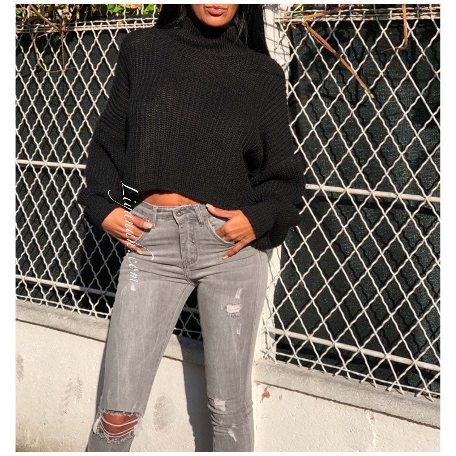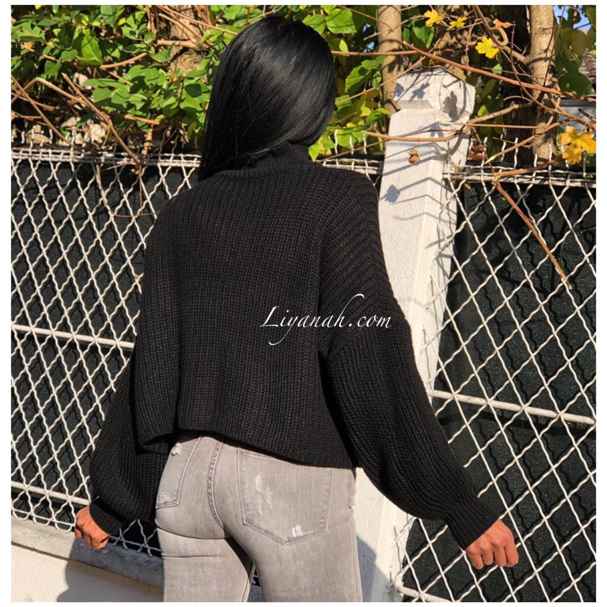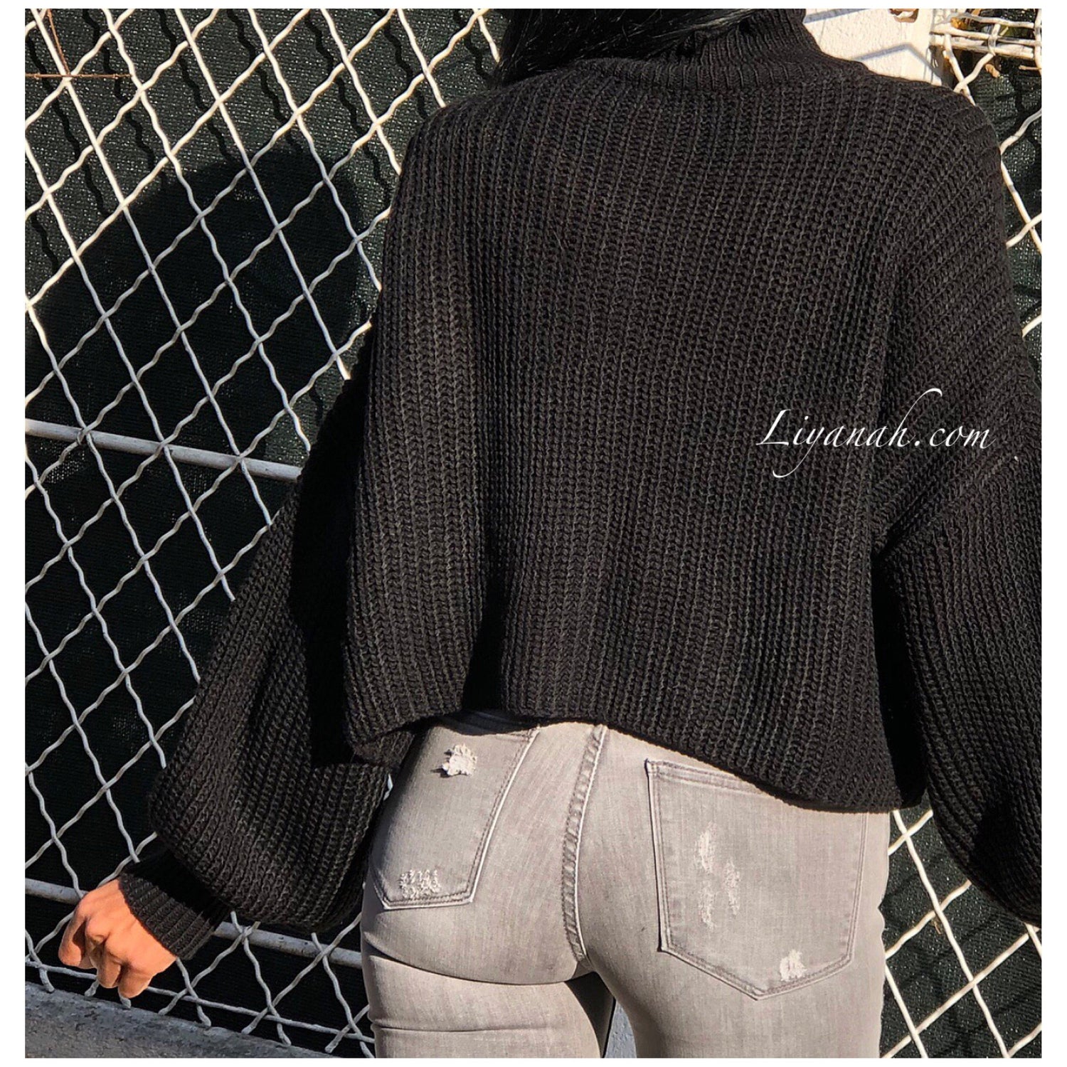 Pull Cropped Modèle FAMARYA NOIR - Pull qui se porte court avec un col Haut tombant et coupe large vers le bas, des manches style Bishop (large et resserrer aux poignets) Grosse maille transparente qui laisse deviner légèrement la silhouette !!! 65% Acrylique 25% Polyamide 10% Laine 💋 Disponible en Noir, Écru, Rouge, Kaki, Gris et Bordeaux