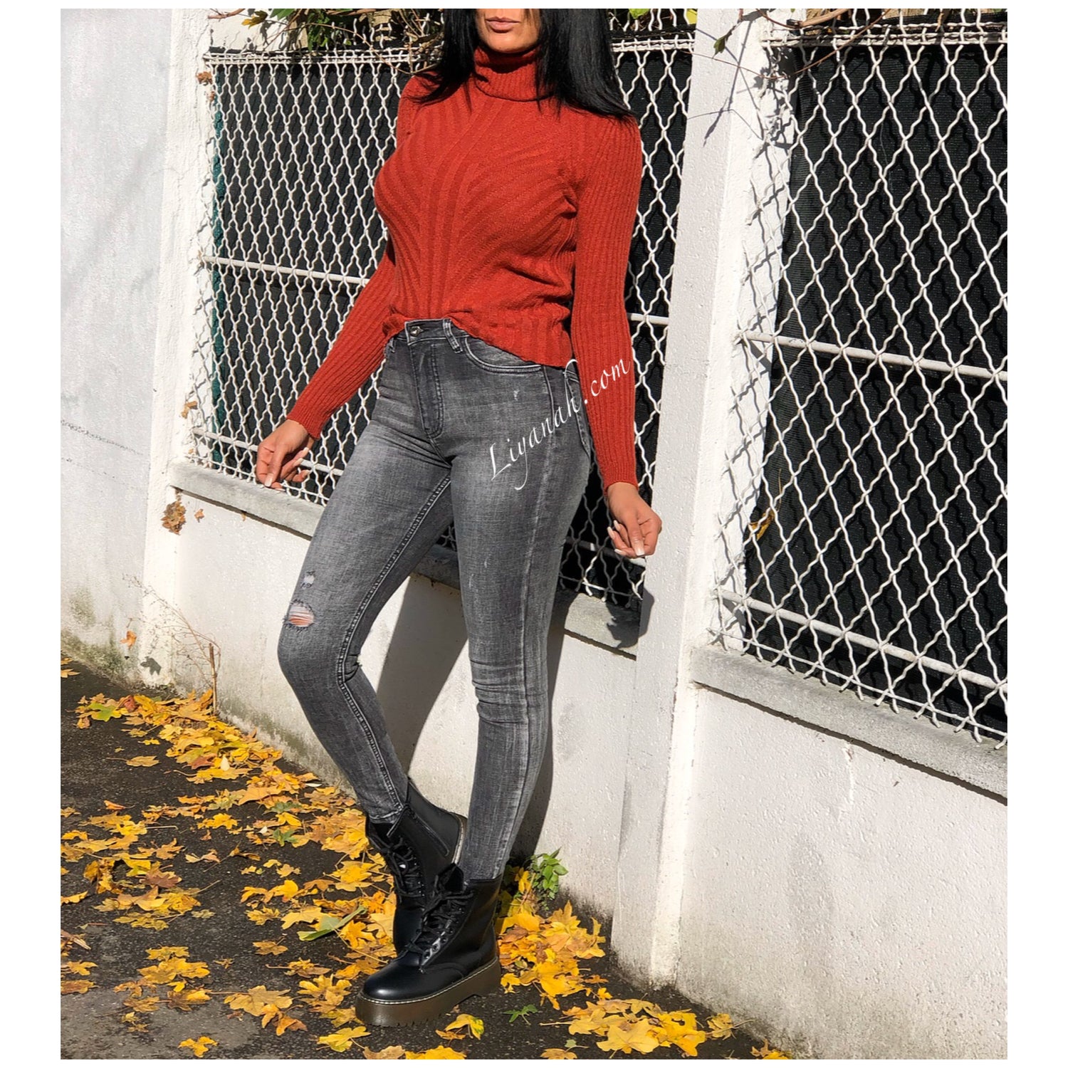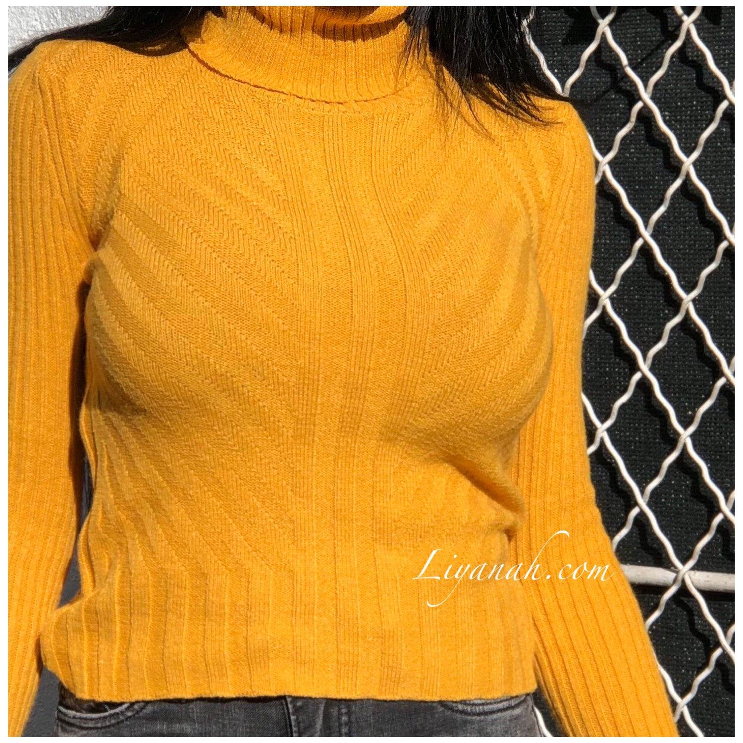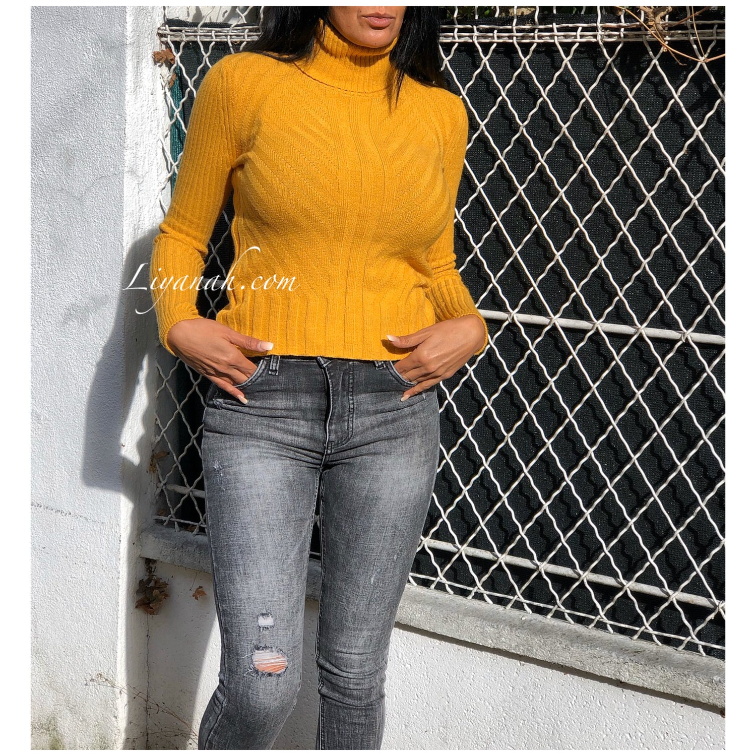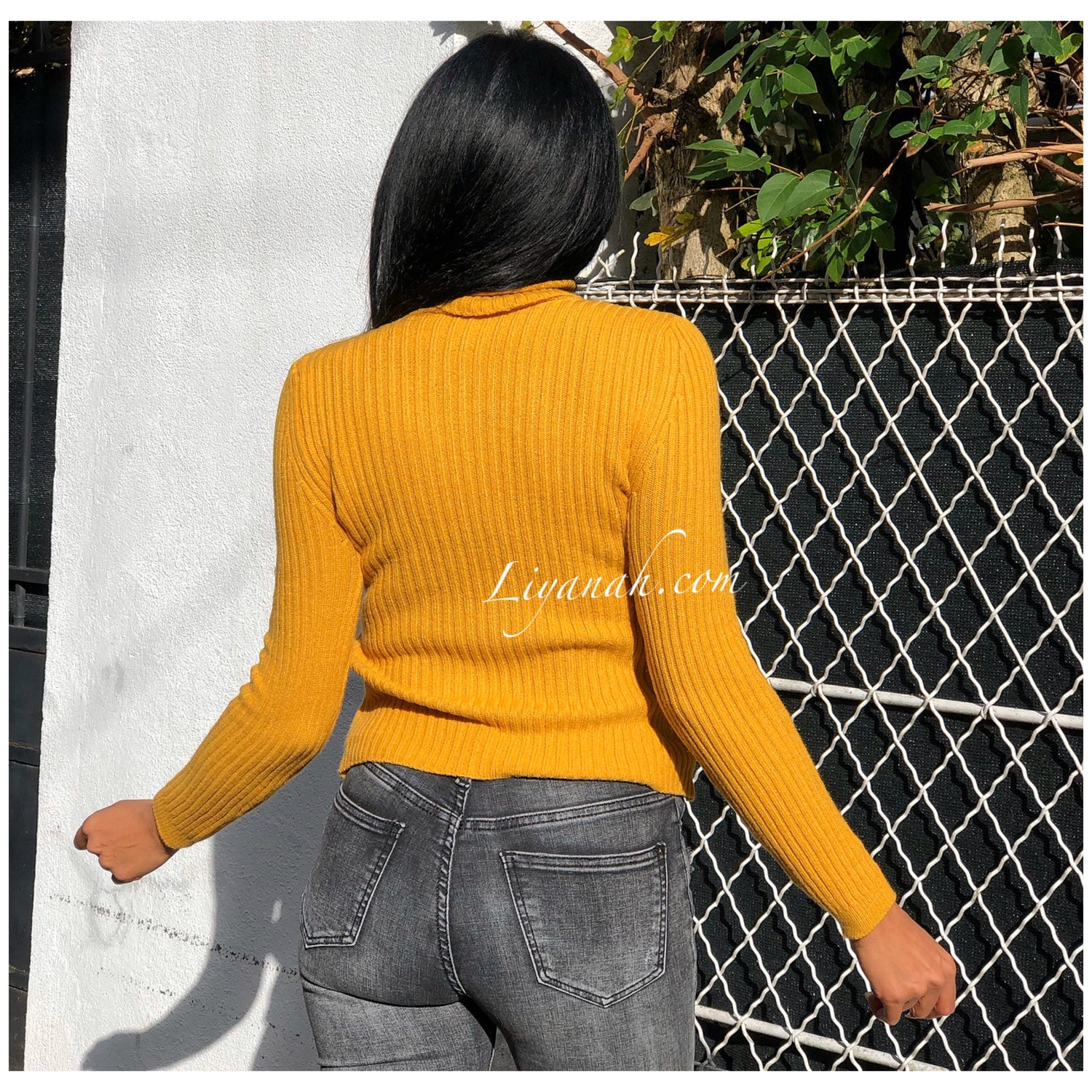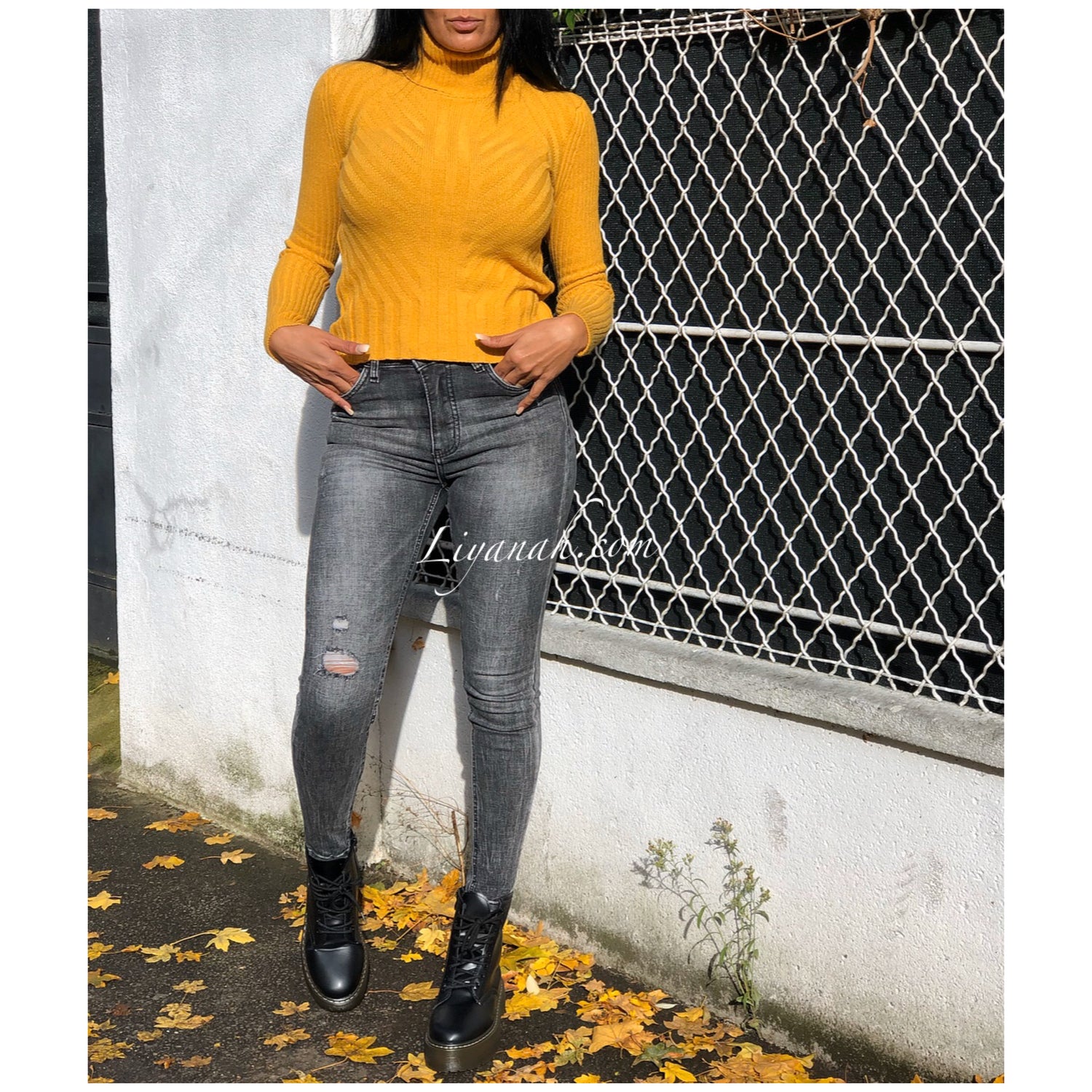 Pull Modèle EYA ROUILLE ou MOUTARDE - Pull col roulé fin et près du corps, détails côtelé - Taille unique du 34 au 38 - 52% Viscose 21% Polyamide 26% PBT