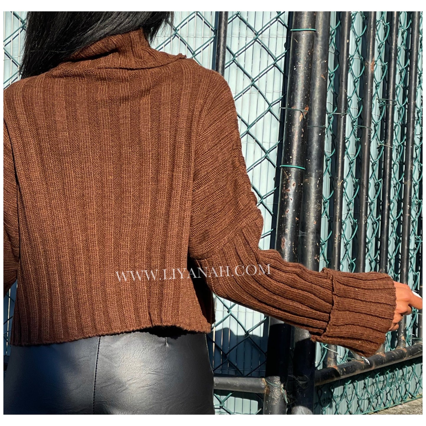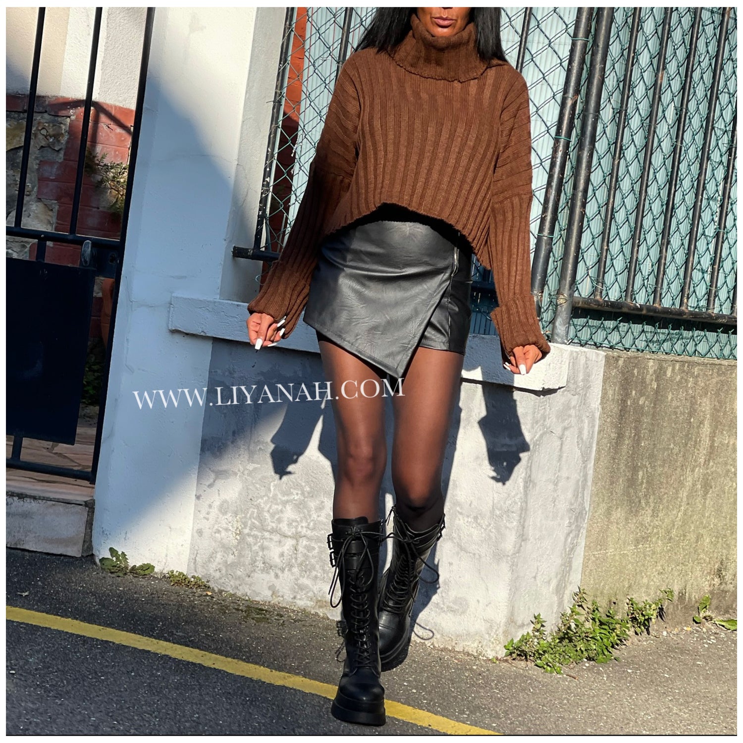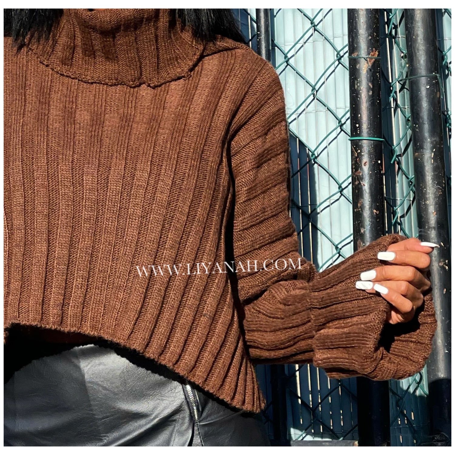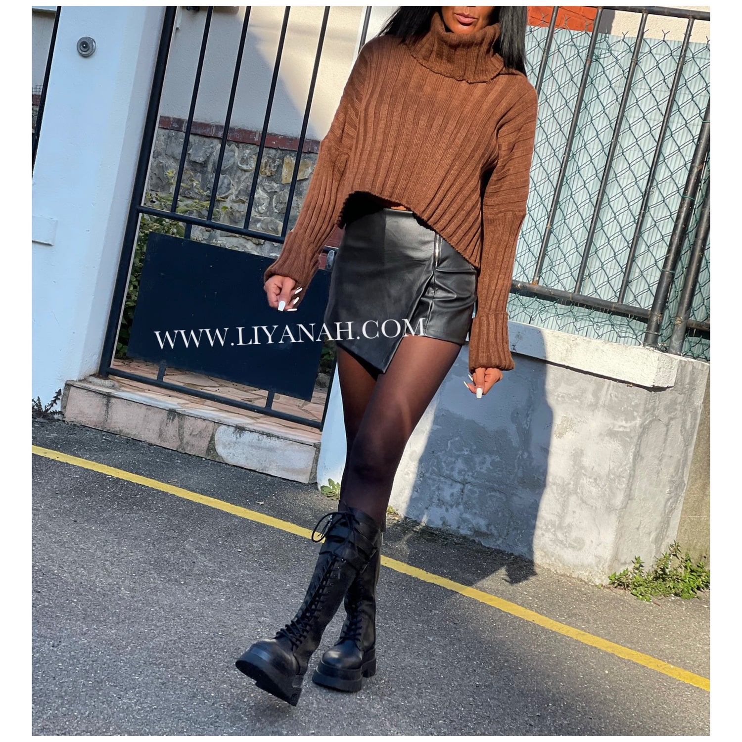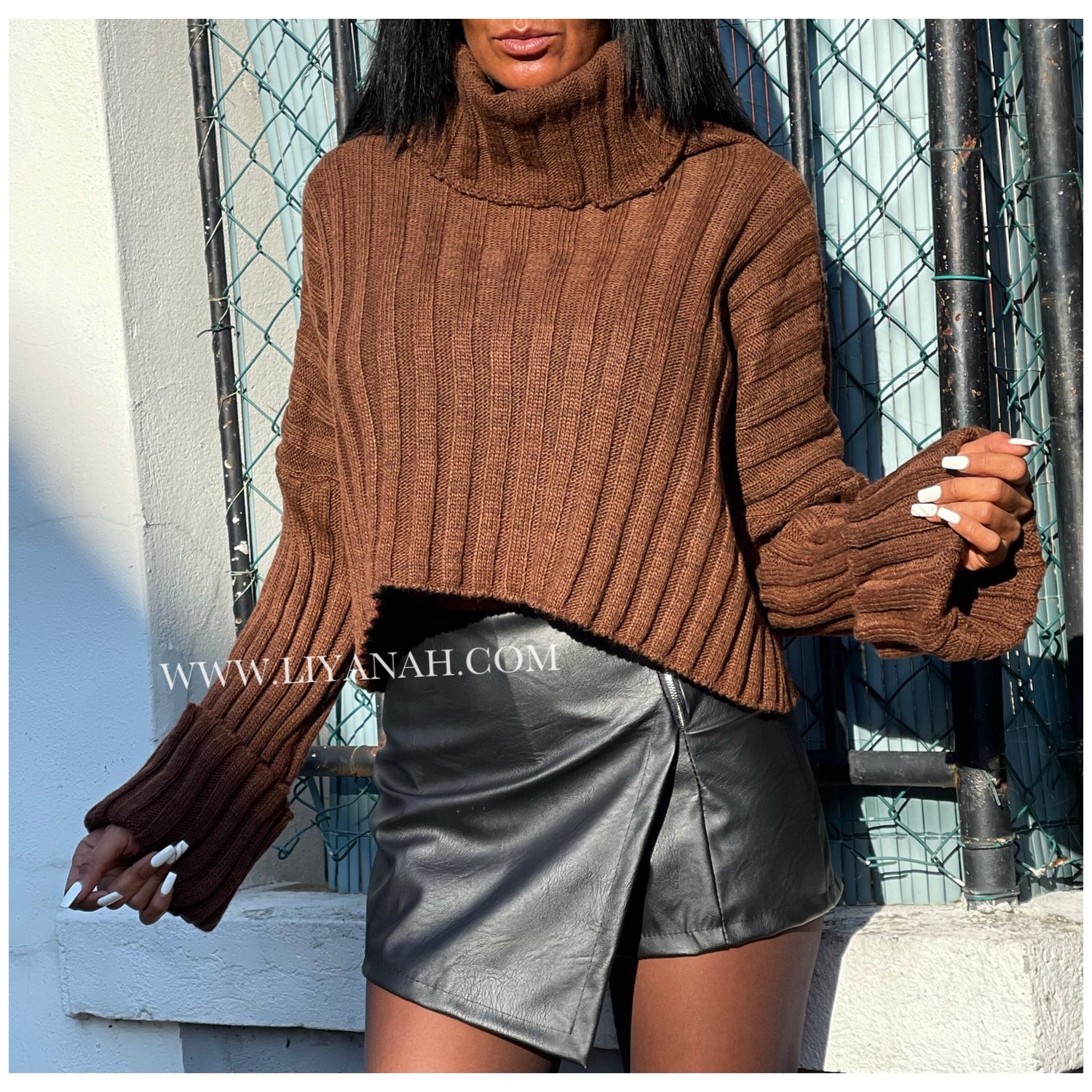 Pull large, côtelé et col roulé tombant - TAILLE UNIQUE DU 34 au 38 - 100% Acrylique - Notre Modèle fait une taille 34 et mesure 1m70