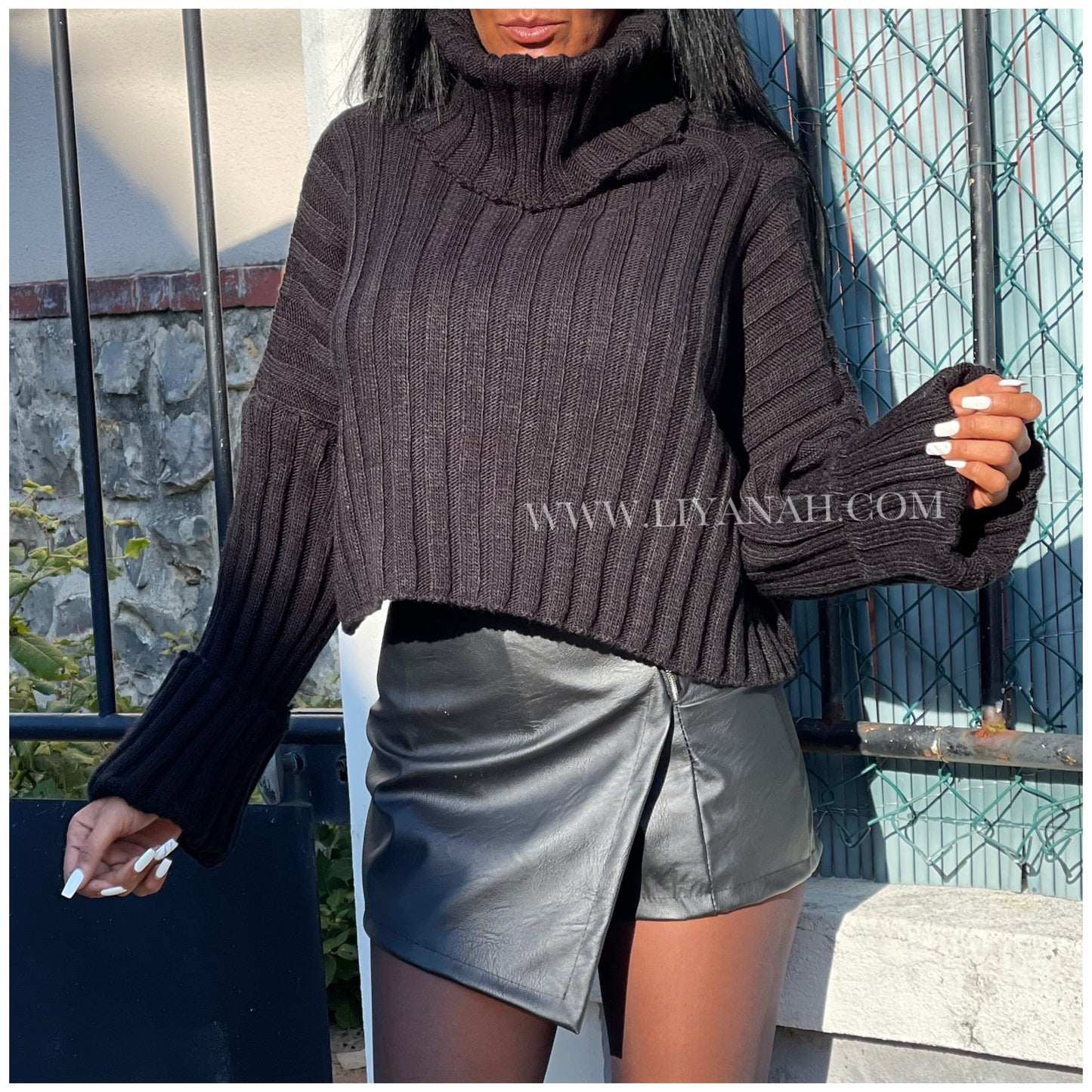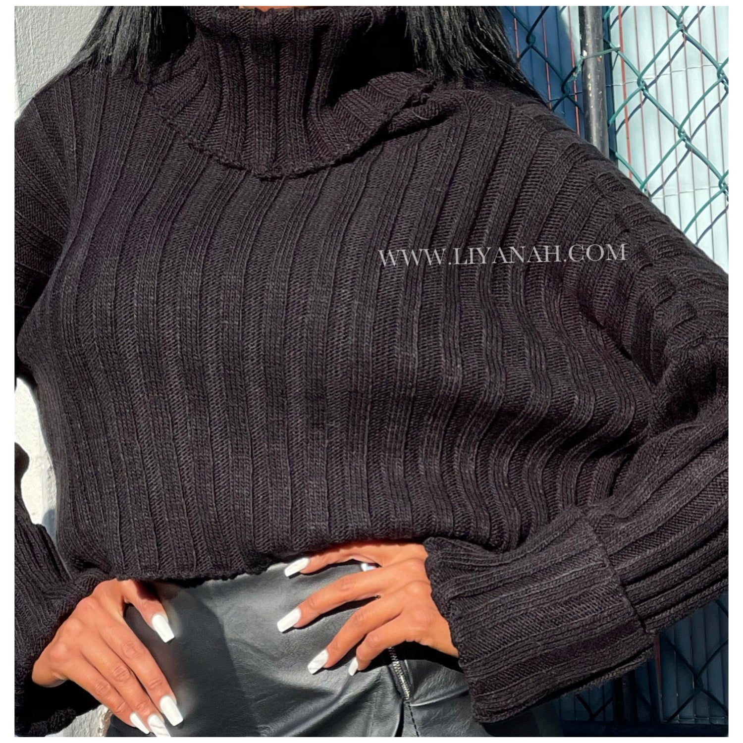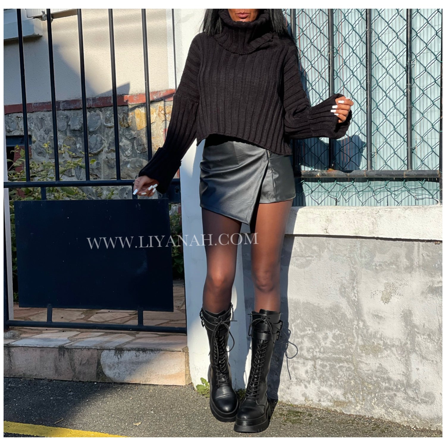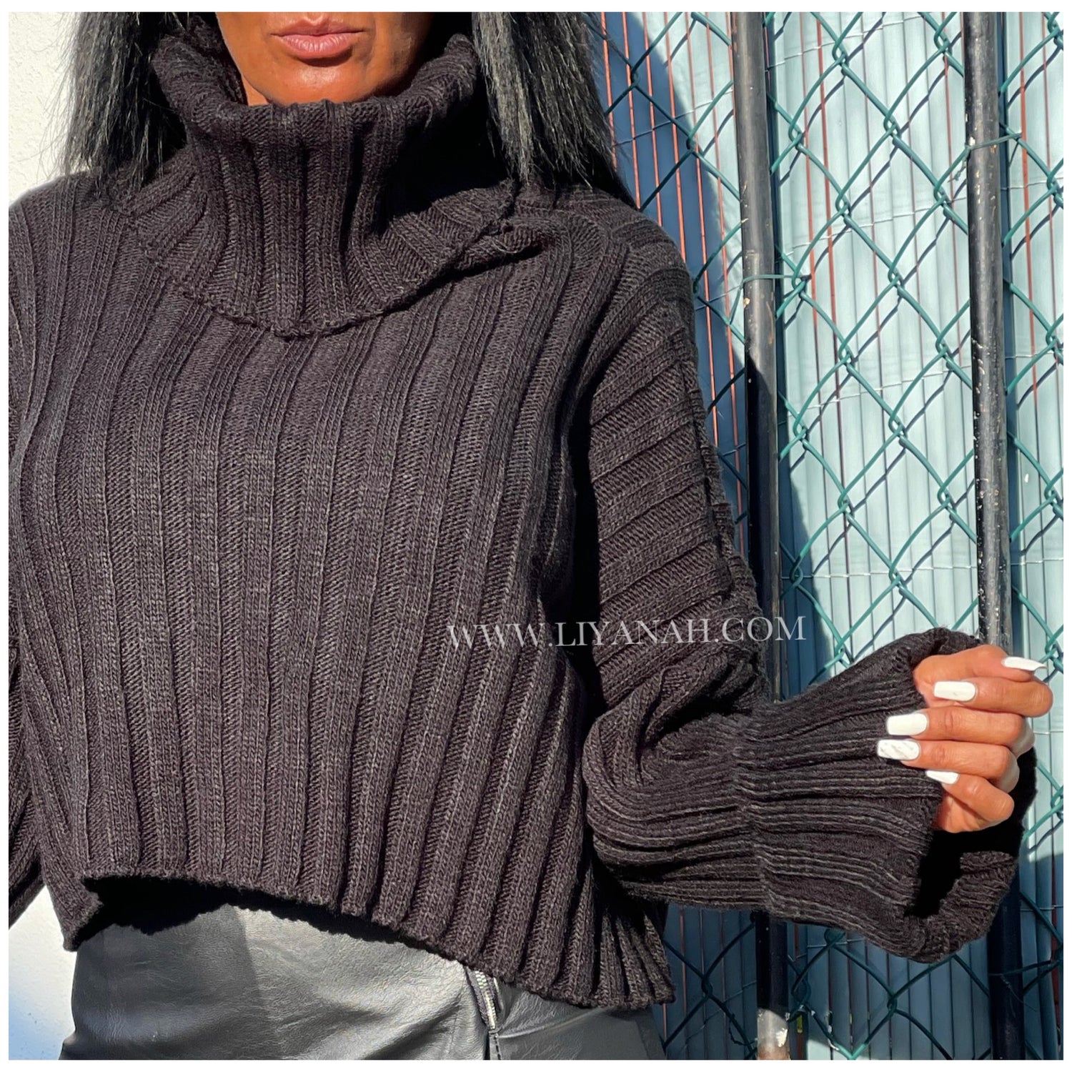 Pull large, côtelé et col roulé tombant - TAILLE UNIQUE DU 34 au 38 - 100% Acrylique - Notre Modèle fait une taille 34 et mesure 1m70