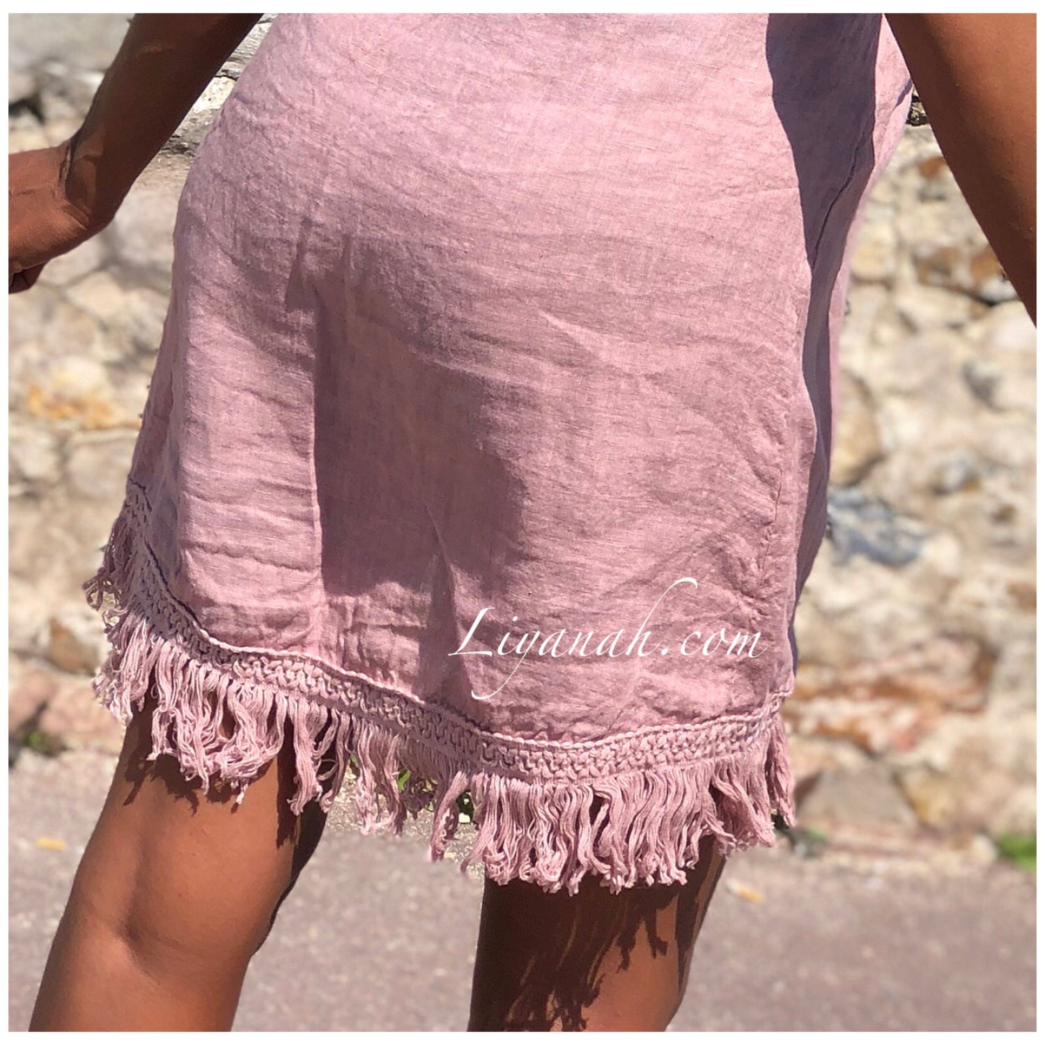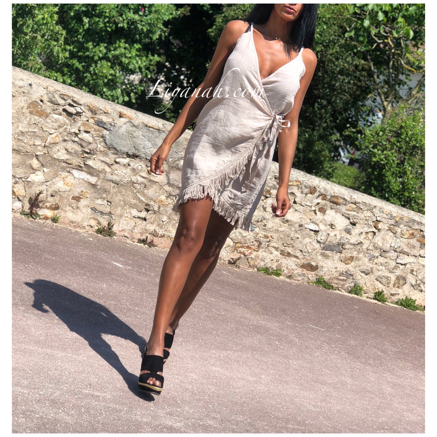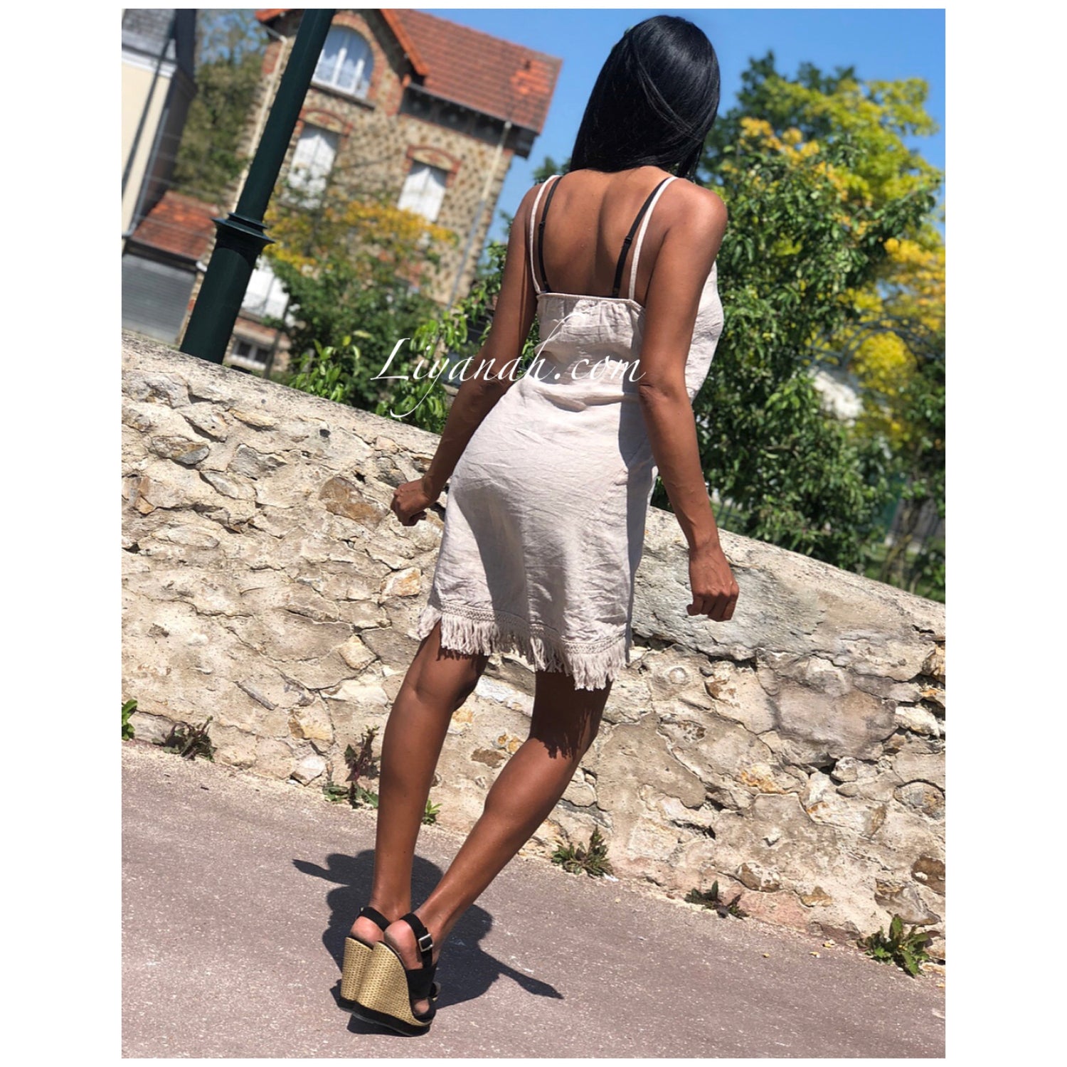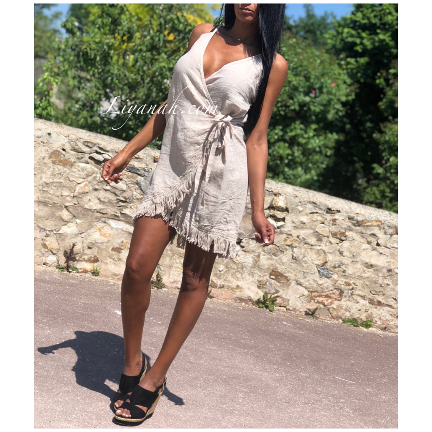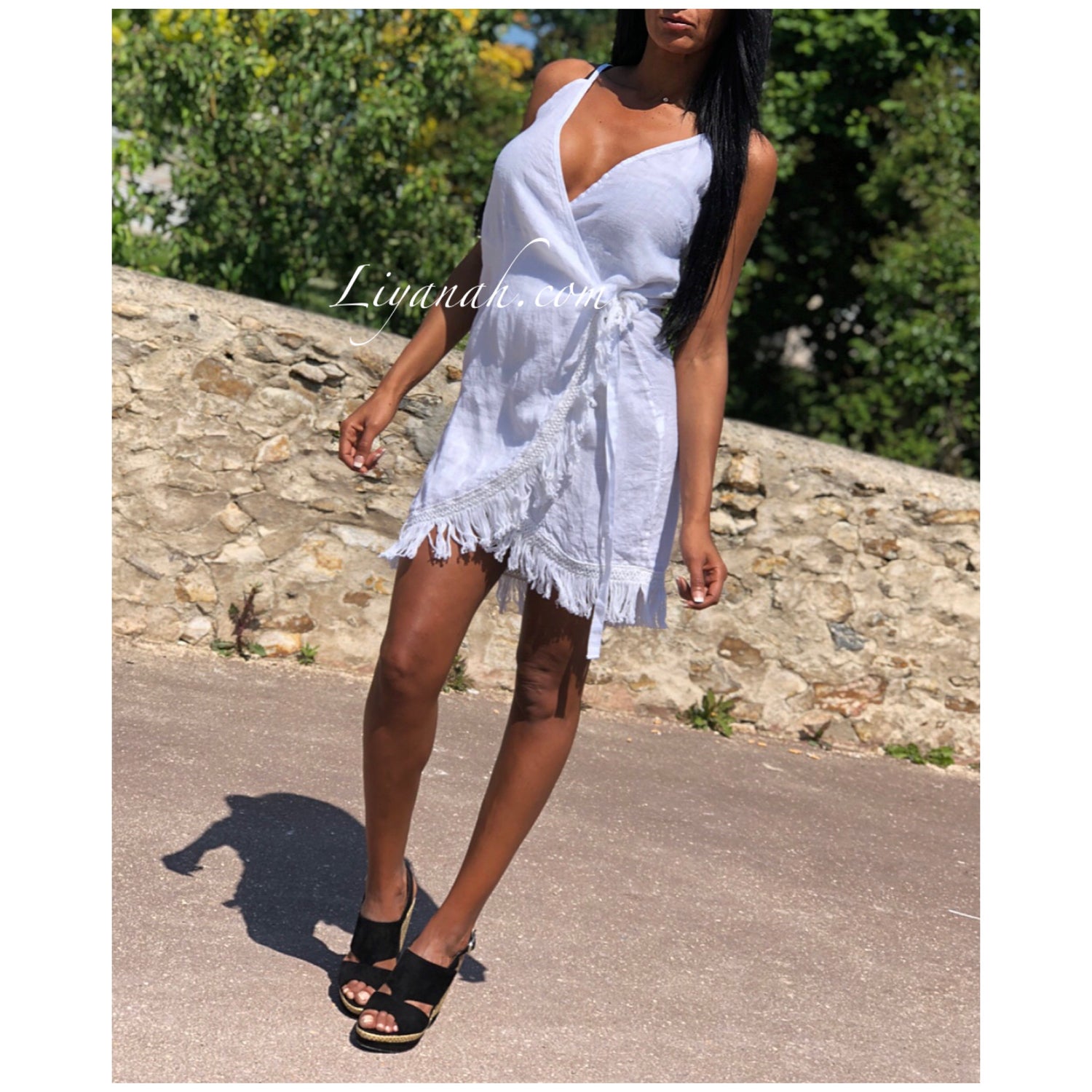 Robe Cache cœur Courte Modèle FAHYMA Écru, Blanc ou Rose Elle est totalement décontractée - On craque sur le modèle Cache cœur !!! 100% LIN ... 🌸 Détails sur le contour de la robe 🌸 Taille unique De La taille 34 à 38 - Longueur environ 86 cm