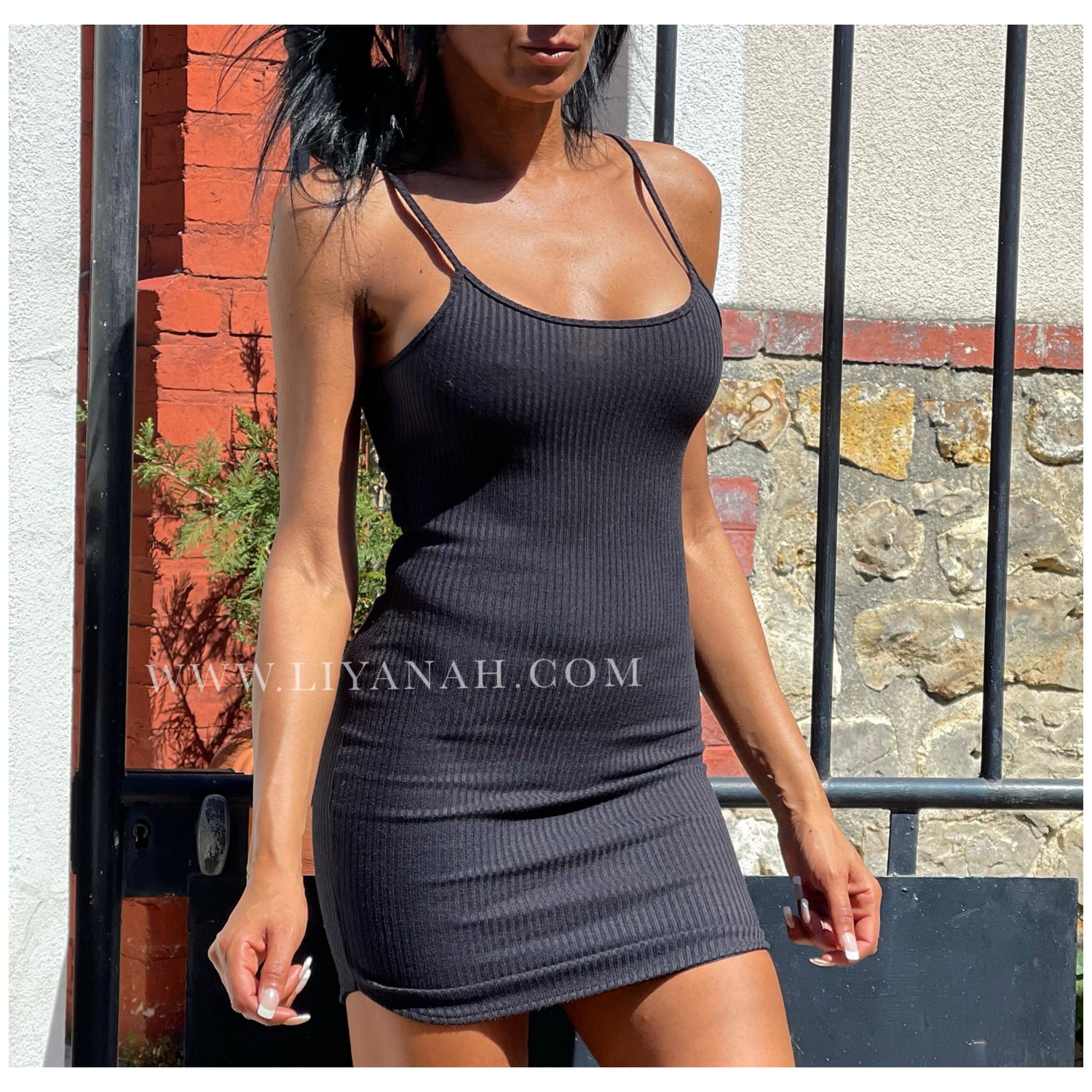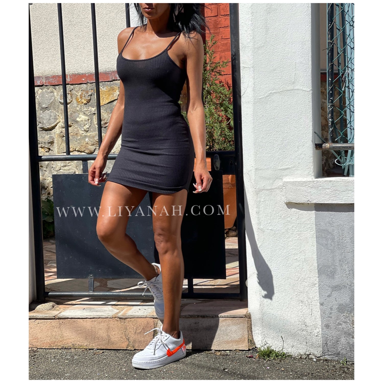 Robe Courte Modèle LYA NOIR - Coupe très près du corps et se porte courte - Tissus côtelé ✖️Matière agréable à porter tout doux - Longueur : 75 cm 🌸 95% Polyester 5% Elasthanne - Taille XS à L - Notre modèle porte une taille XS, fait une taille 34 et mesure 1m70 ✖️ Disponible en Noir ou Jaune