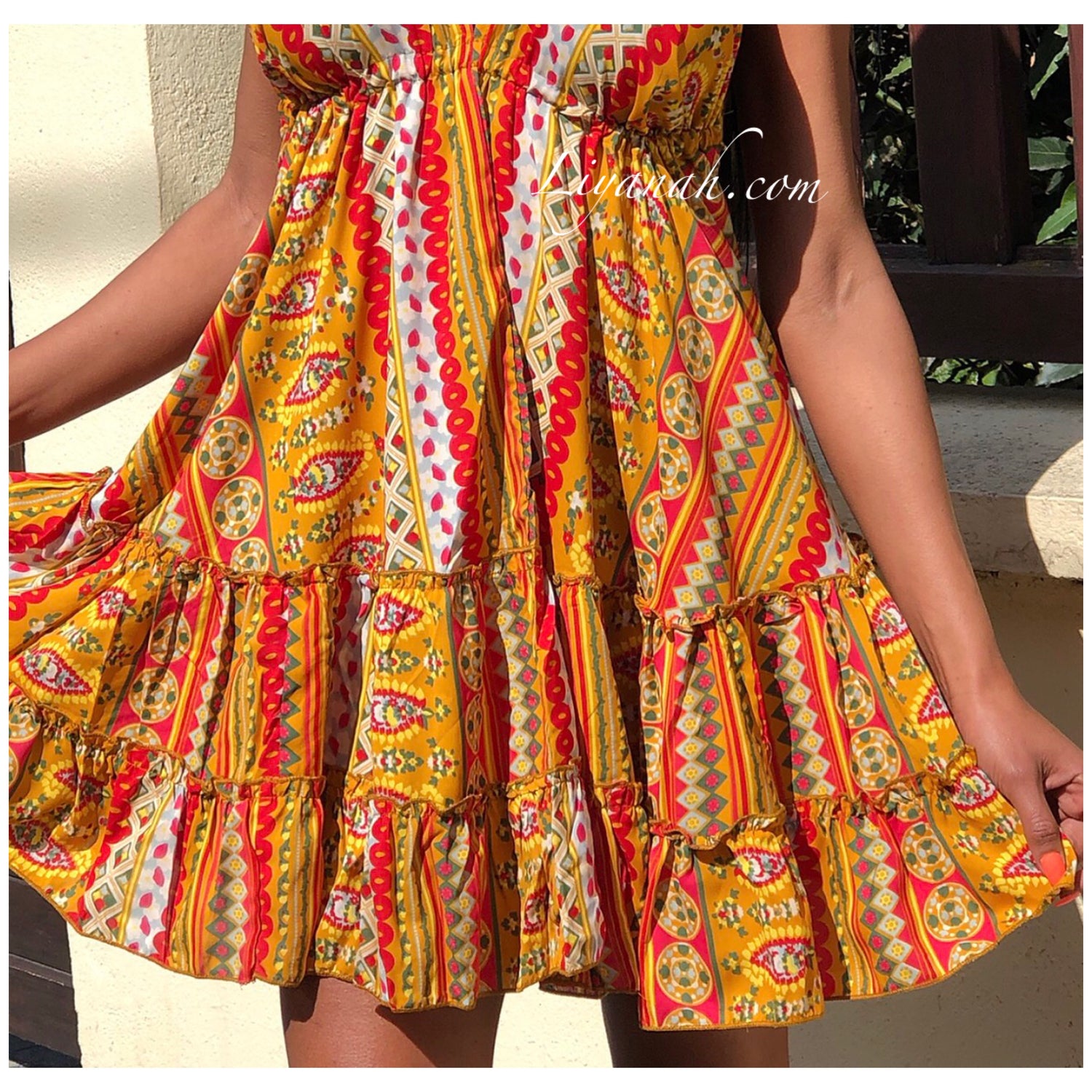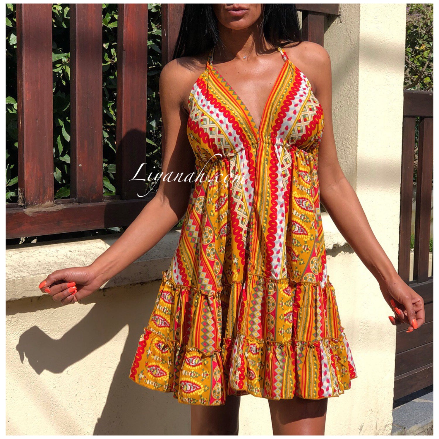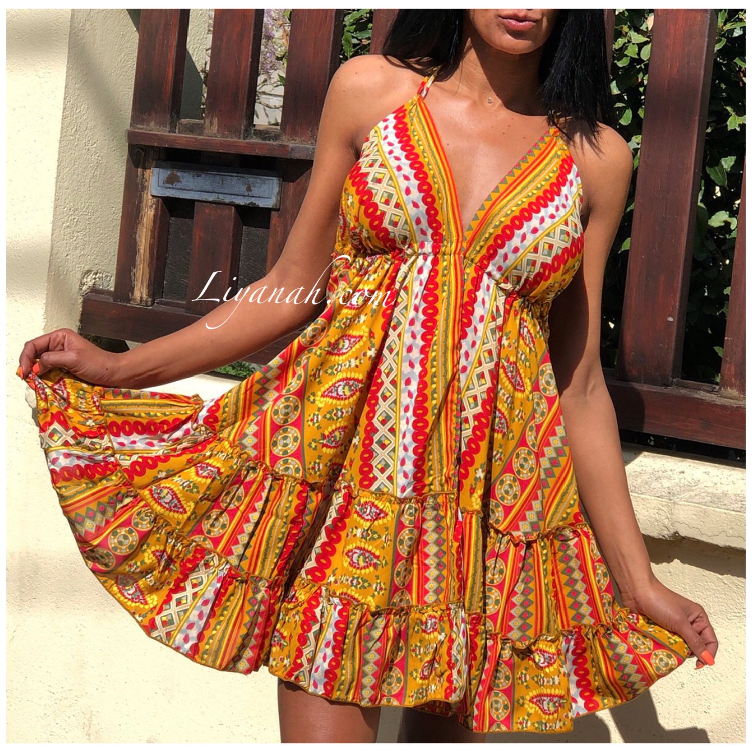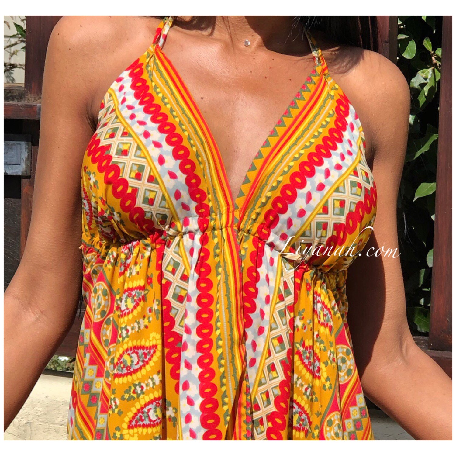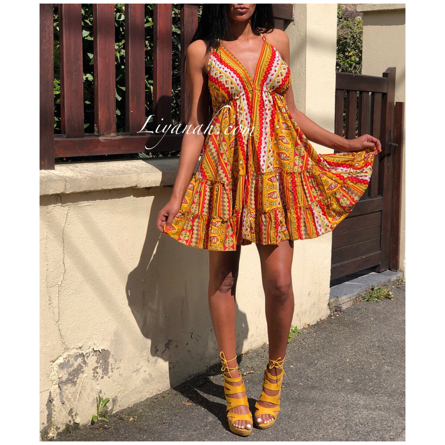 Robe Courte Modèle MOEA - Une robe courte légèrement Asymétrique - Noeud à nouer au dos qui permet de se resserrer à la poitrine et noeud au cou pour resserrer également - Robe à enfiler Dos nu  ... Taille 34/36 ou 38/40 - 100% Polyester - Très agréable à porter et très fluide !!! Portez là à la plage ou piscine sur un maillot de bain ou de sortie avec des sandales ... Elle s’adaptera à vos envies (Longueur : 79 cm)