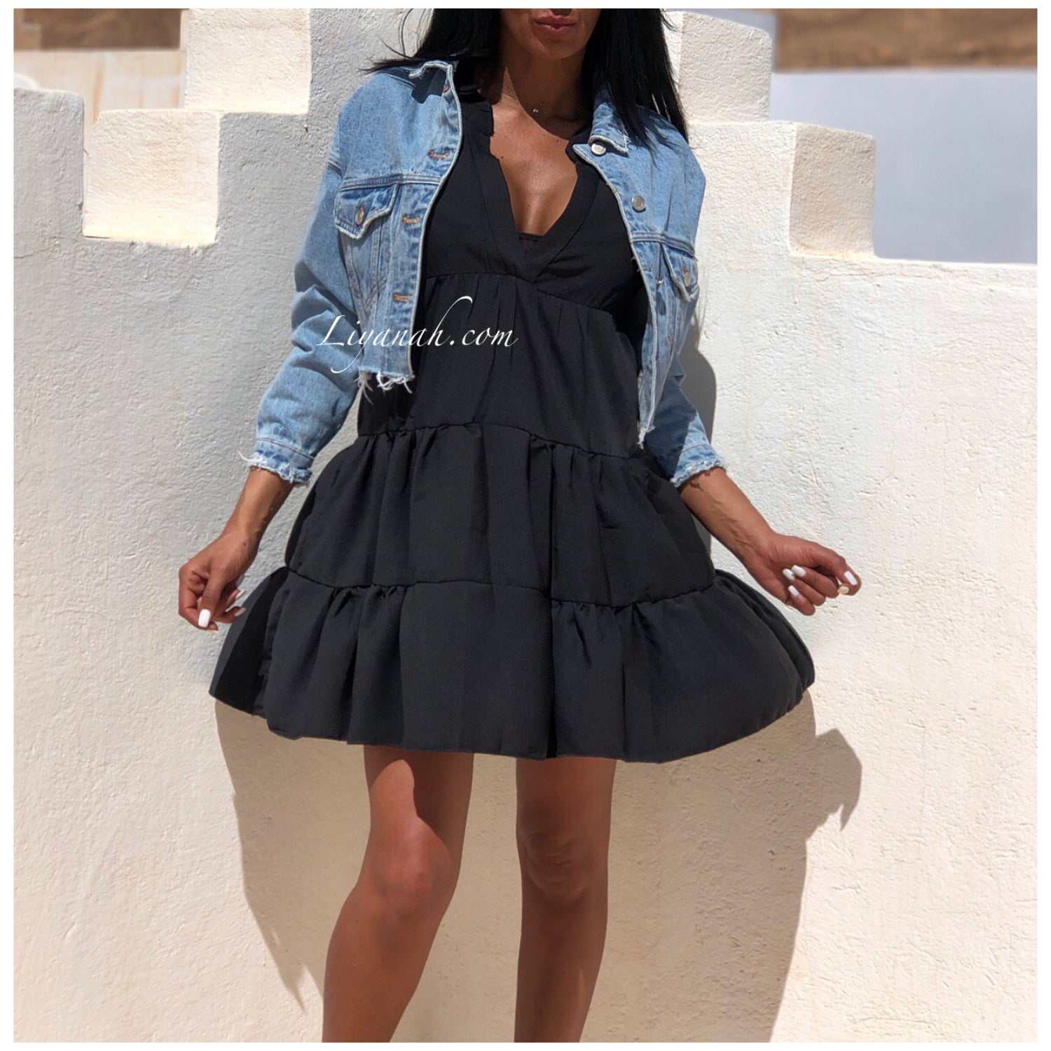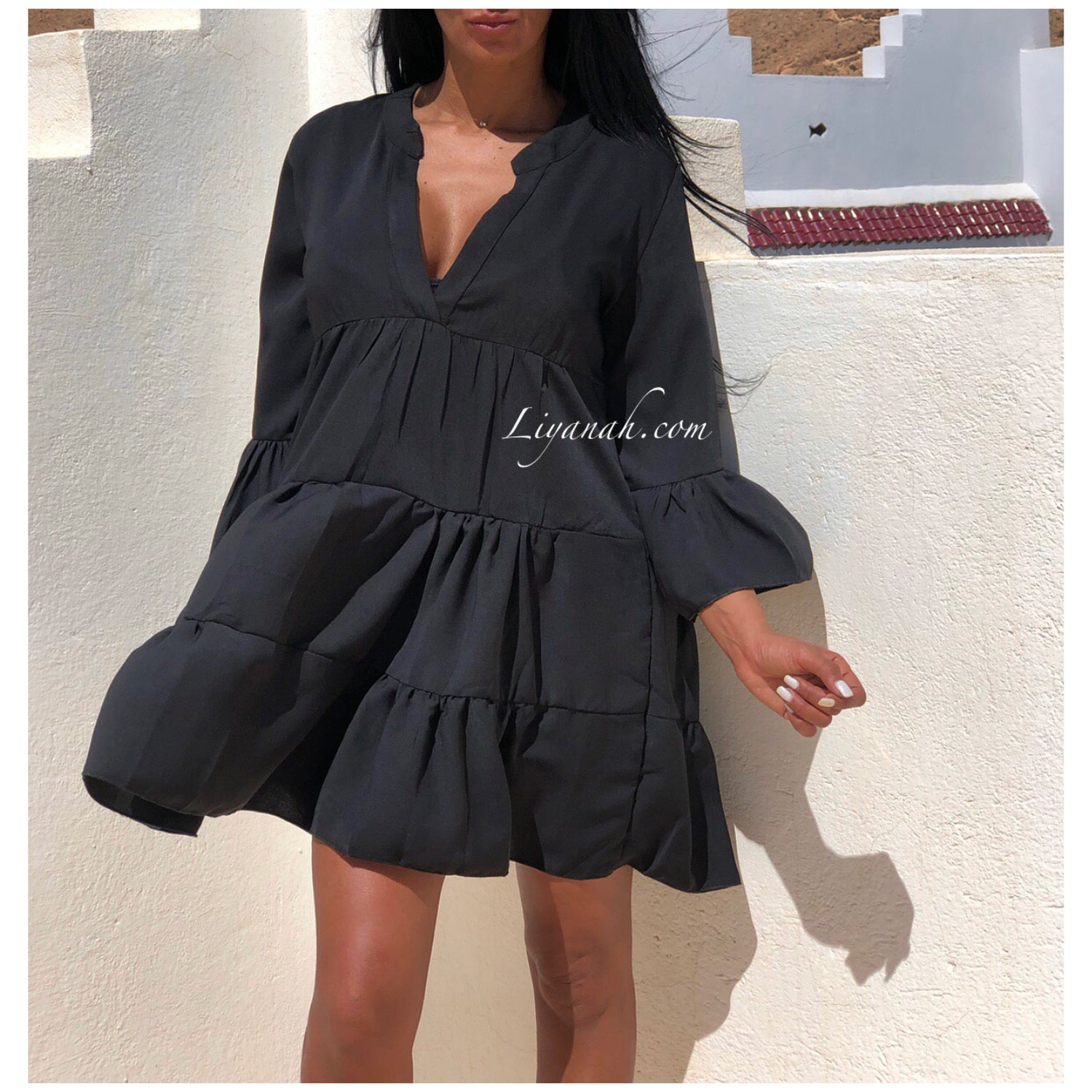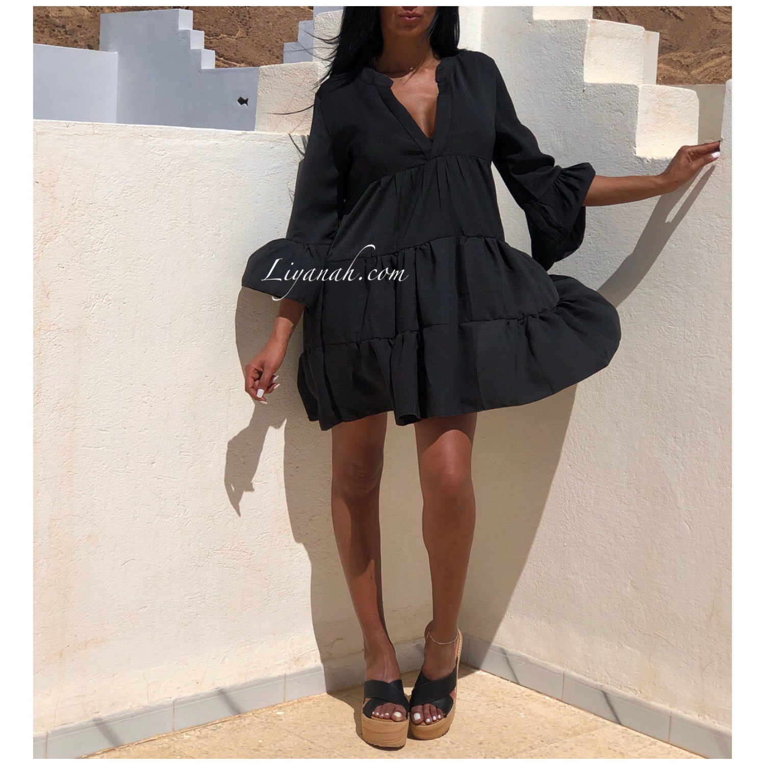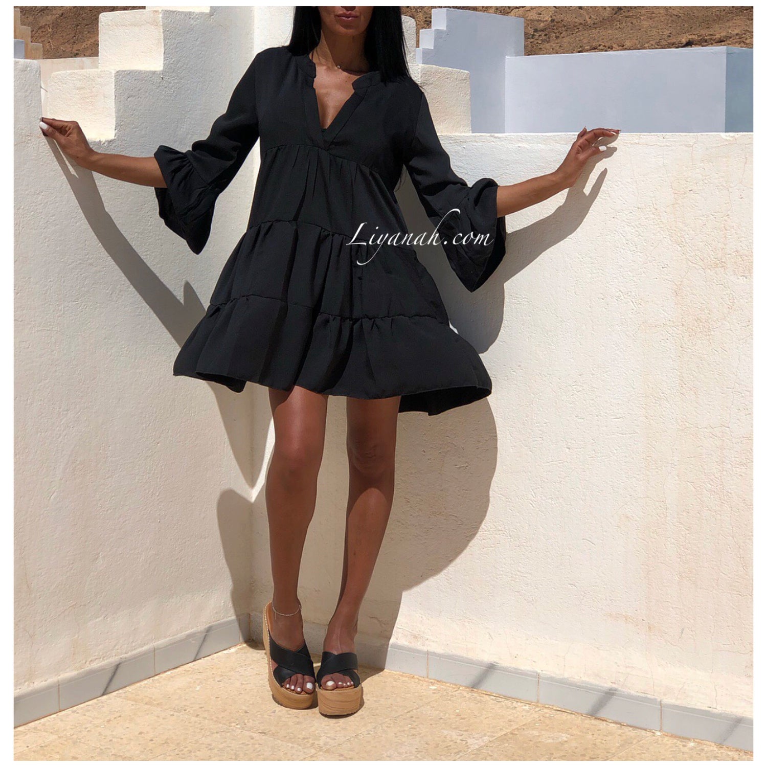 ROBE Courte Style Tunique Modèle HINA Noir - Robe courte à enfiler !!! Évasée, fluide et décontractée ✖️✖️Taille Unique pour une taille 34 ou 40 ✖️✖️100% Polyester - Matière épaisse, DOUCE ET AGRÉABLE À PORTER