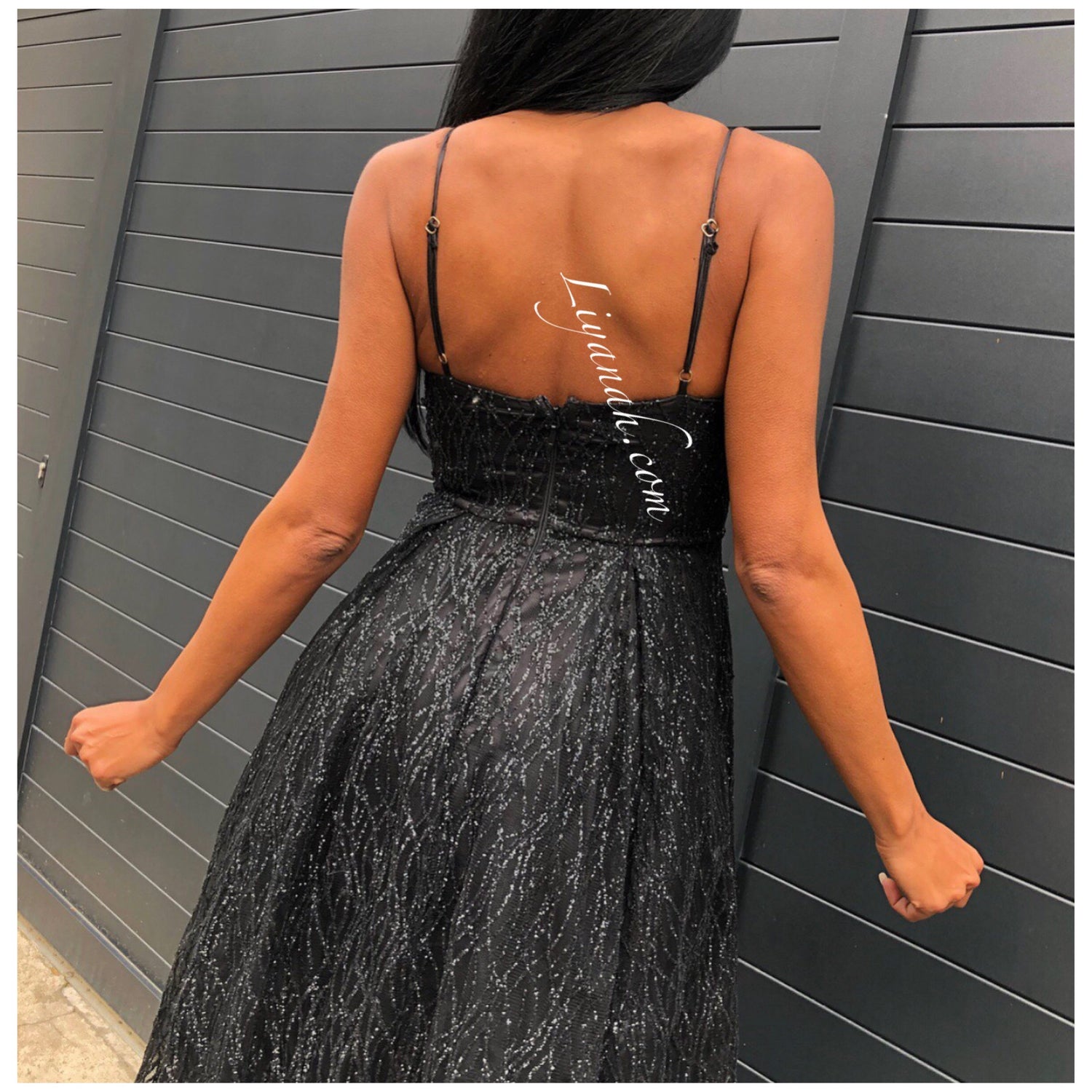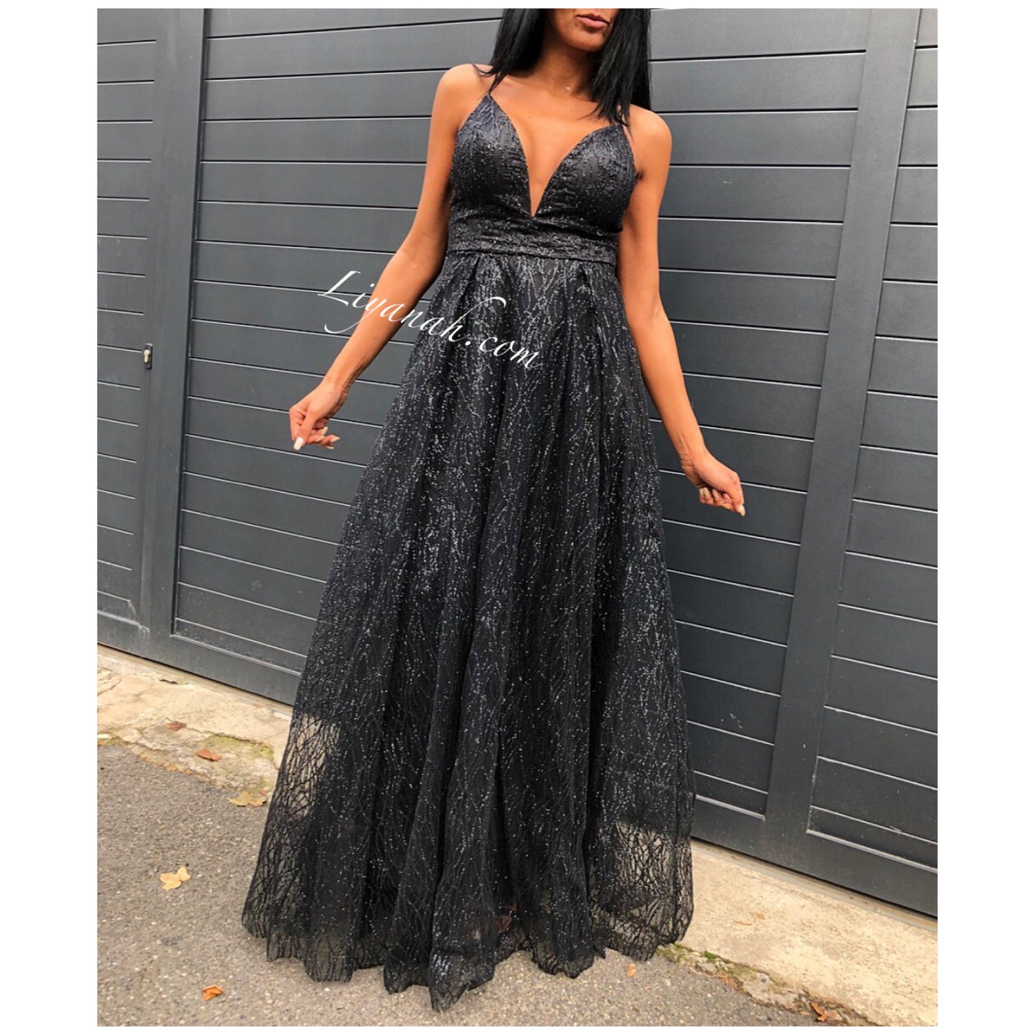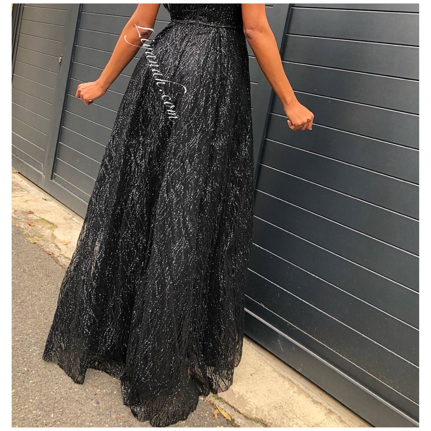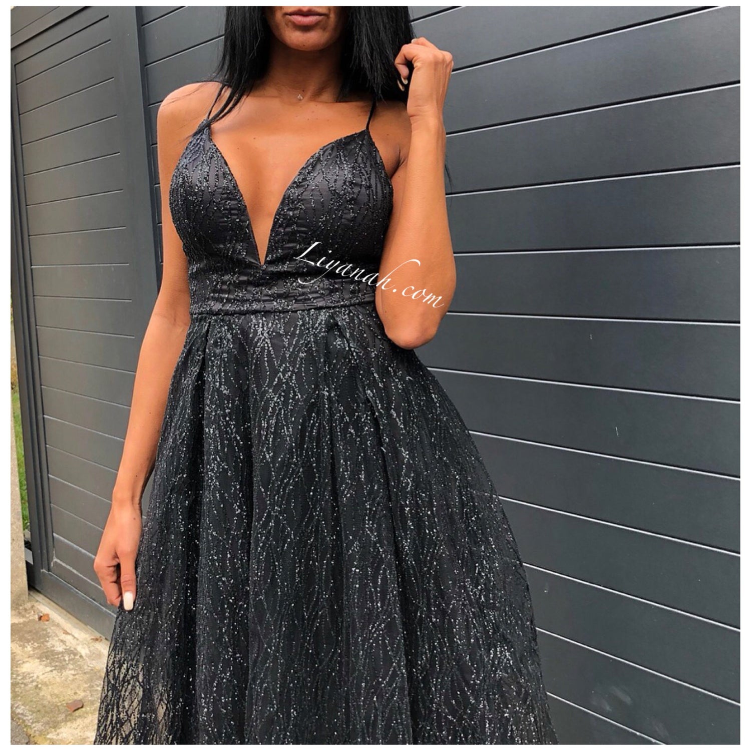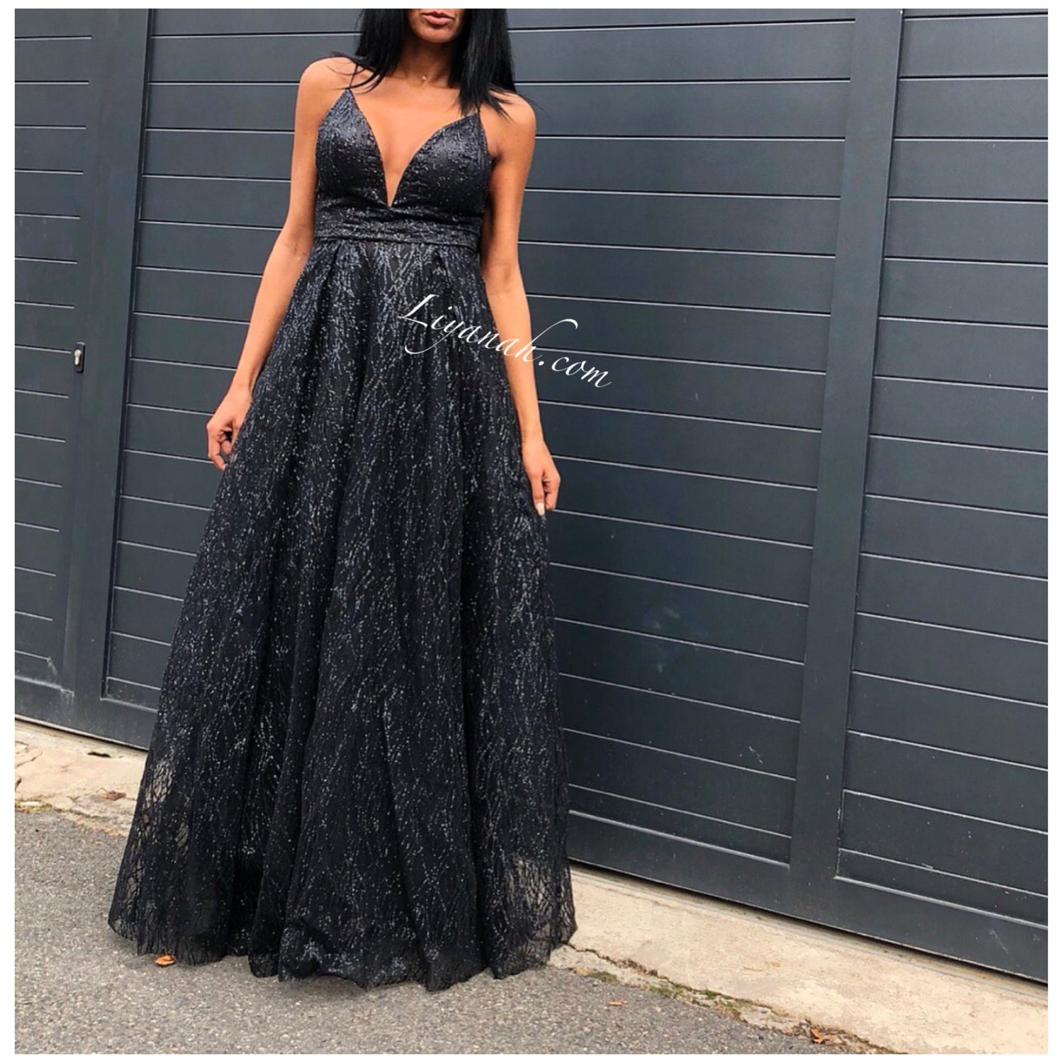 ROBE DE SOIRÉE MODÈLE ARAYA NOIR - ROBE DE SOIRÉE Évasée Princesse ❤️ décolleté plongeant, bretelles réglables et fermeture ZIP au dos !! ROBE PRINCESSE TOTALEMENT PAILLETÉE - Tulle et Doublure sous la jupe - Longueur jupe : 118 cm - Longueur à partir du dessus du décolleté : 147 cm - Taille XS au L💋 ROBE ÉBLOUISSANTE
