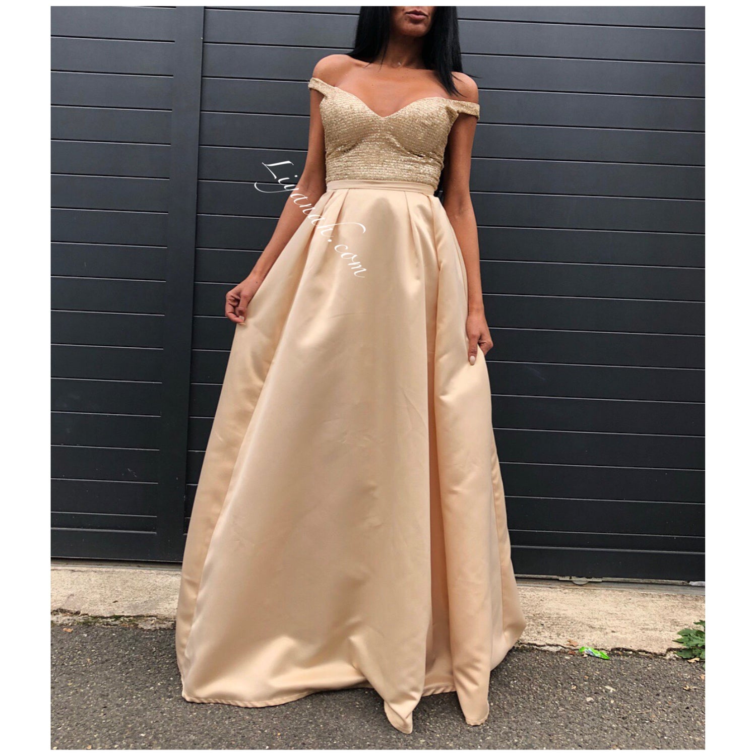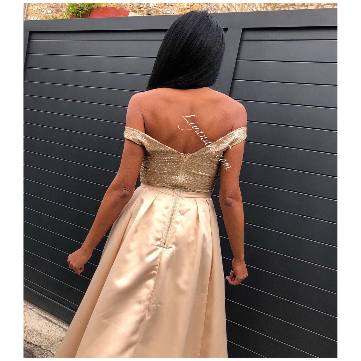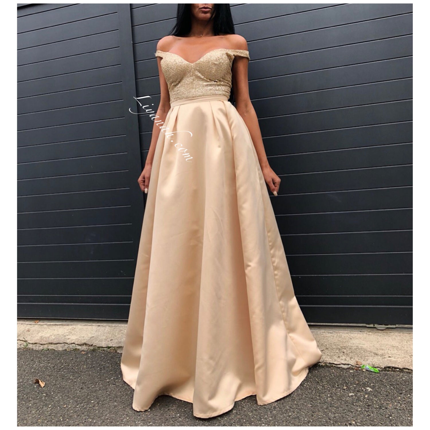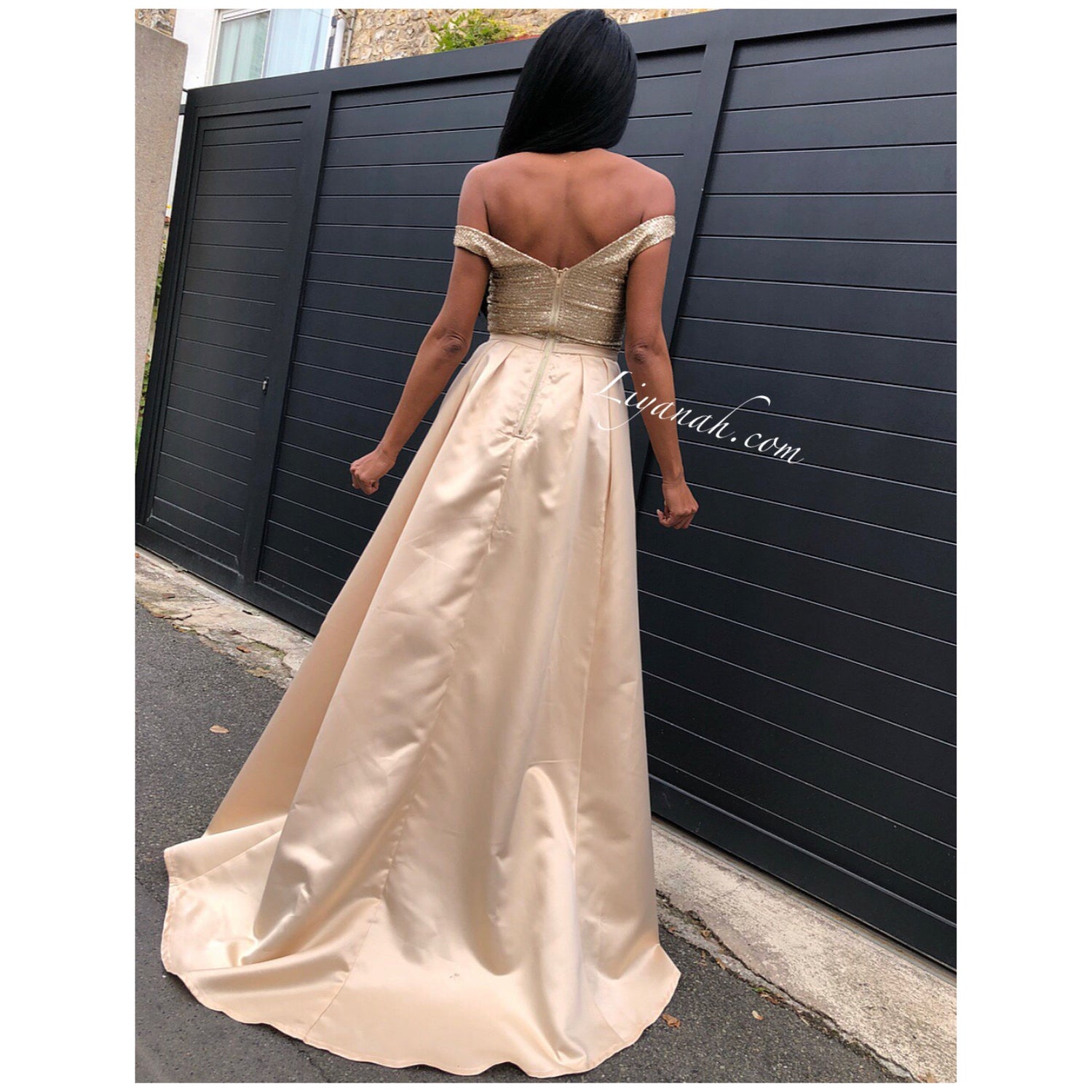 ROBE DE SOIRÉE MODÈLE ESTRELLA OR ROBE DE SOIRÉE Évasée Princesse avec légère Traîne arrière - Se porte en Col Bateau ou Normal !! Selon vos envies 🌸 Bustier Pailleté - Tulle et Doublure sous la jupe, Détails Petite ceinture fixe autour de la Taille !! Fermeture ZIP au Dos couleur Or ... Longueur : 151 cm (à partir de l'épaule) 100% Polyester ✖️ TAILLE XS à L ✖️✖️ Articles ni repris ni échangés ✖️✖️ Conseil : Prenez votre vraie taille habituelle 💋 DISPONIBLE EN NOIR,BORDEAUX ou OR