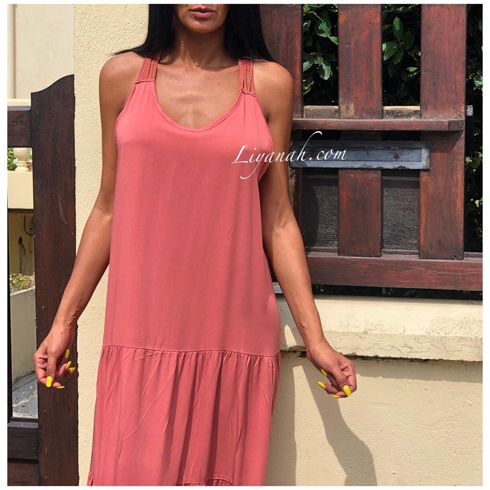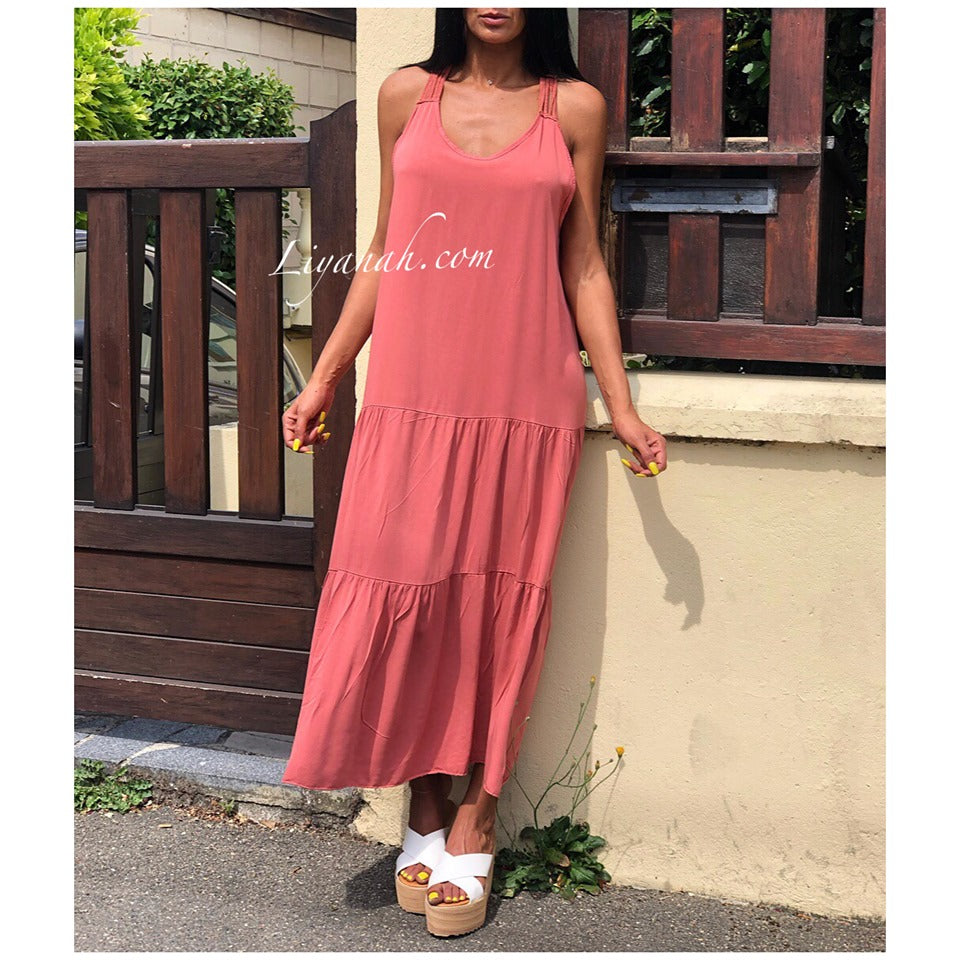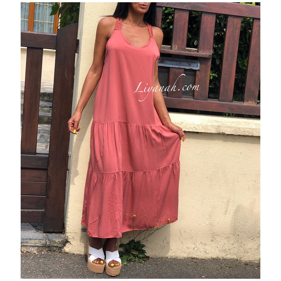 Robe Longue Modèle HYRA BRIQUE - Robe à enfiler avec bretelles filets et détails fils fixes au dos - Coupe large et col rond - Confort et style - 100% VISCOSE - Taille Unique du 34 au 44