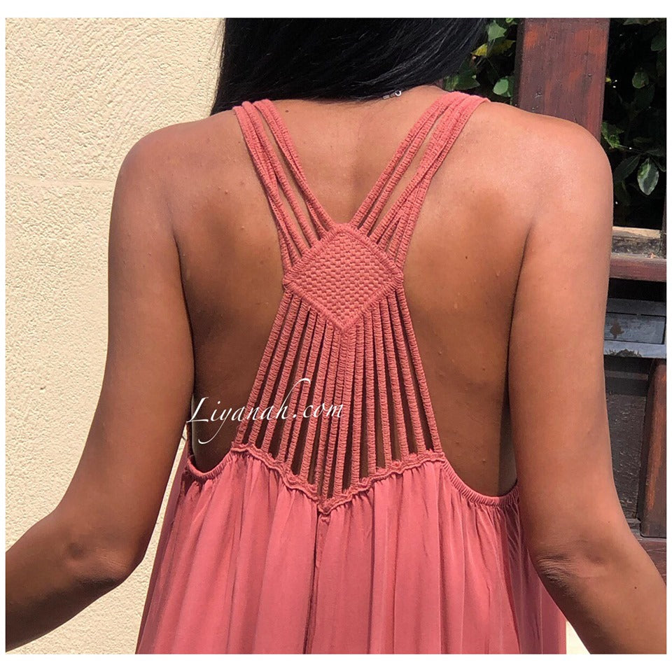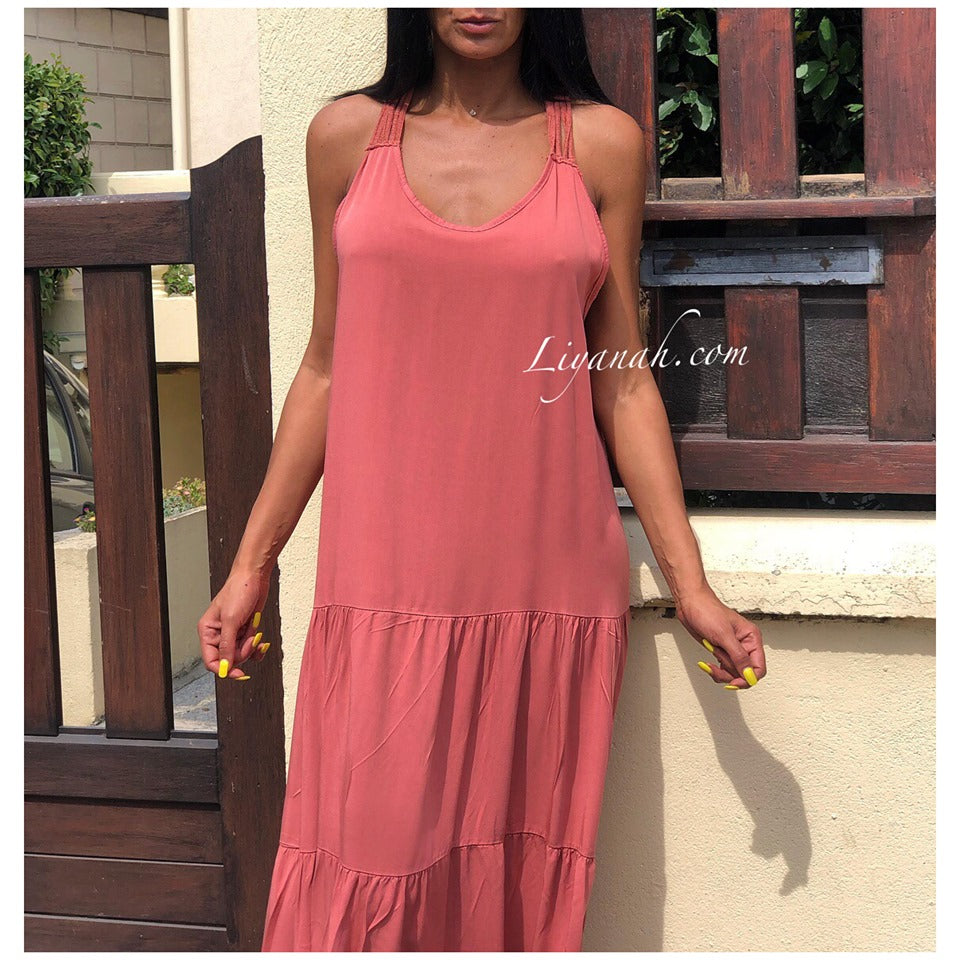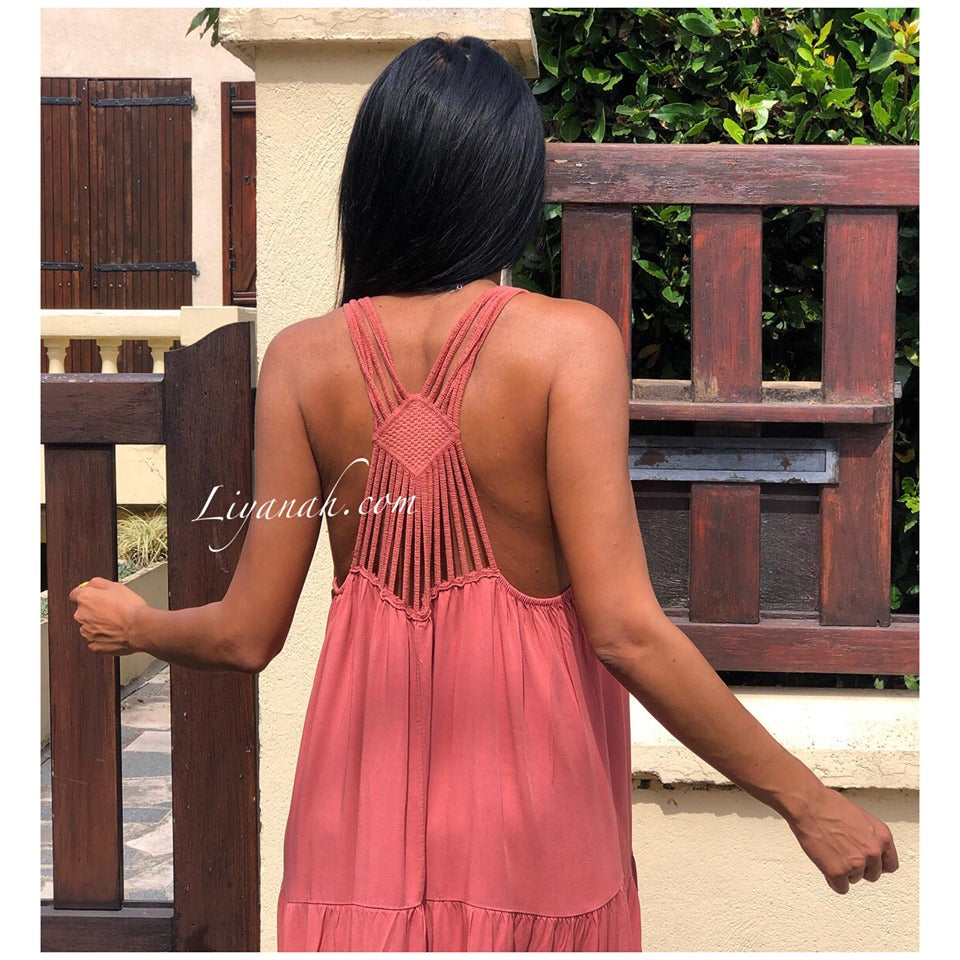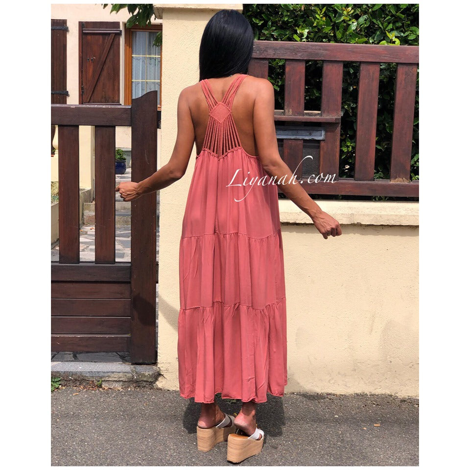 Robe Longue Modèle HYRA BRIQUE - Robe à enfiler avec bretelles filets et détails fils fixes au dos - Coupe large et col rond - Confort et style - 100% VISCOSE - Taille Unique du 34 au 44