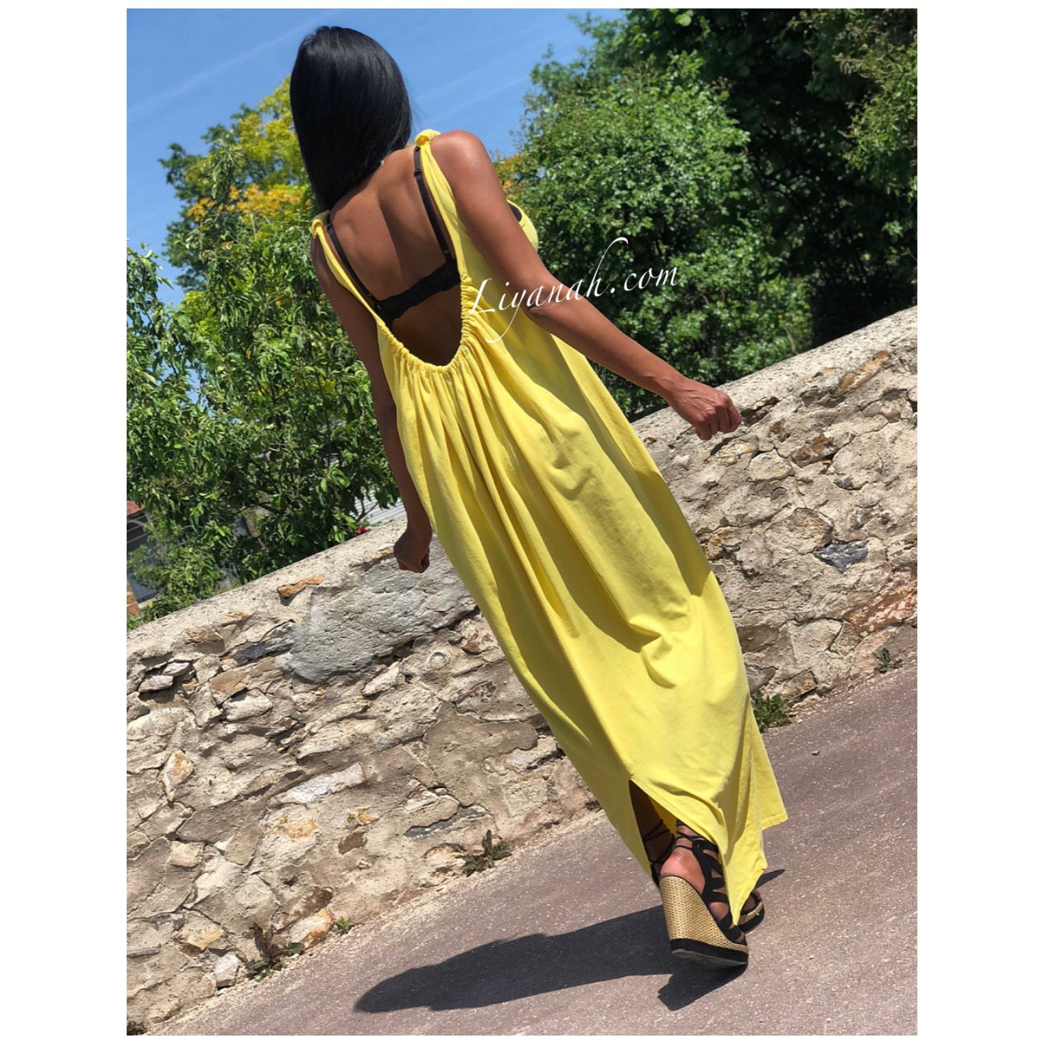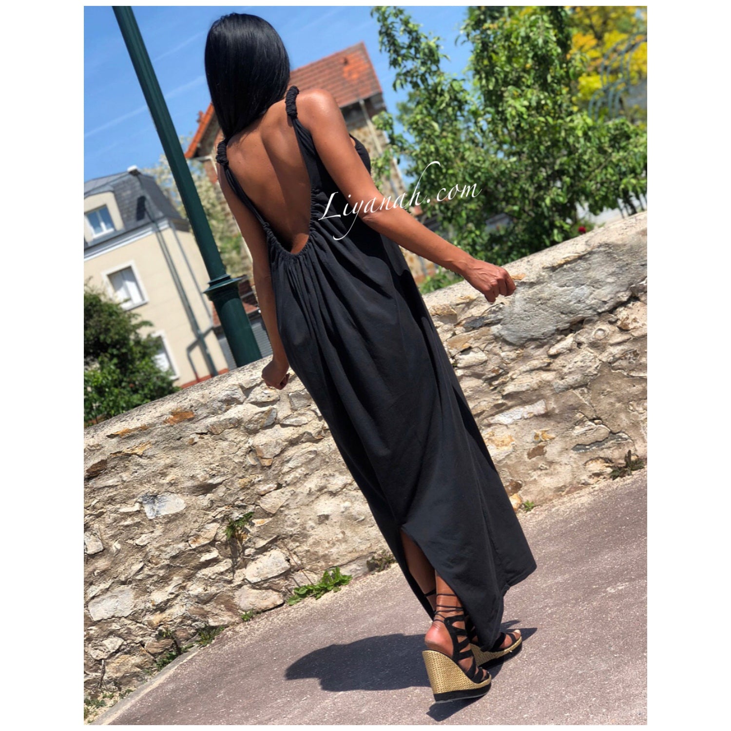 Le Dos nu signe son retour Chez Liyanah 😍 C’est la touche glam en + pour faire la différence !!! Détails aux épaules et dans le dos ❤️ Elle est totalement décontractée, Fente à l'arrière !!! Longueur : environ 137 cm - Taille unique De La taille 34 à 42- 95% Coton 5% Élasthanne !!!