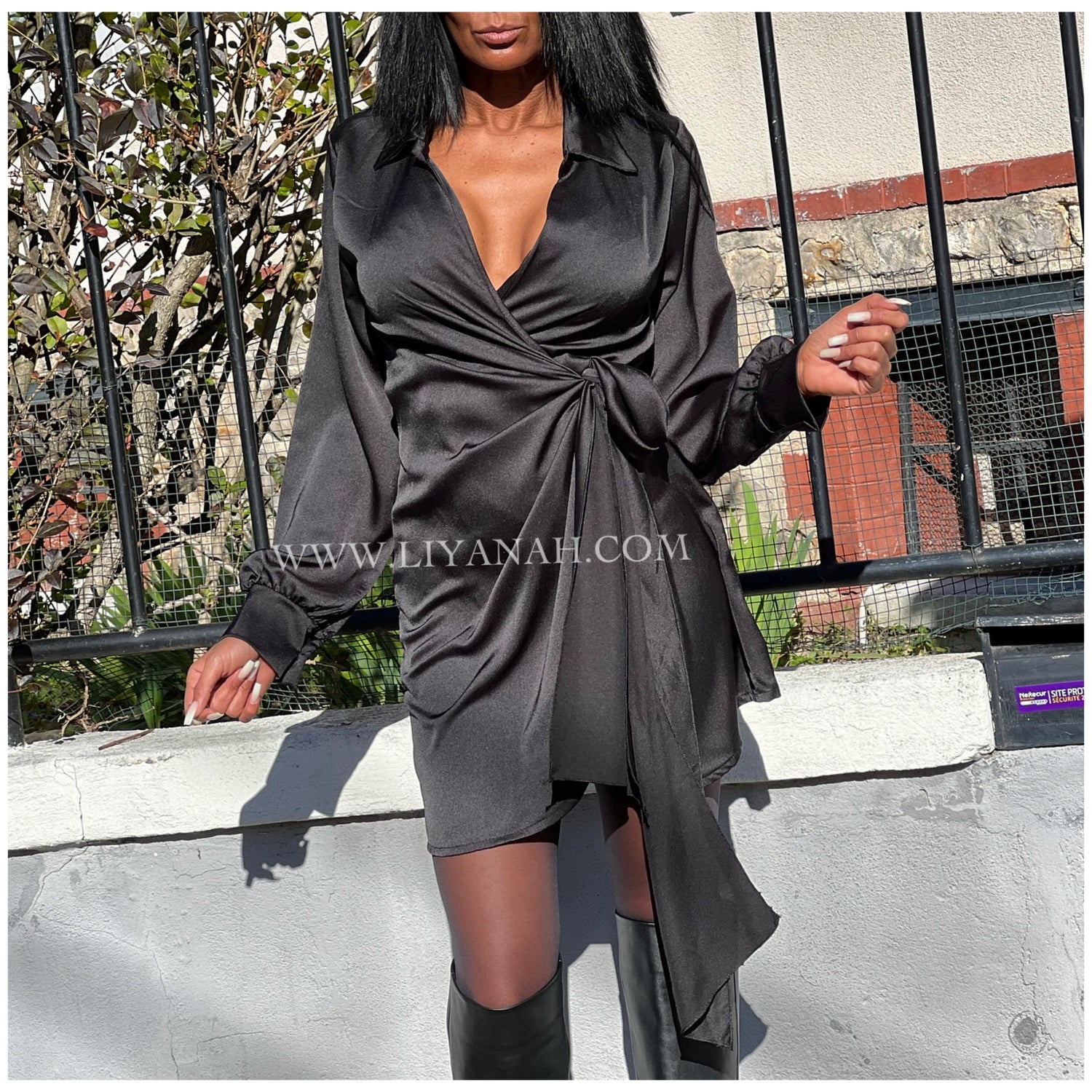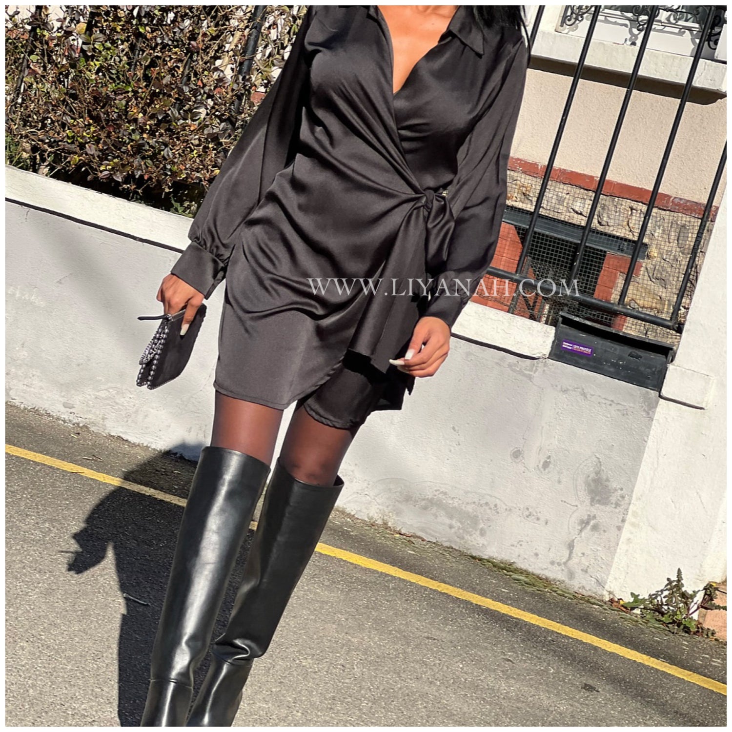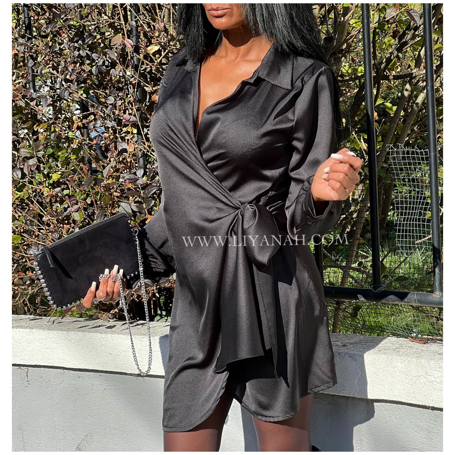 Robe courte cache cœur aspect satin à nouer - 95% Polyester 5% Elasthanne - Taille unique du 34 au 38