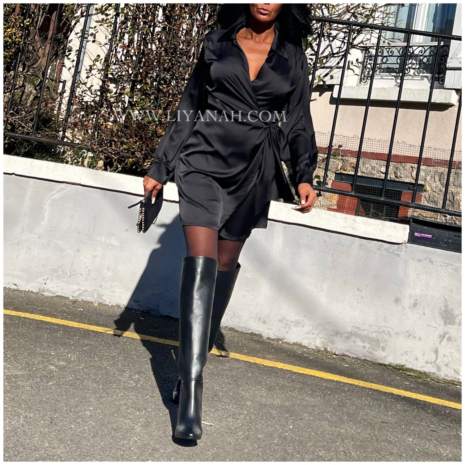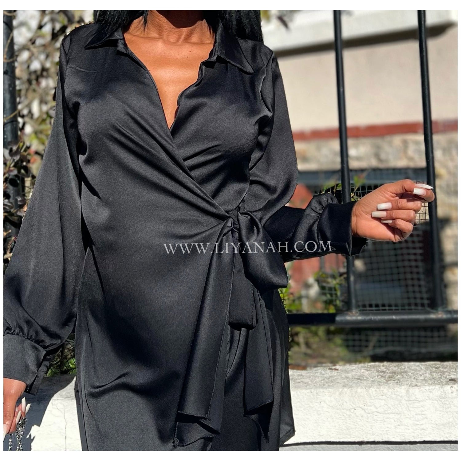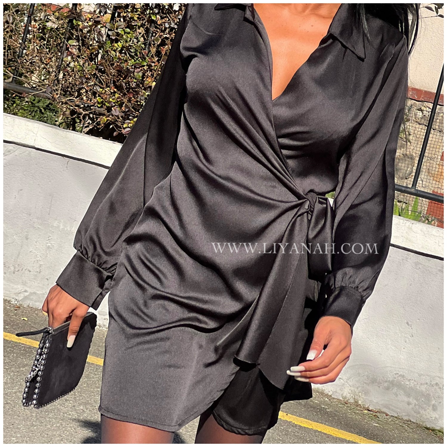 Robe courte cache cœur aspect satin à nouer - 95% Polyester 5% Elasthanne - Taille unique du 34 au 38