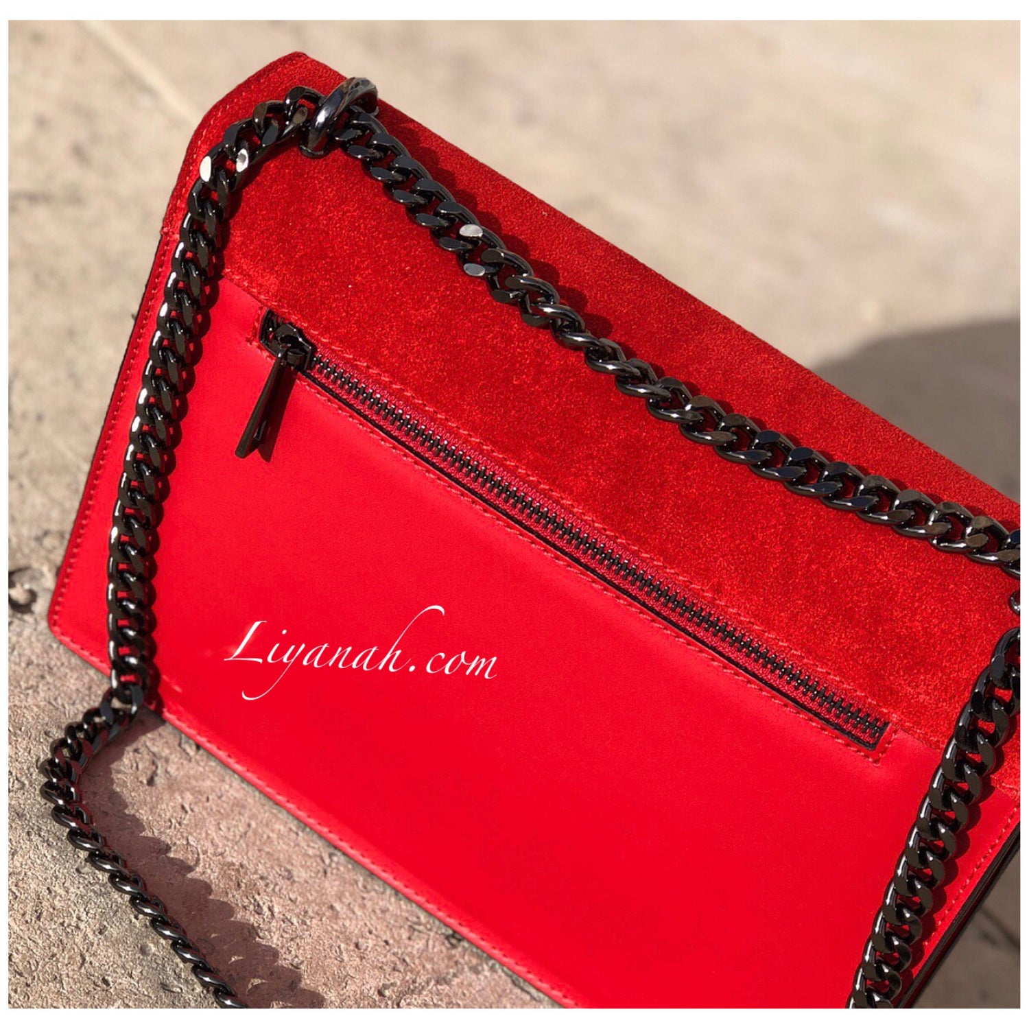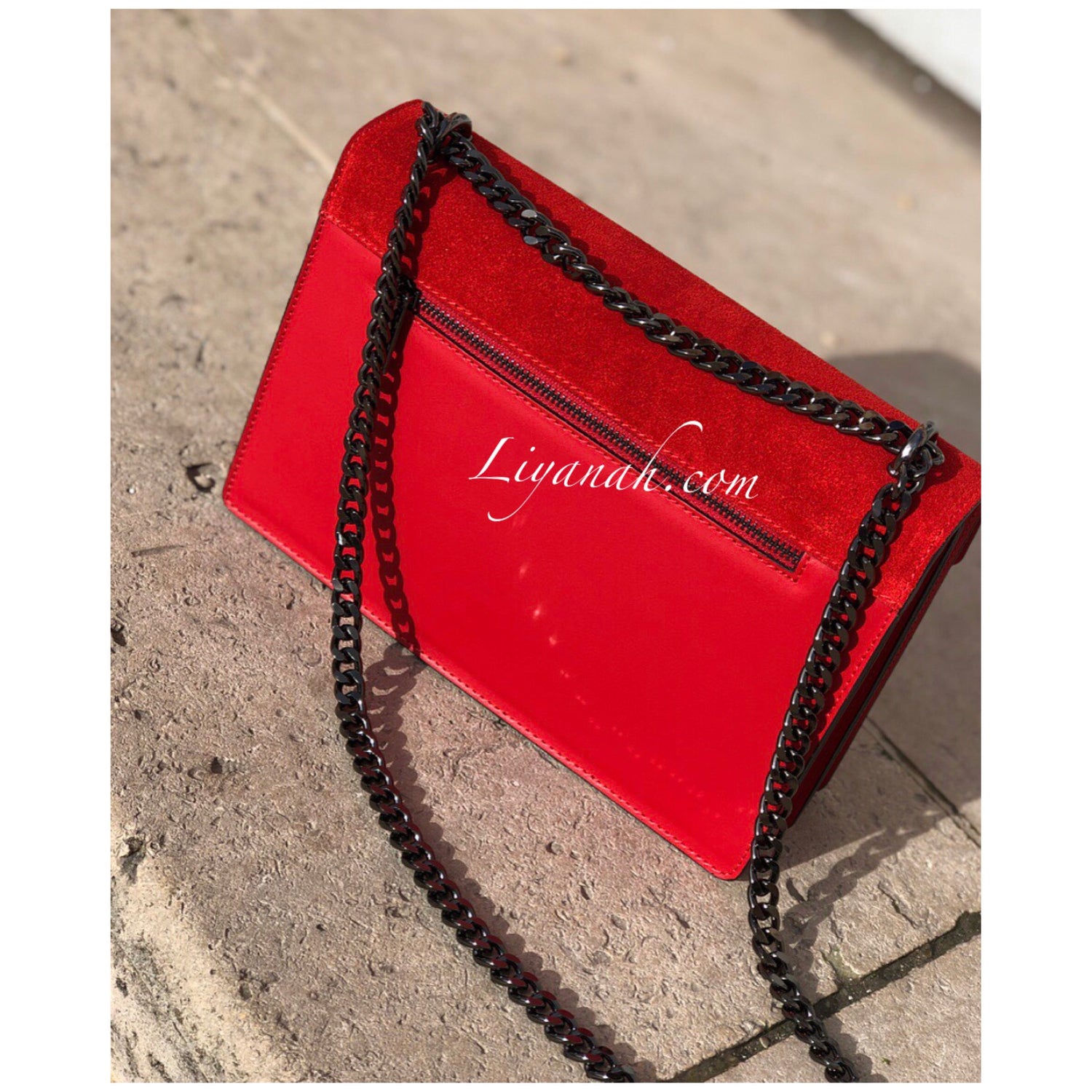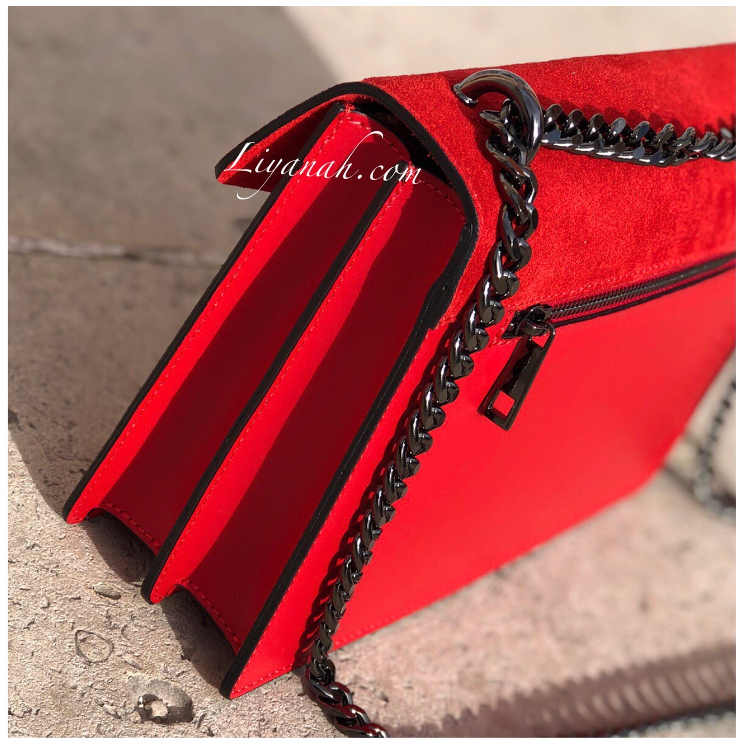 Sac Cuir Bi-Matière Modèle ANYATA Rouge ❤️100% Cuir Véritable, Sac à bandoulière chaînette Couleur Anthracite !!! Optez pour ce modèle Tendance, chic et intemporel !!! À porter aussi bien le jour avec une tenue décontractée que la nuit en tenue de Soirée.