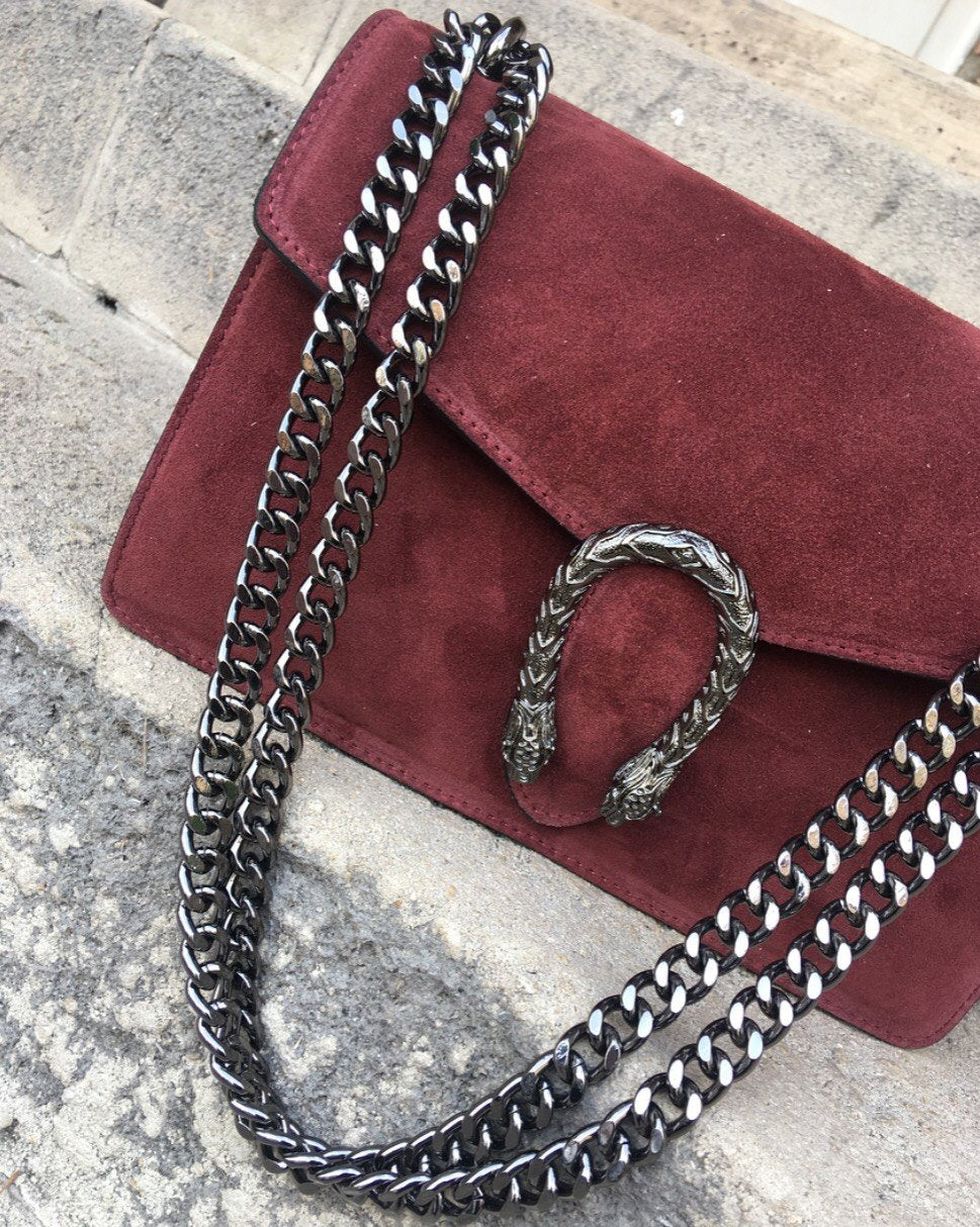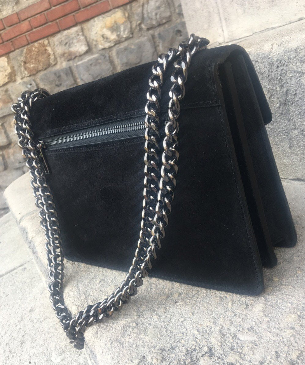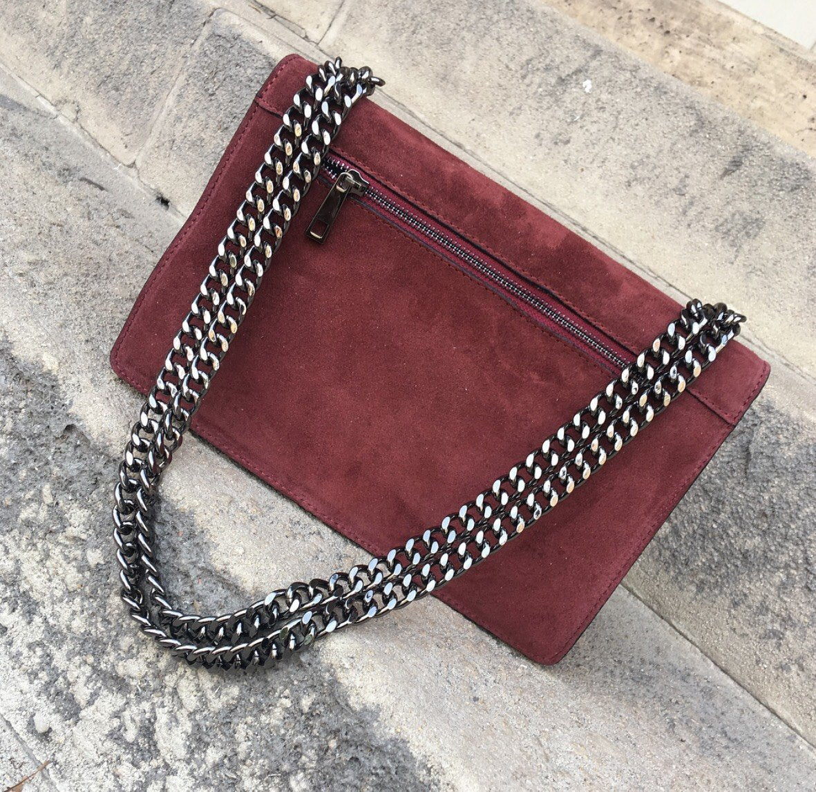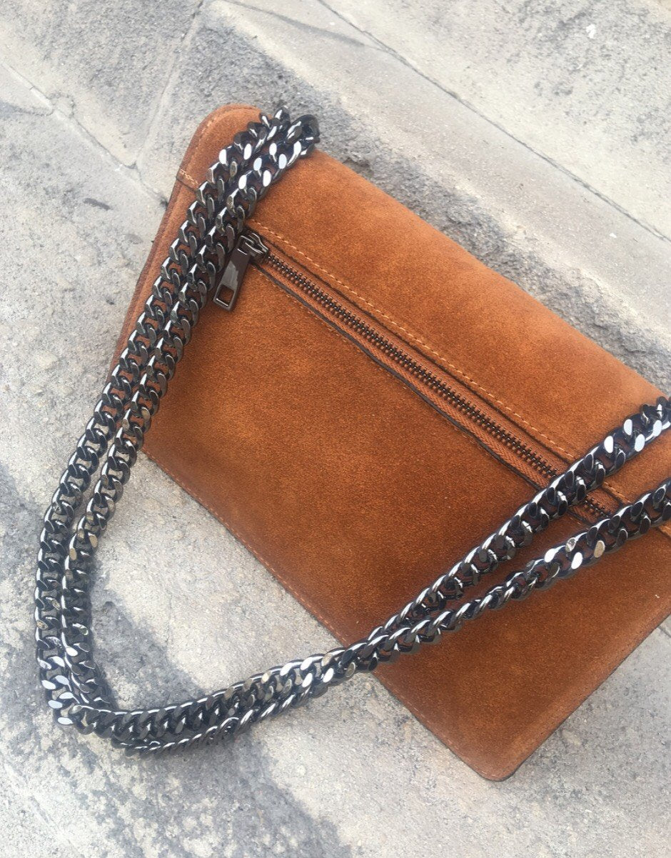 Sac Cuir Modèle AZYAL / 4 couleurs 100% Cuir Véritable Sac à bandoulière chaînette Couleur Anthracite Optez pour ce modèle Tendance Et chic !!! À porter aussi bien le jour avec une tenue décontractée que la nuit en tenue de Soirée. Il habillera toutes vos envies Et toutes vos tenues !!!! - ENTIÈREMENT DAIM 100% Cuir - Empiècement tigre - Chaine réglable  - Rabat avec Fermeture aimantée - Intérieur Cuir Et 3 poches dont 2 à Zip - Fabriqué en Italie - Dimensions : 28 cm * 19 cm Couleurs disponibles : Noir, Bordeaux, Bleu Et Camel Les sacs vendus sur notre site ne sont ni repris ni échangé