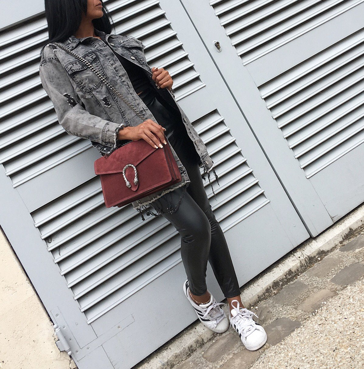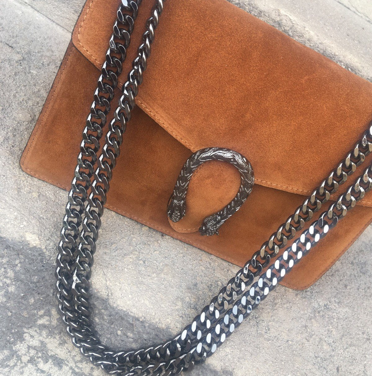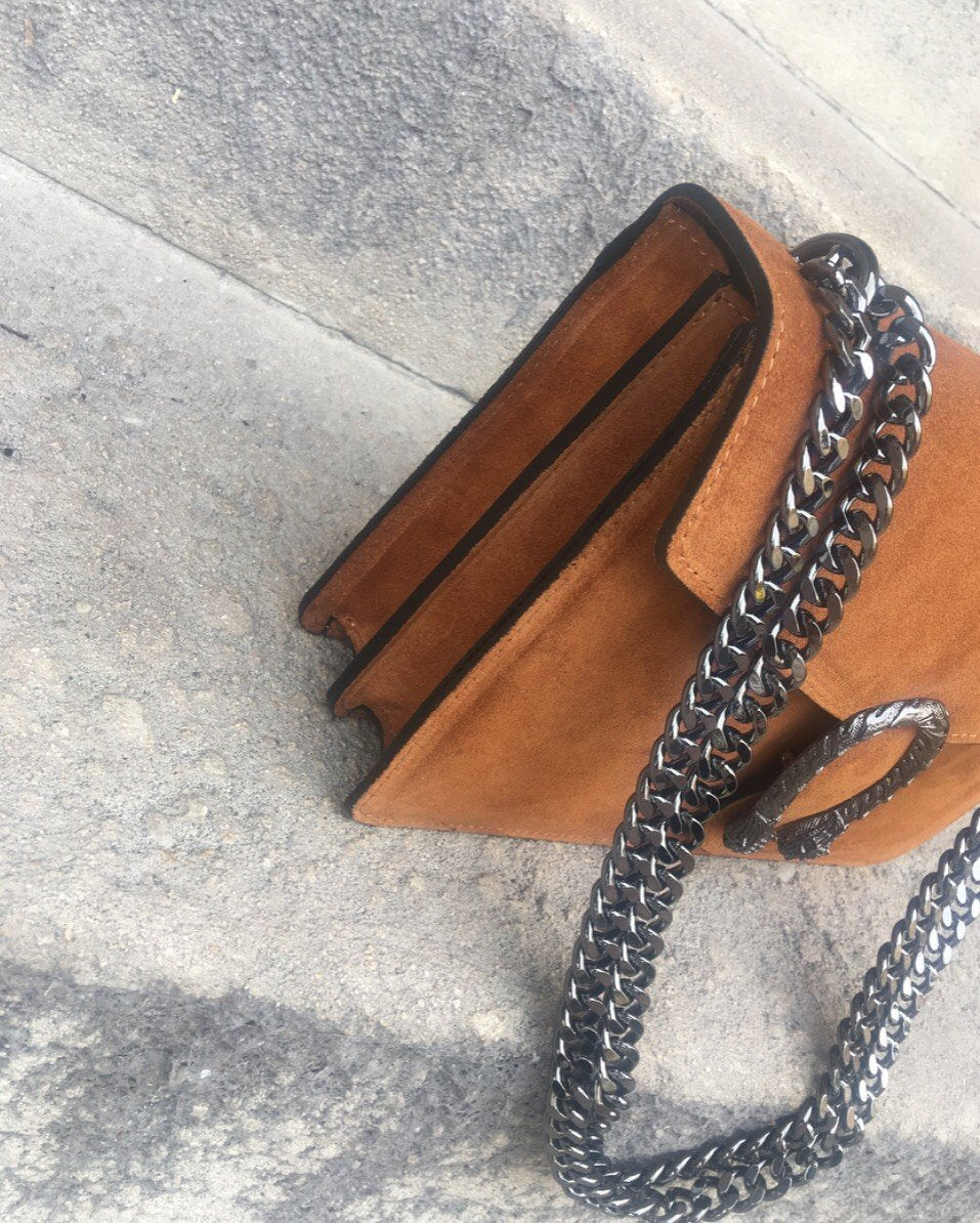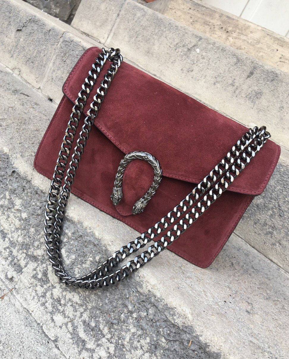 Sac Cuir Modèle AZYAL / 4 couleurs 100% Cuir Véritable Sac à bandoulière chaînette Couleur Anthracite Optez pour ce modèle Tendance Et chic !!! À porter aussi bien le jour avec une tenue décontractée que la nuit en tenue de Soirée. Il habillera toutes vos envies Et toutes vos tenues !!!! - ENTIÈREMENT DAIM 100% Cuir - Empiècement tigre - Chaine réglable  - Rabat avec Fermeture aimantée - Intérieur Cuir Et 3 poches dont 2 à Zip - Fabriqué en Italie - Dimensions : 28 cm * 19 cm Couleurs disponibles : Noir, Bordeaux, Bleu Et Camel Les sacs vendus sur notre site ne sont ni repris ni échangé