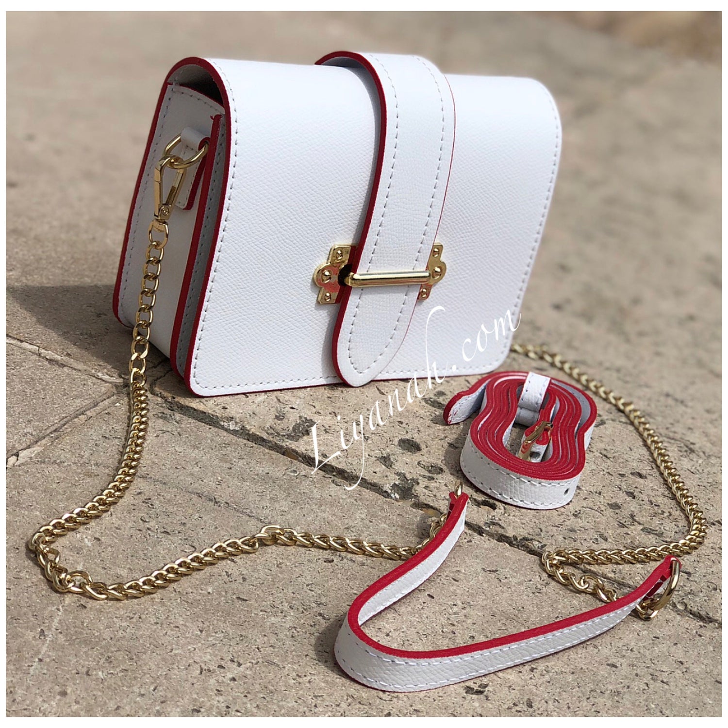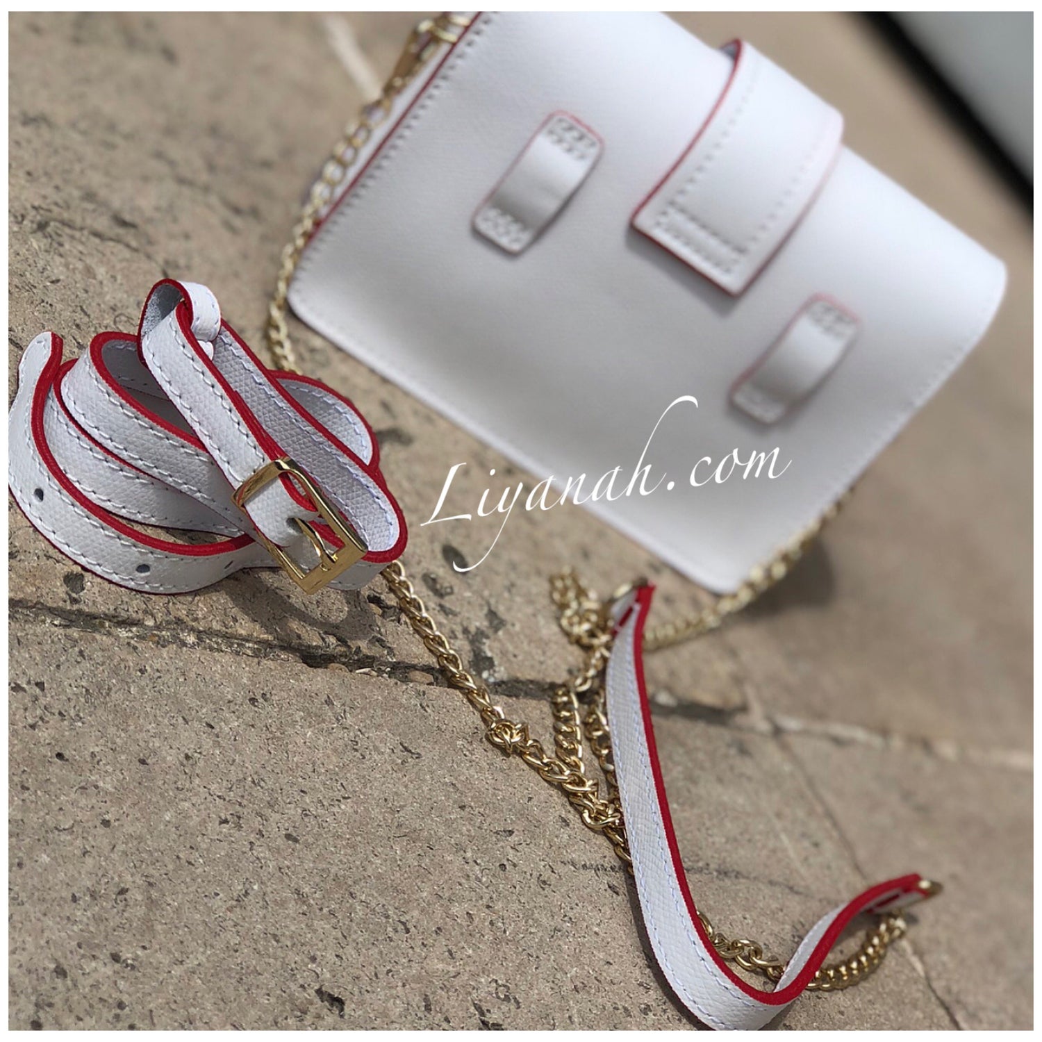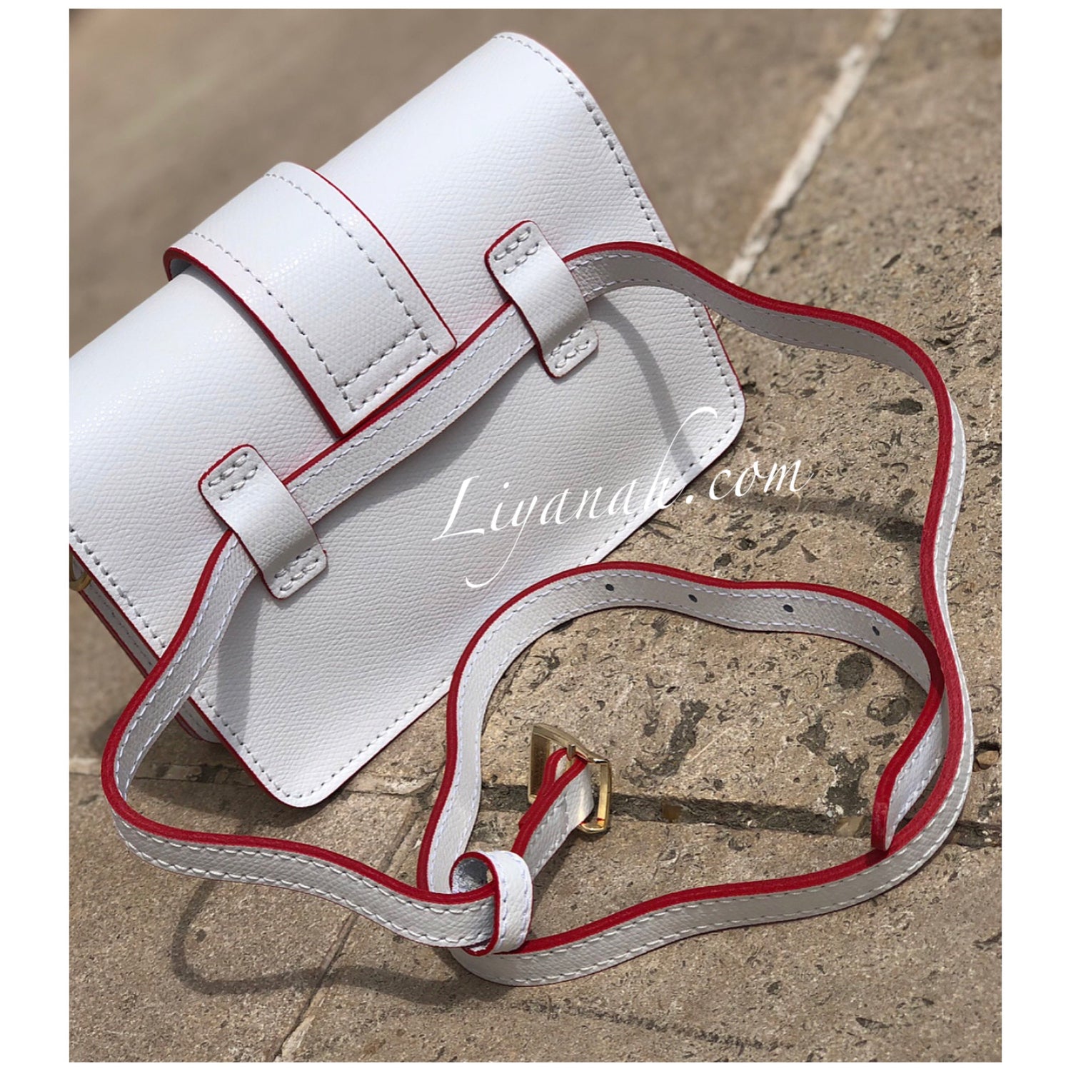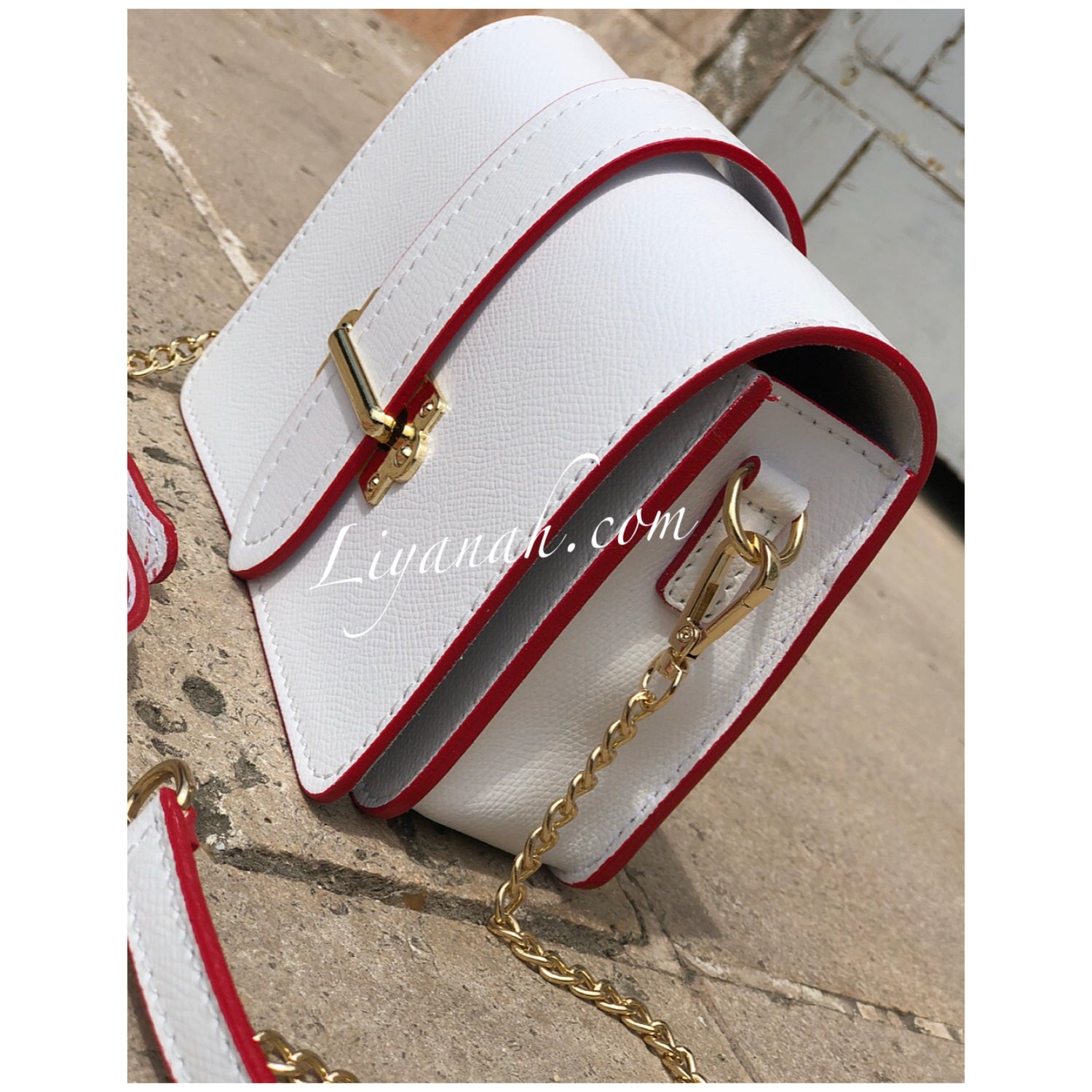 Sac Cuir PETIT Modèle EVYRYA BLANC CONTOUR ROUGE 100% CUIR VÉRITABLE !!! Optez pour ce sac à main avec bandoulière Couleur Or !!! Un modèle Tendance Et chic !!! Il se porte à l’épaule ou ceinture 💋 Muni d’une deuxième sangle pour la taille !!! Fermeture a enfiler ✖️ Dimensions : 18 cm * 12 cm (PETIT SAC) Couleurs disponibles : NOIR, BLANC ou ORANGE - À porter aussi bien le jour avec une tenue décontractée que la nuit en tenue de Soirée. Il habillera toutes vos envies Et toutes vos tenues !!!! ✖️✖️ Les sacs vendus sur notre site ne sont ni repris ni échangé