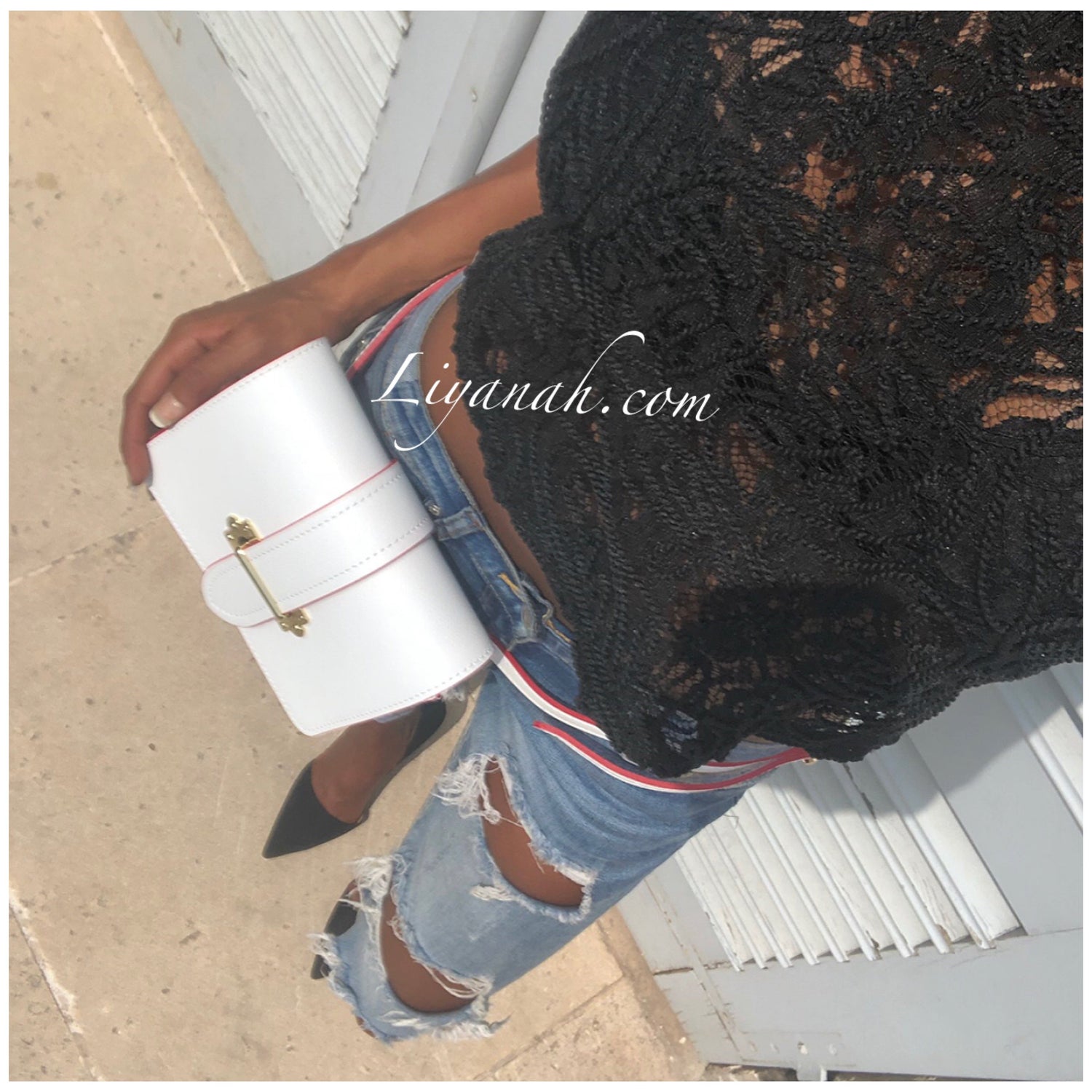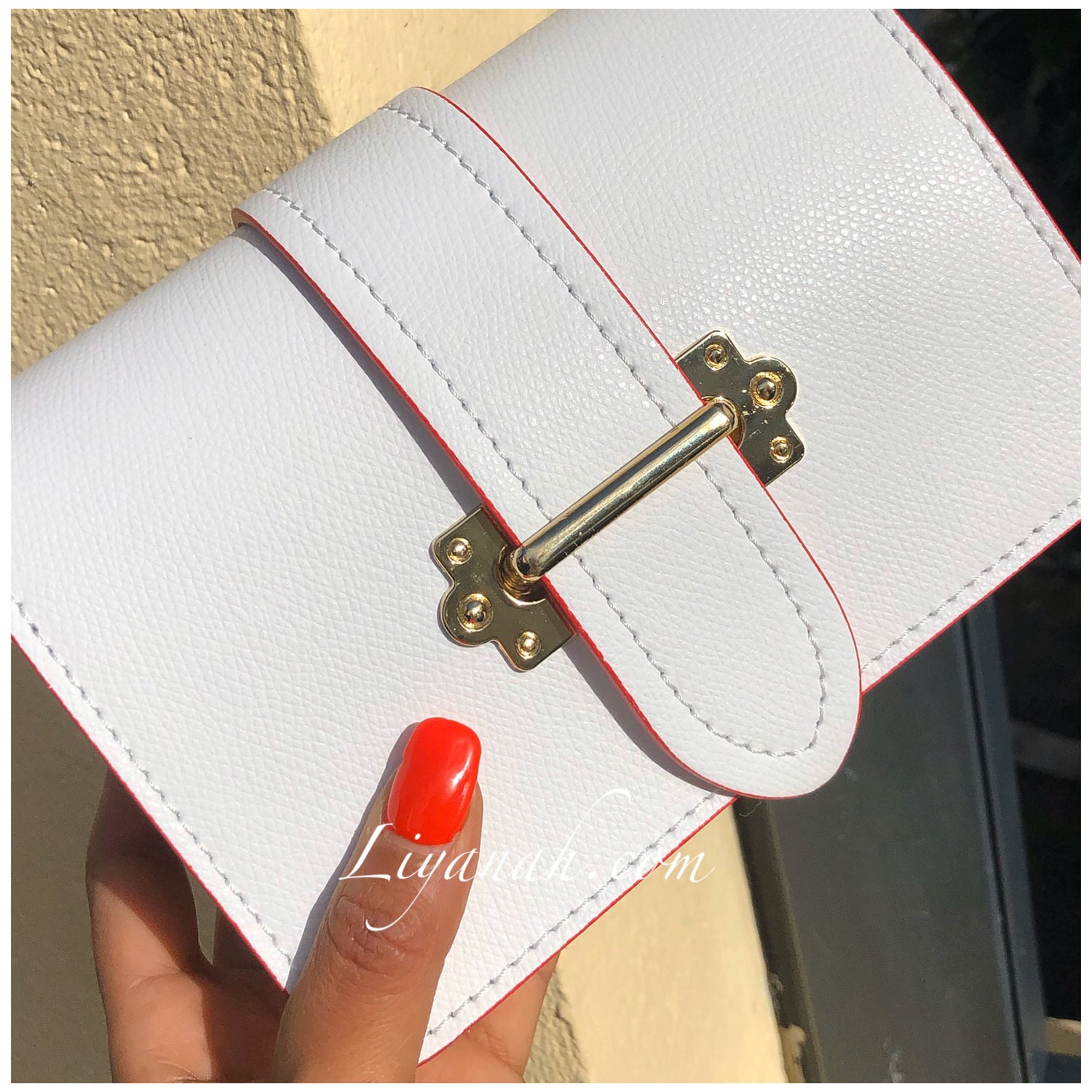 Sac Cuir PETIT Modèle EVYRYA BLANC CONTOUR ROUGE