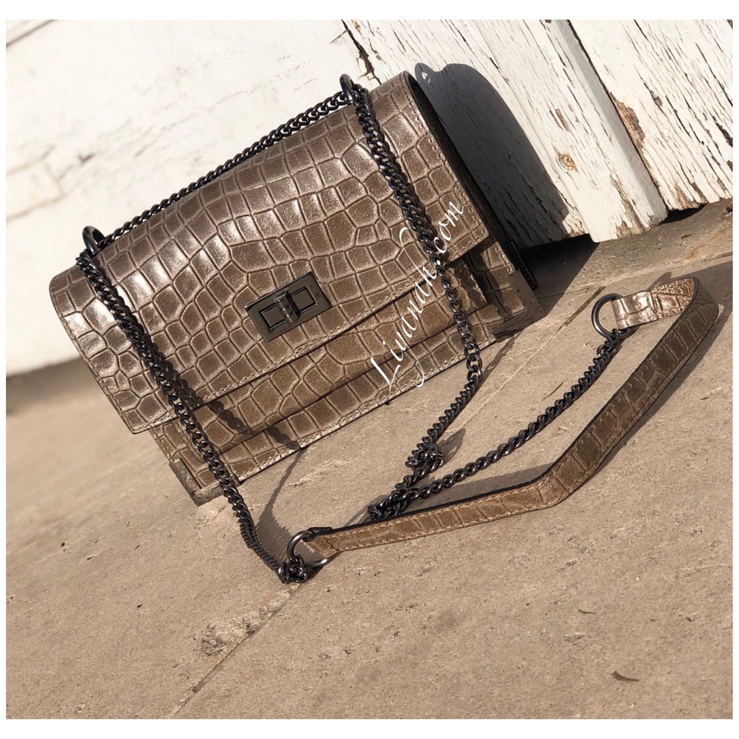 Sac Cuir PETIT Modèle TAYAMA TAUPE - 100% CUIR VÉRITABLE !!! Optez pour ce sac à main avec Chaînette fixe !!! Un modèle Tendance Et chic !!! Il se porte à l’épaule 💋Fermeture tourniquet ✖️ Dimensions : 22 cm * 14 cm (PETIT SAC) - Couleurs disponibles : NOIR ou TAUPE - À porter aussi bien le jour avec une tenue décontractée que la nuit en tenue de Soirée. Il habillera toutes vos envies Et toutes vos tenues !!!! ✖️✖️ Les sacs vendus sur notre site ne sont ni repris ni échangé