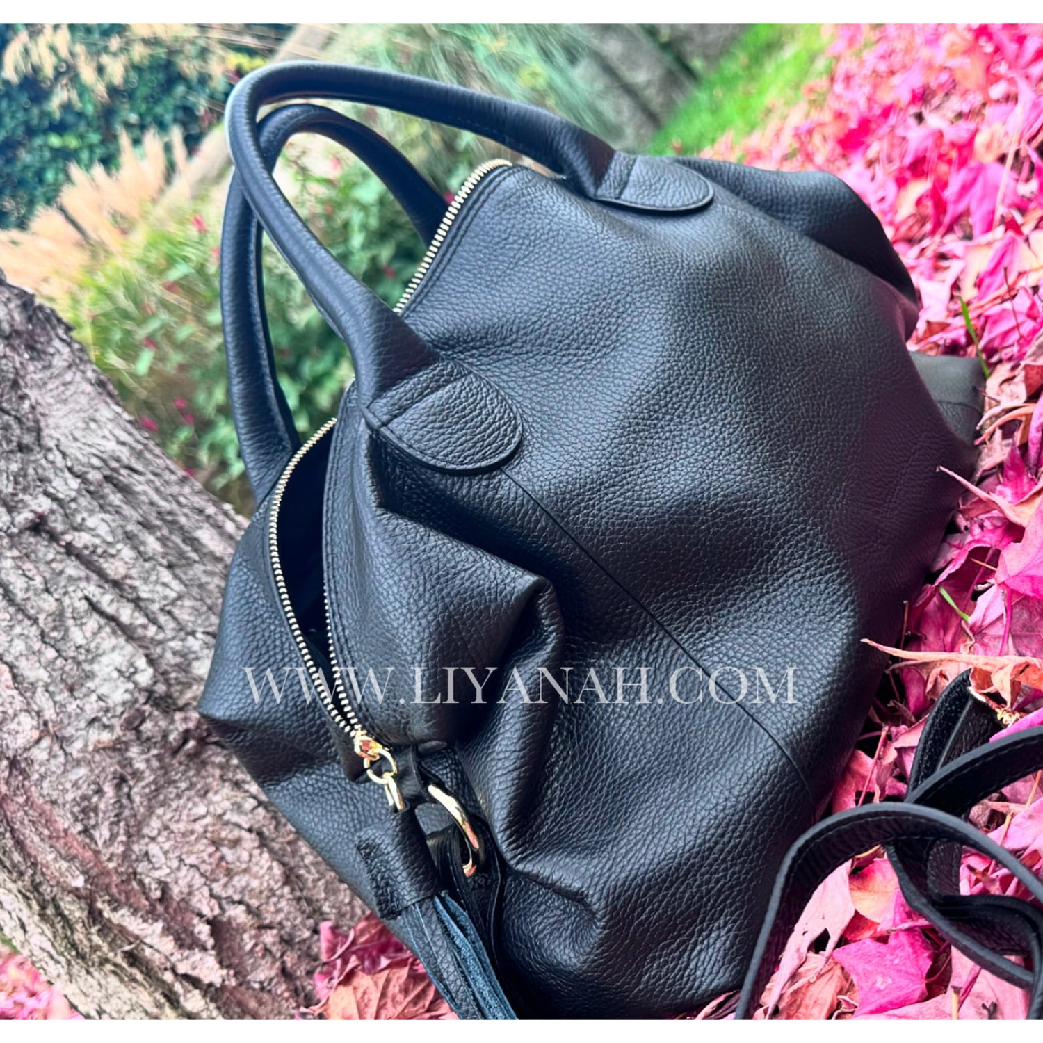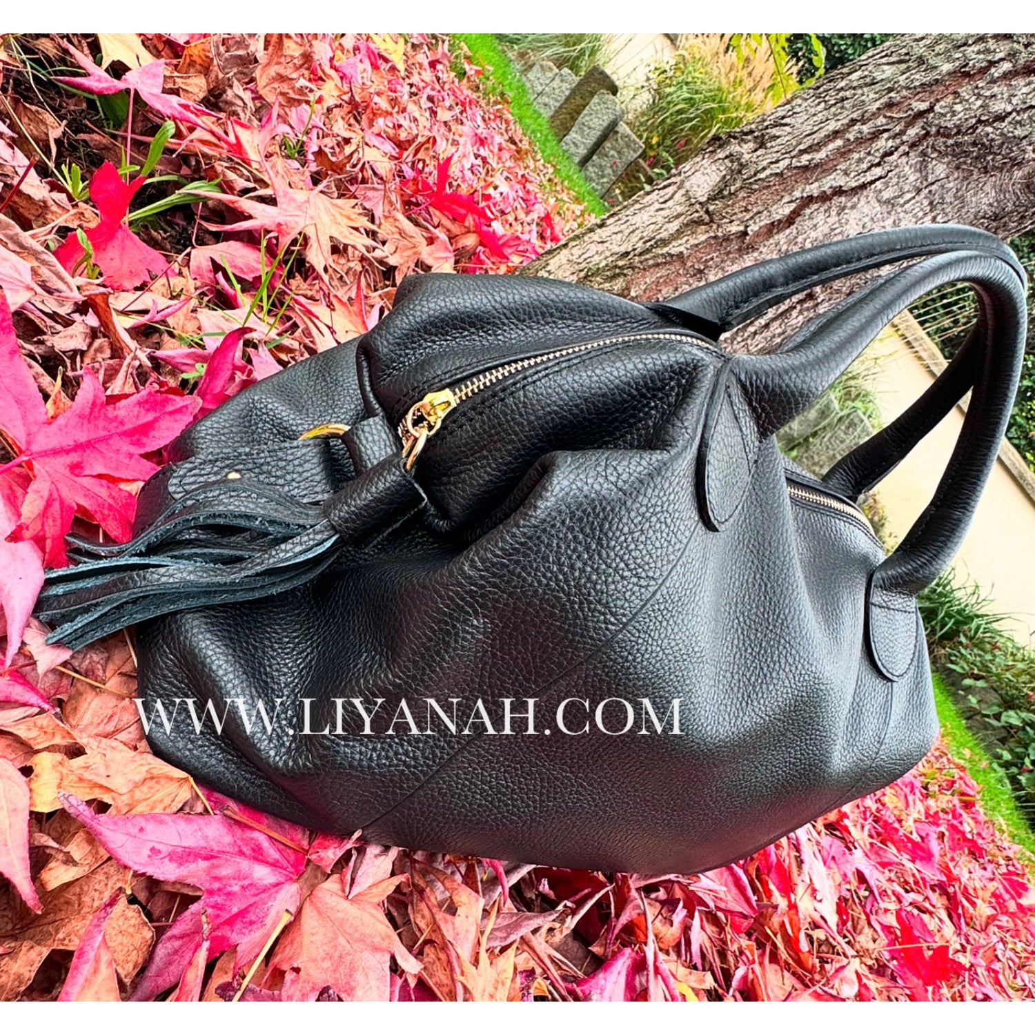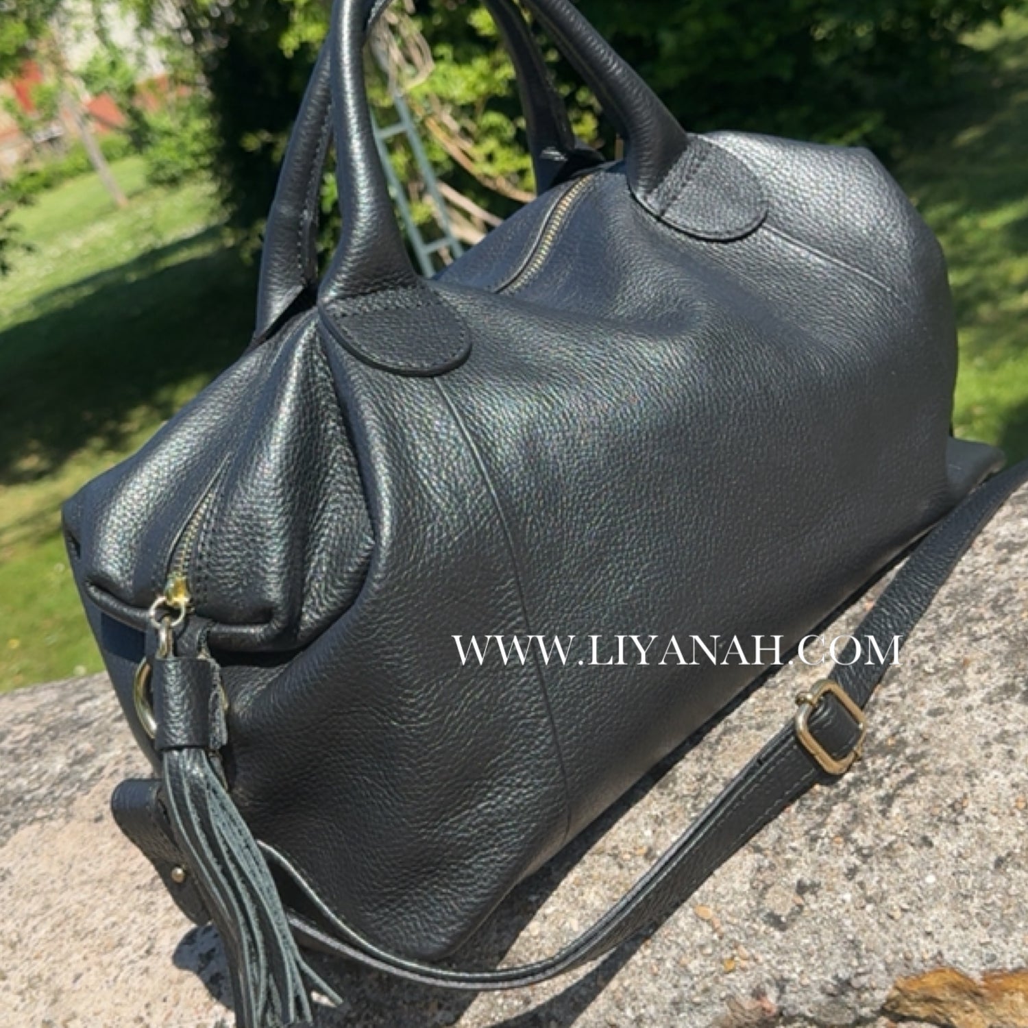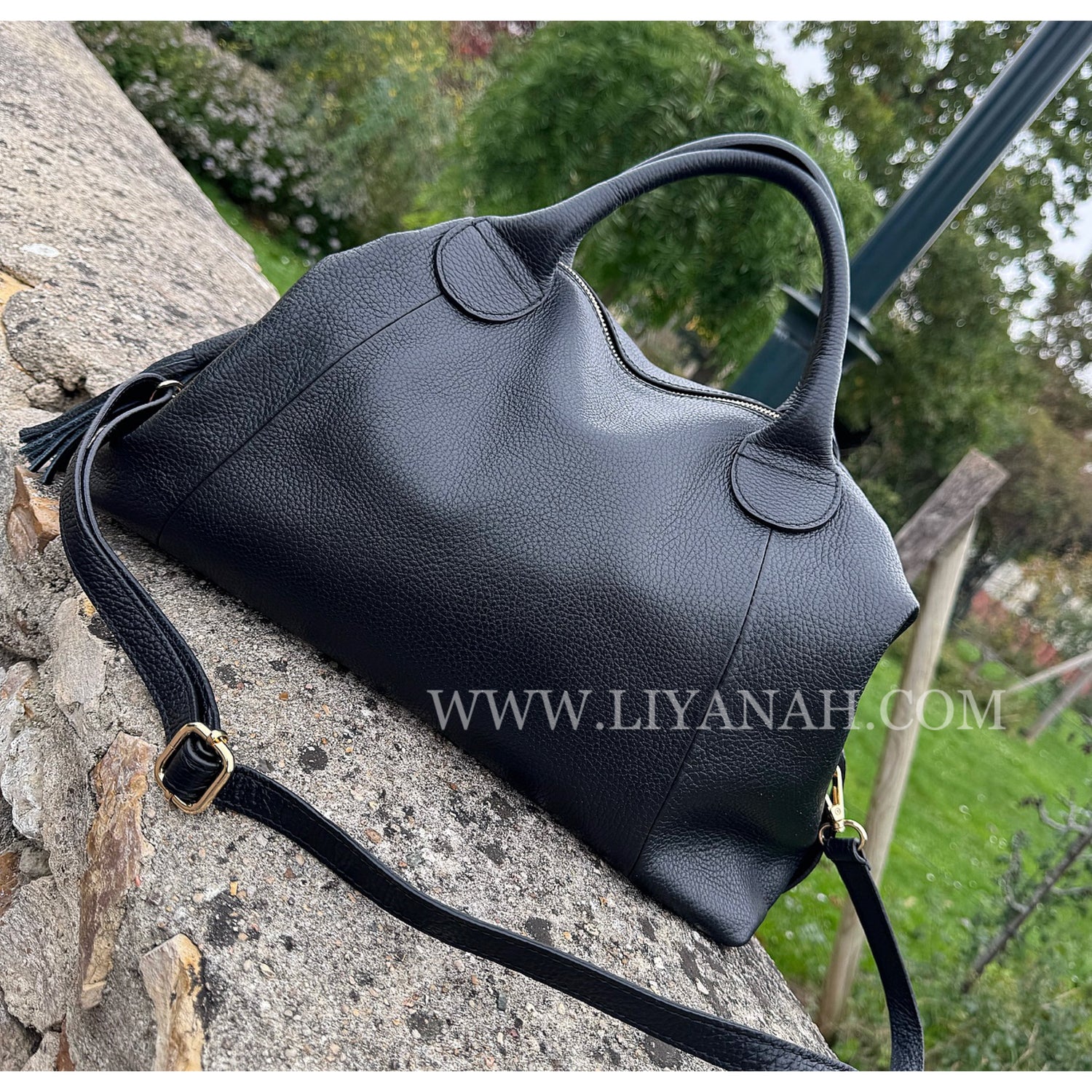 Sac Cuir MOYEN Modèle OUZOI 100% CUIR VÉRITABLE !!! Optez pour ce sac fourre tout à main avec bandoulière !!! Un modèle Tendance Et chic !!! Il se porte à l’épaule ou poignet main - Fermeture ZIP avec détails sur les côtés pompons