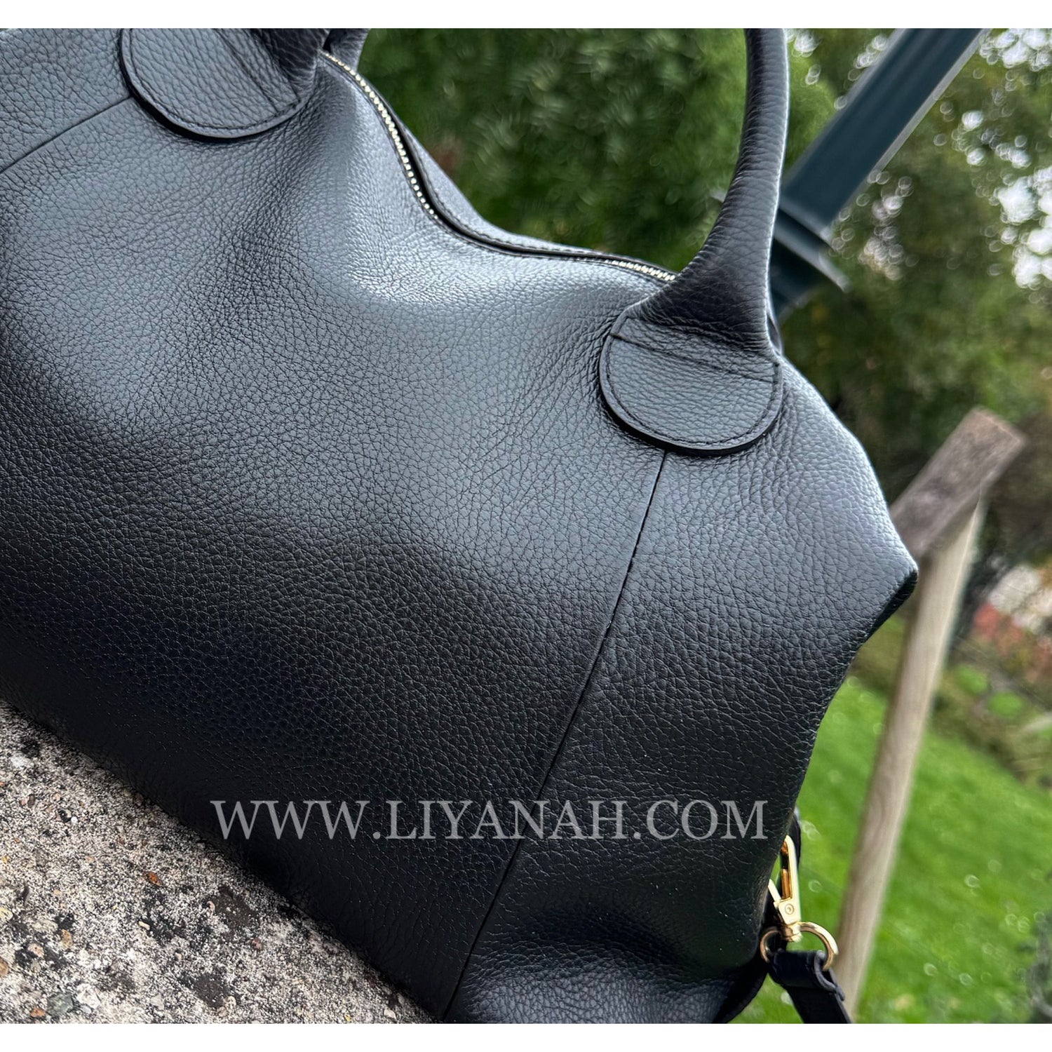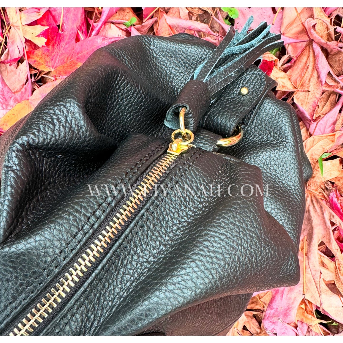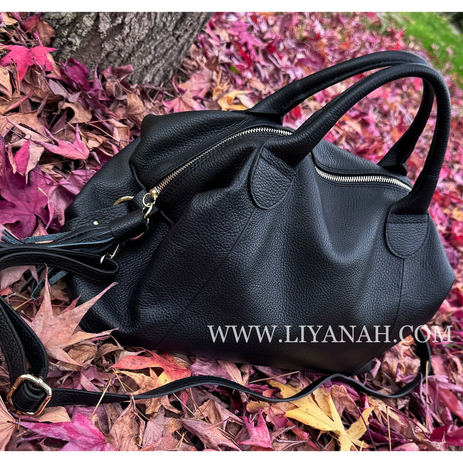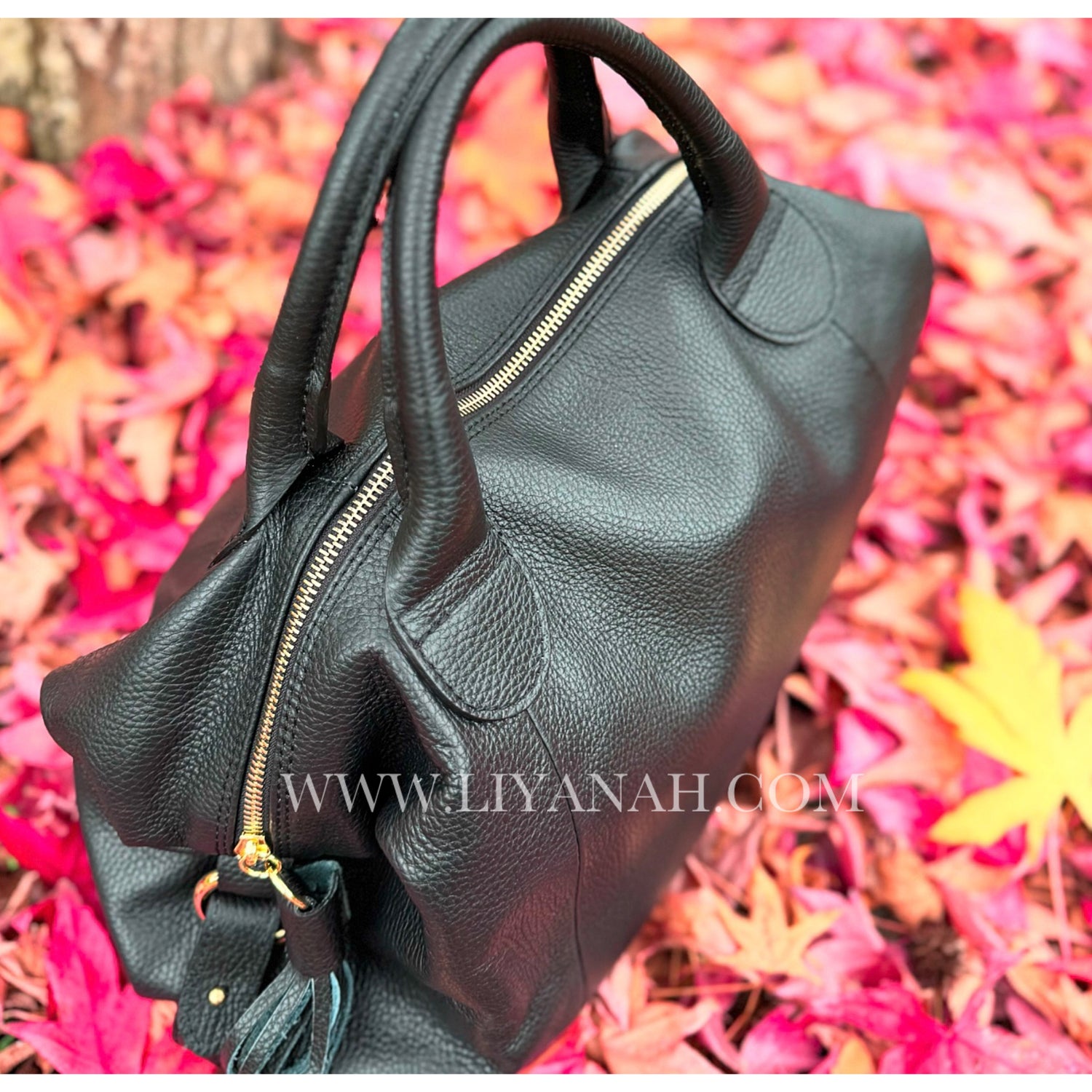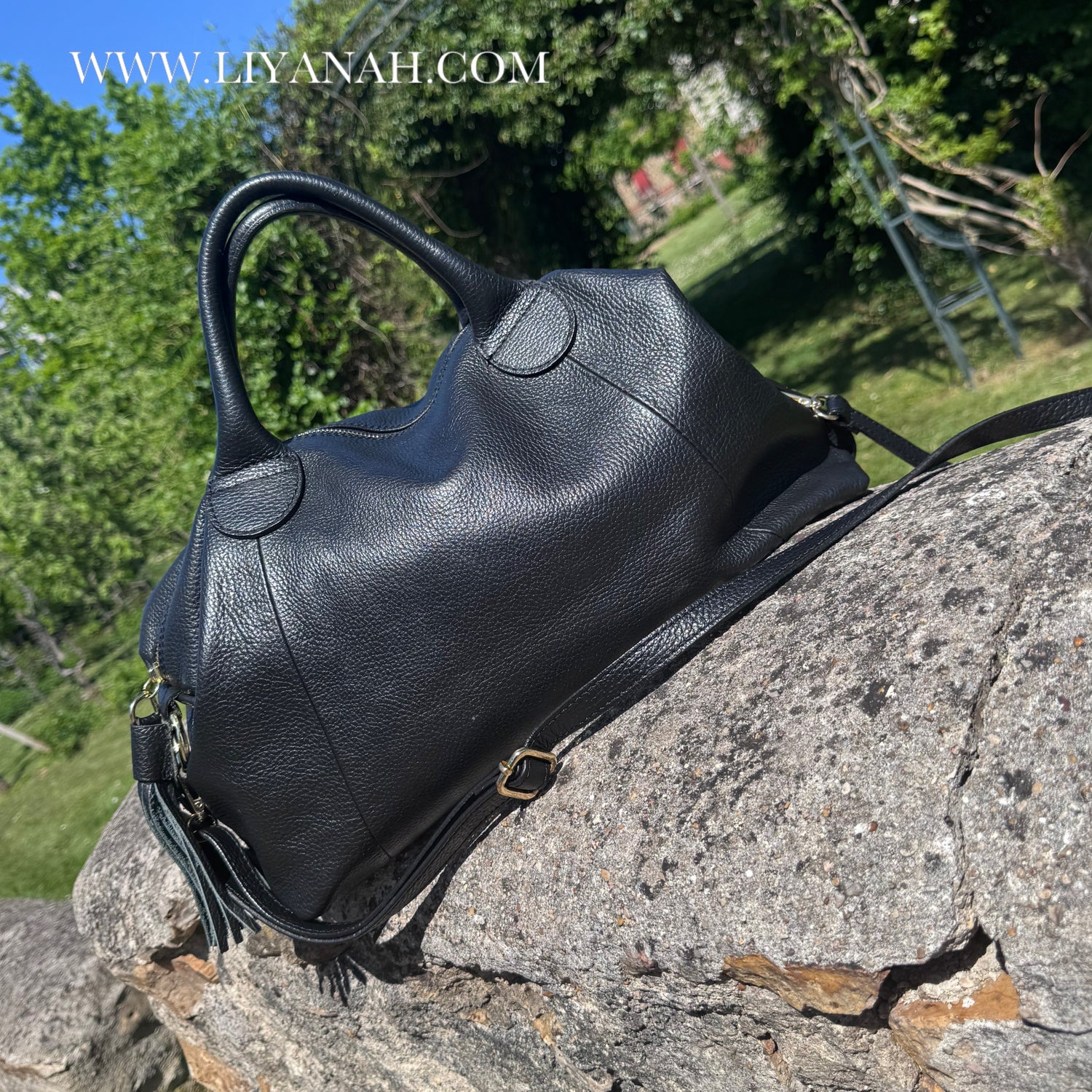 Sac Cuir MOYEN Modèle OUZOI 100% CUIR VÉRITABLE !!! Optez pour ce sac fourre tout à main avec bandoulière !!! Un modèle Tendance Et chic !!! Il se porte à l’épaule ou poignet main - Fermeture ZIP avec détails sur les côtés pompons