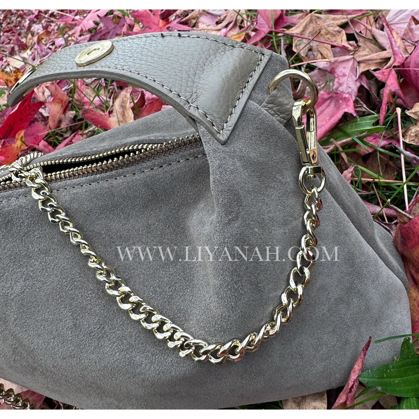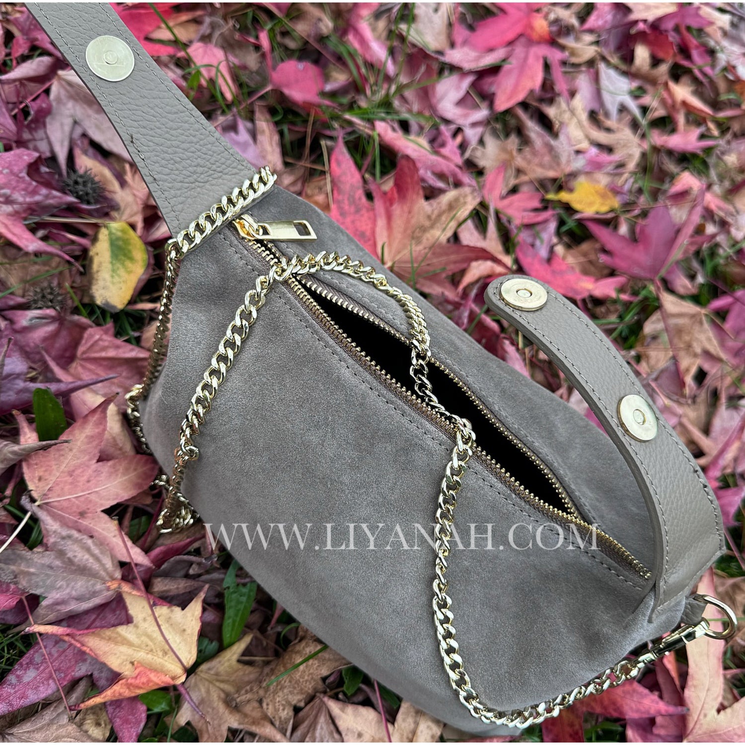 Sac Cuir PETIT Modèle LOUANA 100% CUIR DAIM VÉRITABLE !!! Optez pour ce sac à main avec bandoulière chaîne et fermeture poignée aimantée !!! Un modèle Tendance Et chic !!! Il se porte à l’épaule ou poignet main - Fermeture ZIP