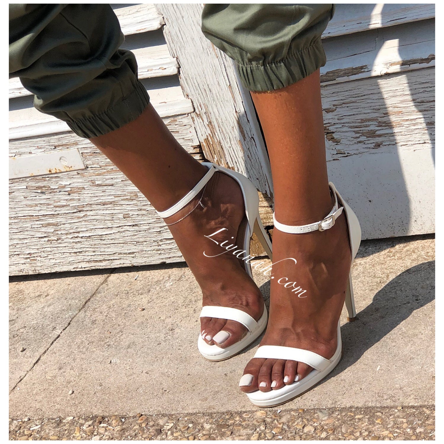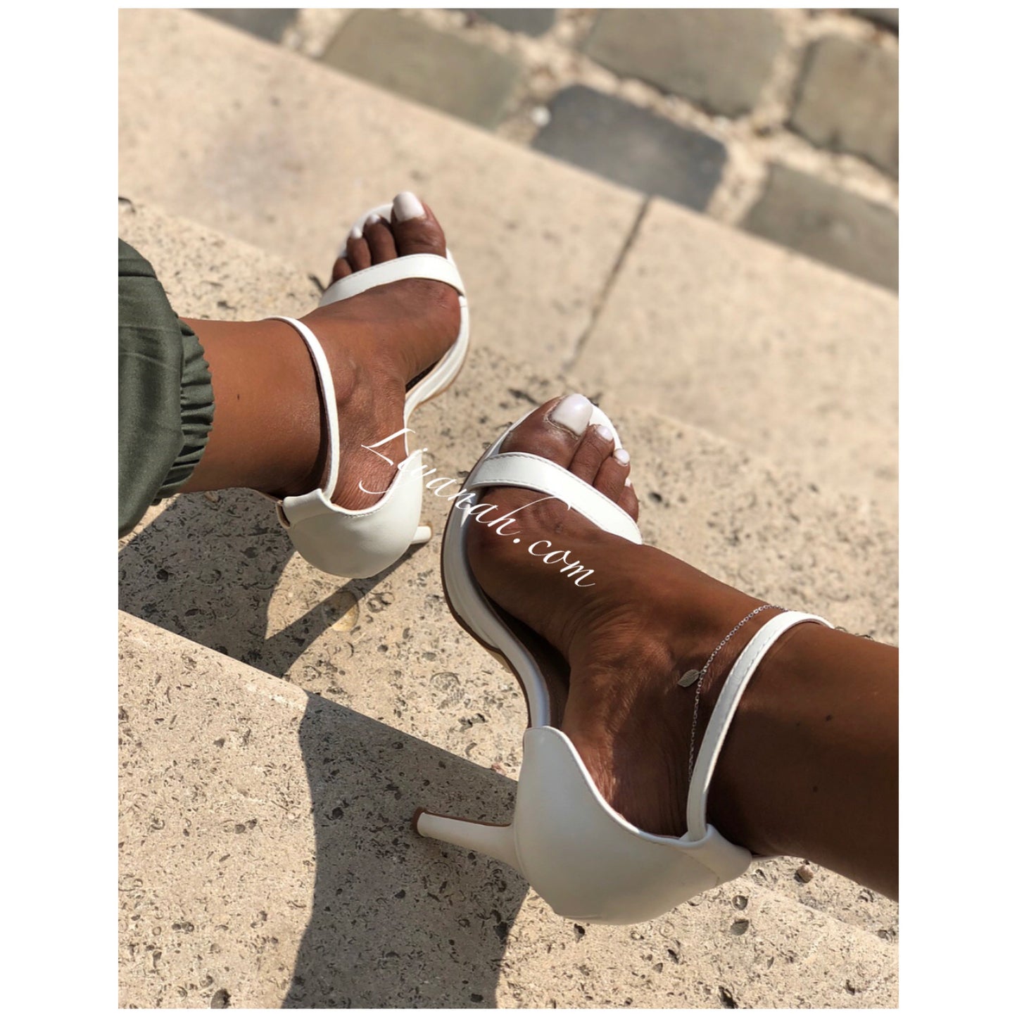 Sandales à talons Modèle CHAYNA Blanc Ces sandales à talons avec leurs attaches arrondies sont éblouissantes. Elles se portent selon vos envies !!! En Jean, Pantalon taille haute ou basse, En Robe ... De nuit Comme de jour 🌸 hauteur du talon ~ 12 cm ➰ Pointures du 36 au 41 (Pour des raisons d'hygiène, les sandales ne sont ni repris ni échangé.) Conseil : Prenez votre taille habituelle Ce modèle est disponible en Noir, Blanc et Nude