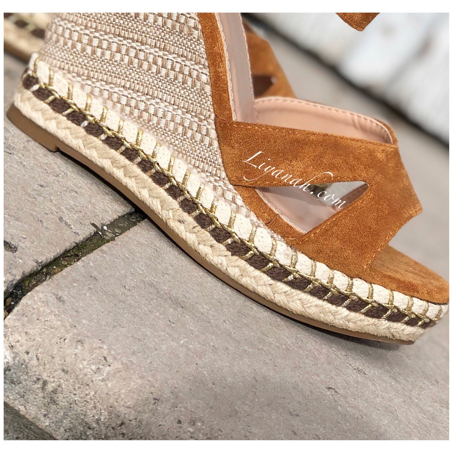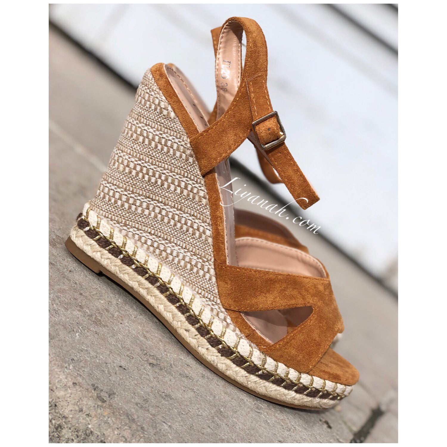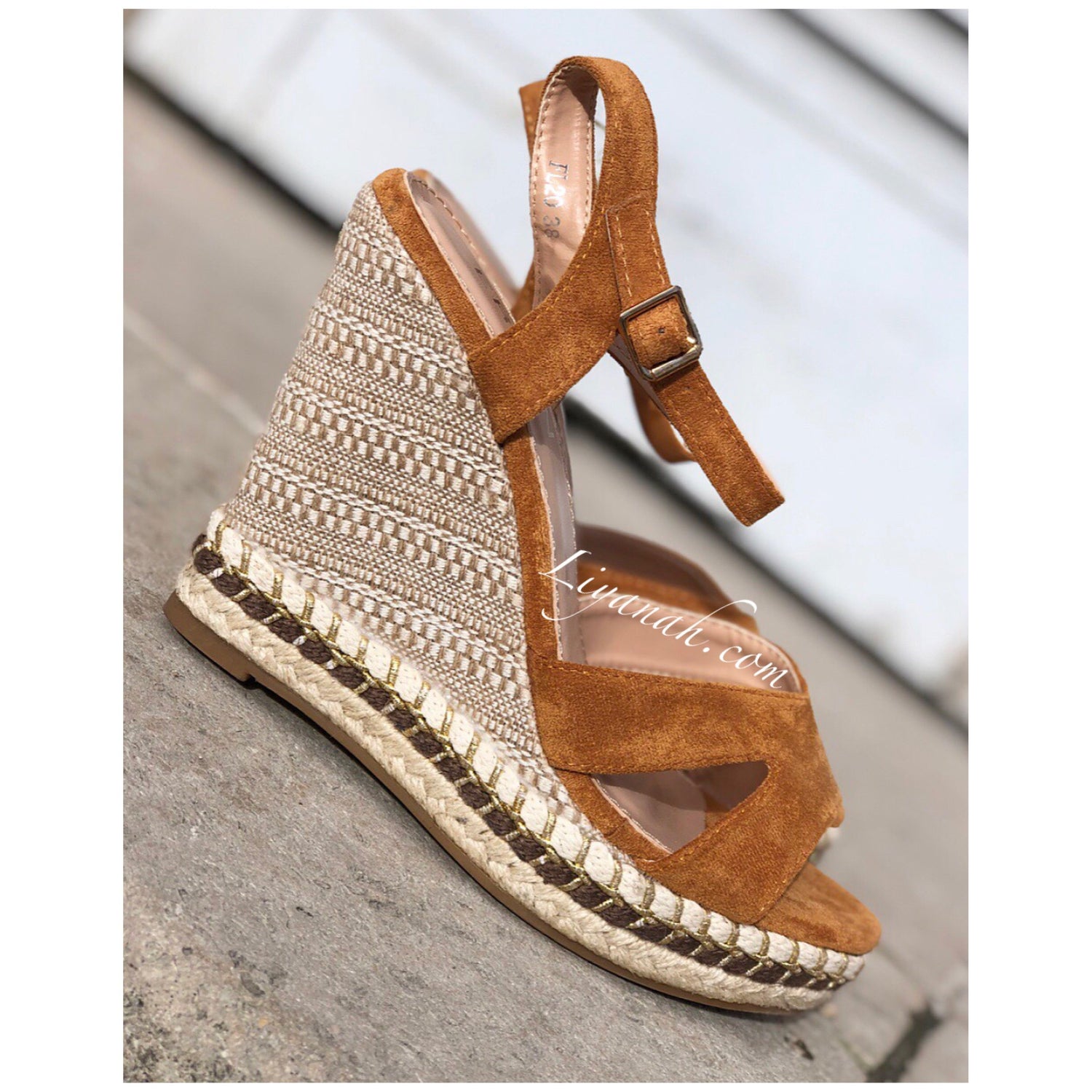SANDALES COMPENSÉES Modèle CHAYZA CAMEL - Sandales compensées avec Fermeture à boucle à la cheville, aspect daim de couleur camel sur un talon haut style corde !!! hauteur ~ 12 cm !! Un compensé pour vôtre plus grand confort. Et Pour la finition noeuds qui s'entrelace sur le bas de la sandale - Très bon maintien du pied ➰ Pointures du 36 au 41 - Conseil : Prenez votre pointure habituelle