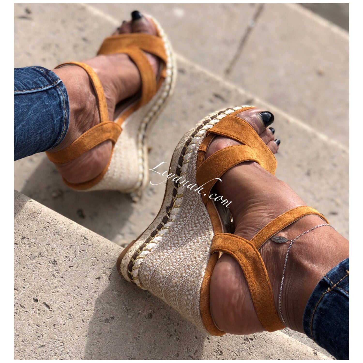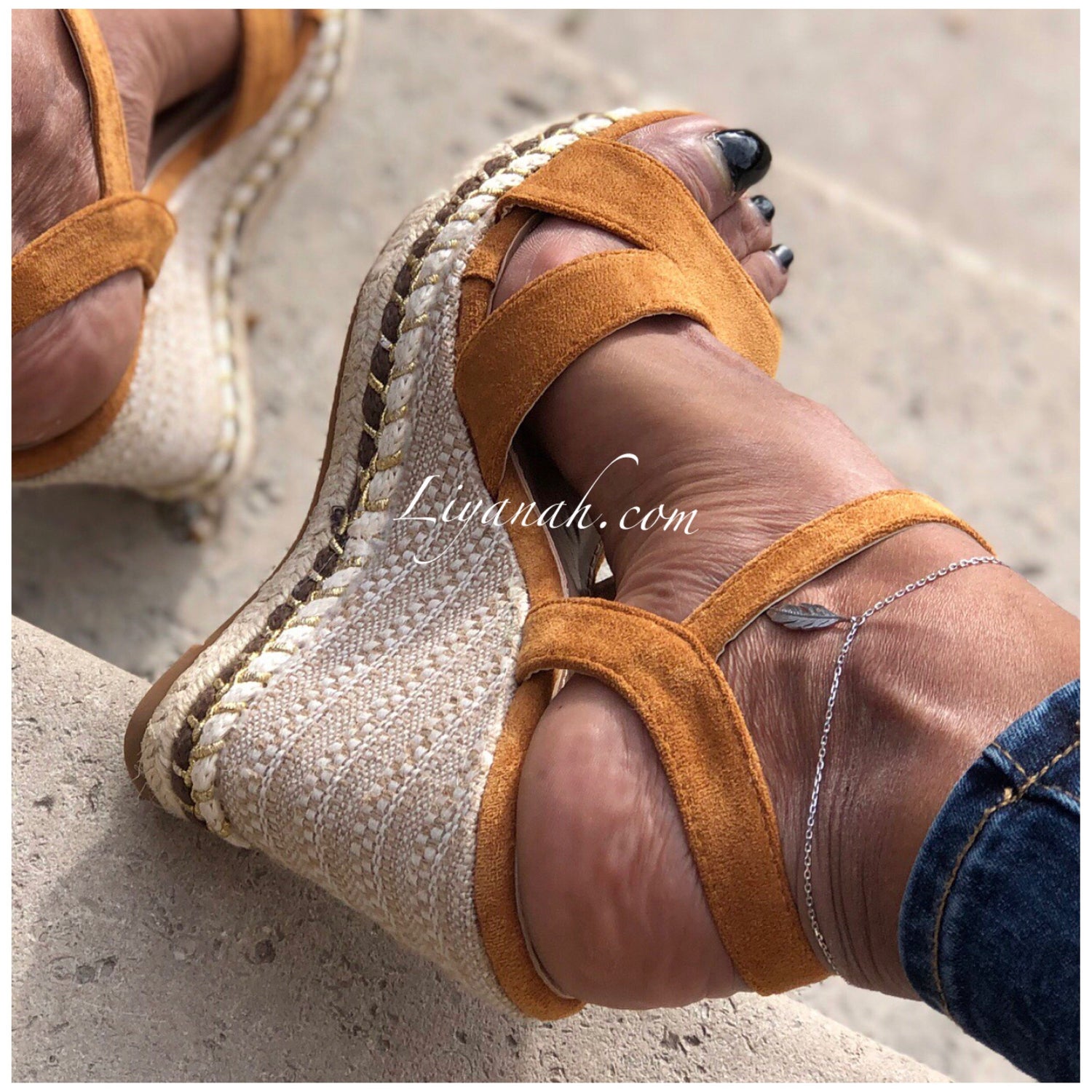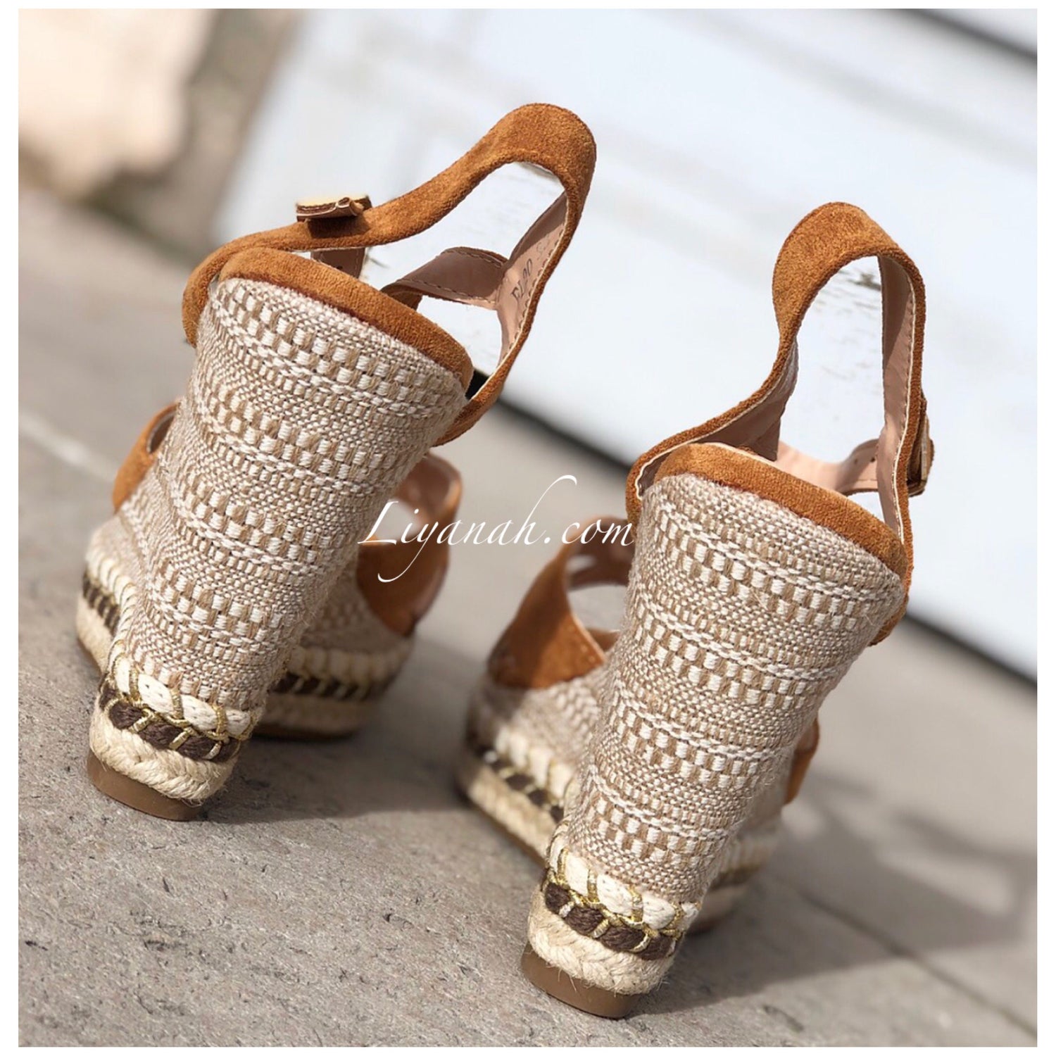 SANDALES COMPENSÉES Modèle CHAYZA CAMEL - Sandales compensées avec Fermeture à boucle à la cheville, aspect daim de couleur camel sur un talon haut style corde !!! hauteur ~ 12 cm !! Un compensé pour vôtre plus grand confort. Et Pour la finition noeuds qui s'entrelace sur le bas de la sandale - Très bon maintien du pied ➰ Pointures du 36 au 41 - Conseil : Prenez votre pointure habituelle