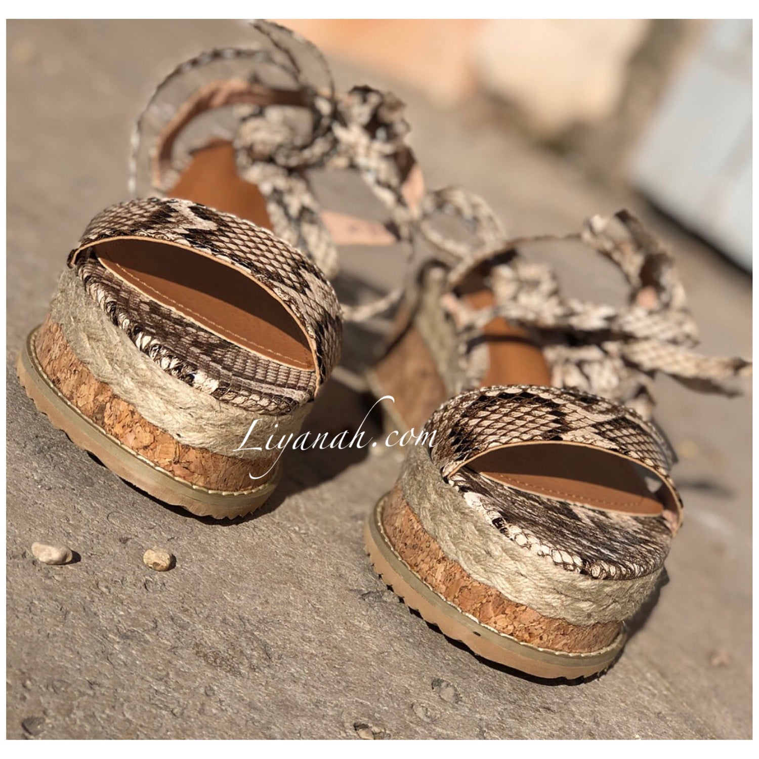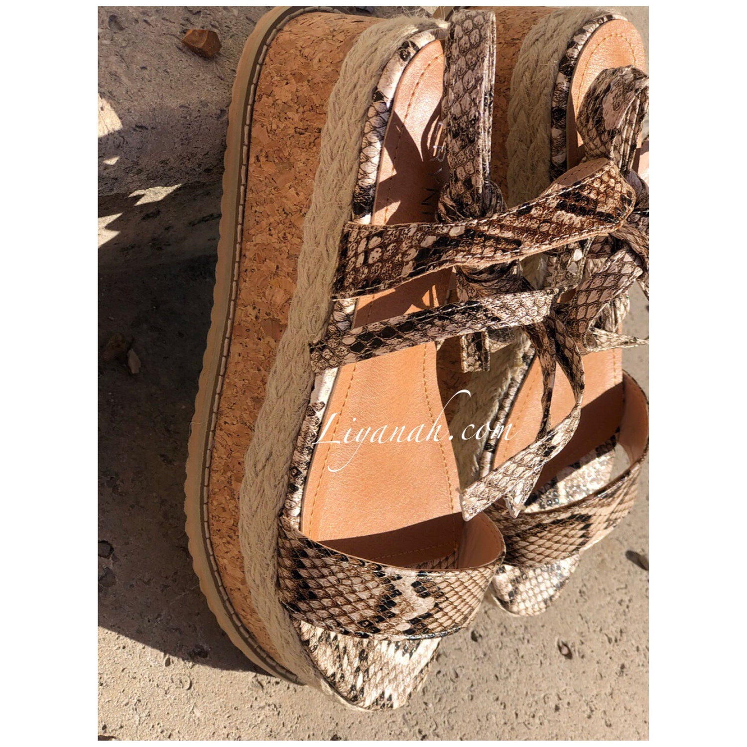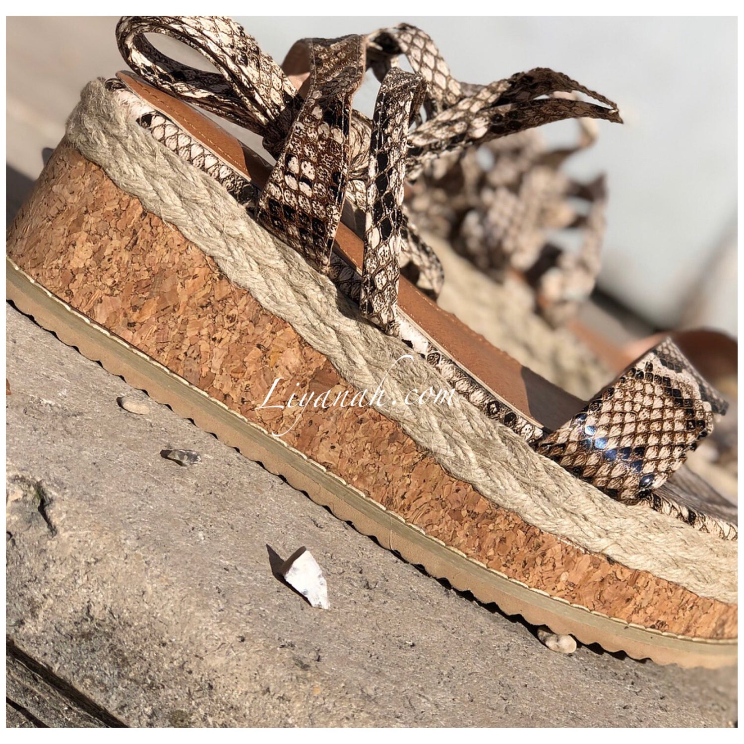 SANDALES COMPENSÉES Modèle DALYA PYTHON 🐍 Sandales compensées à noeud, aspect cuir (Synthétique) sur un talon haut en corde !!! hauteur ~ 7 cm !! Un compensé pour vôtre plus grand confort. Et Pour la finition une large bande bois et cordes qui s'entrelace sur le bas de la sandale - Très bon maintien du pied, et Bout ouvert !! ➰ Pointures du 36 au 41 - Conseil : Prenez votre pointure habituelle Pour des raisons d'hygiène, les sandales ne sont ni repris ni échangé.