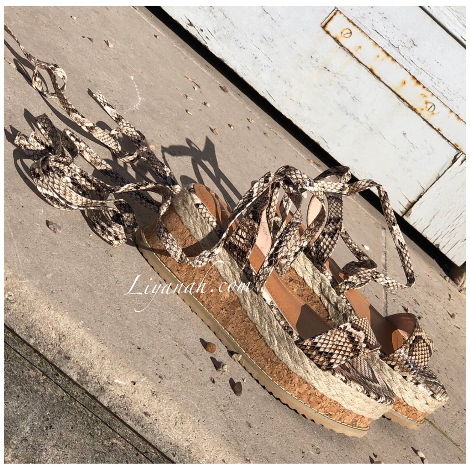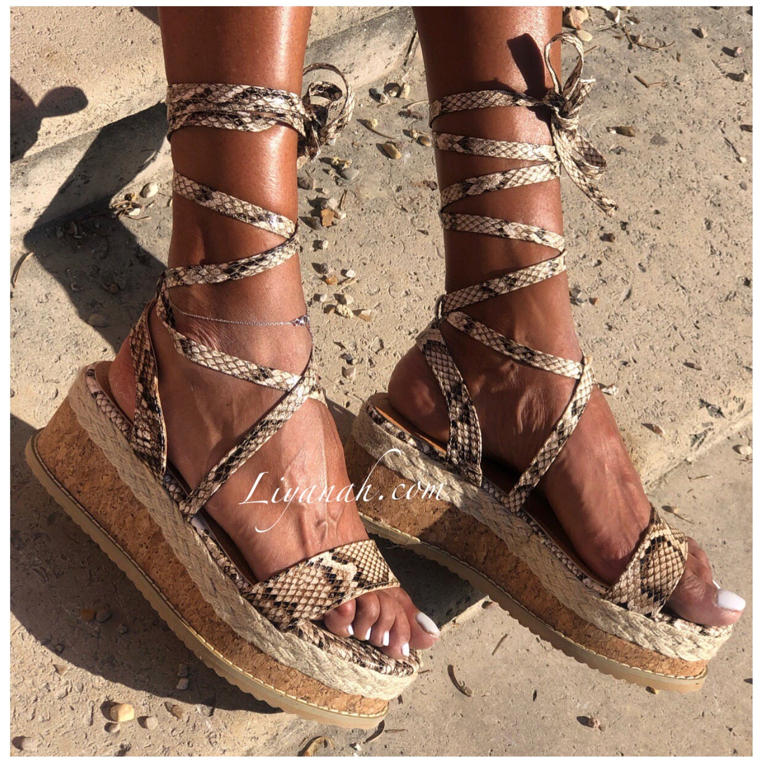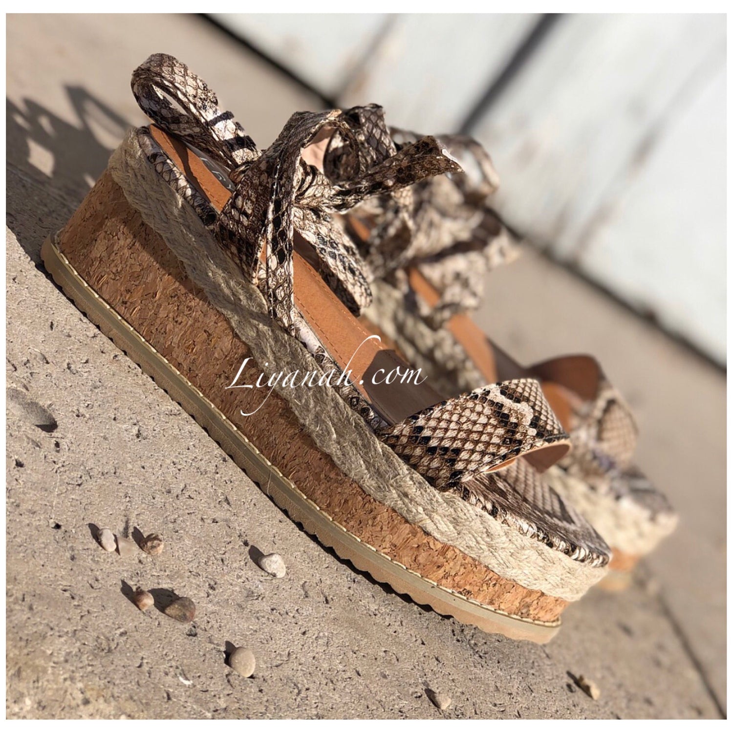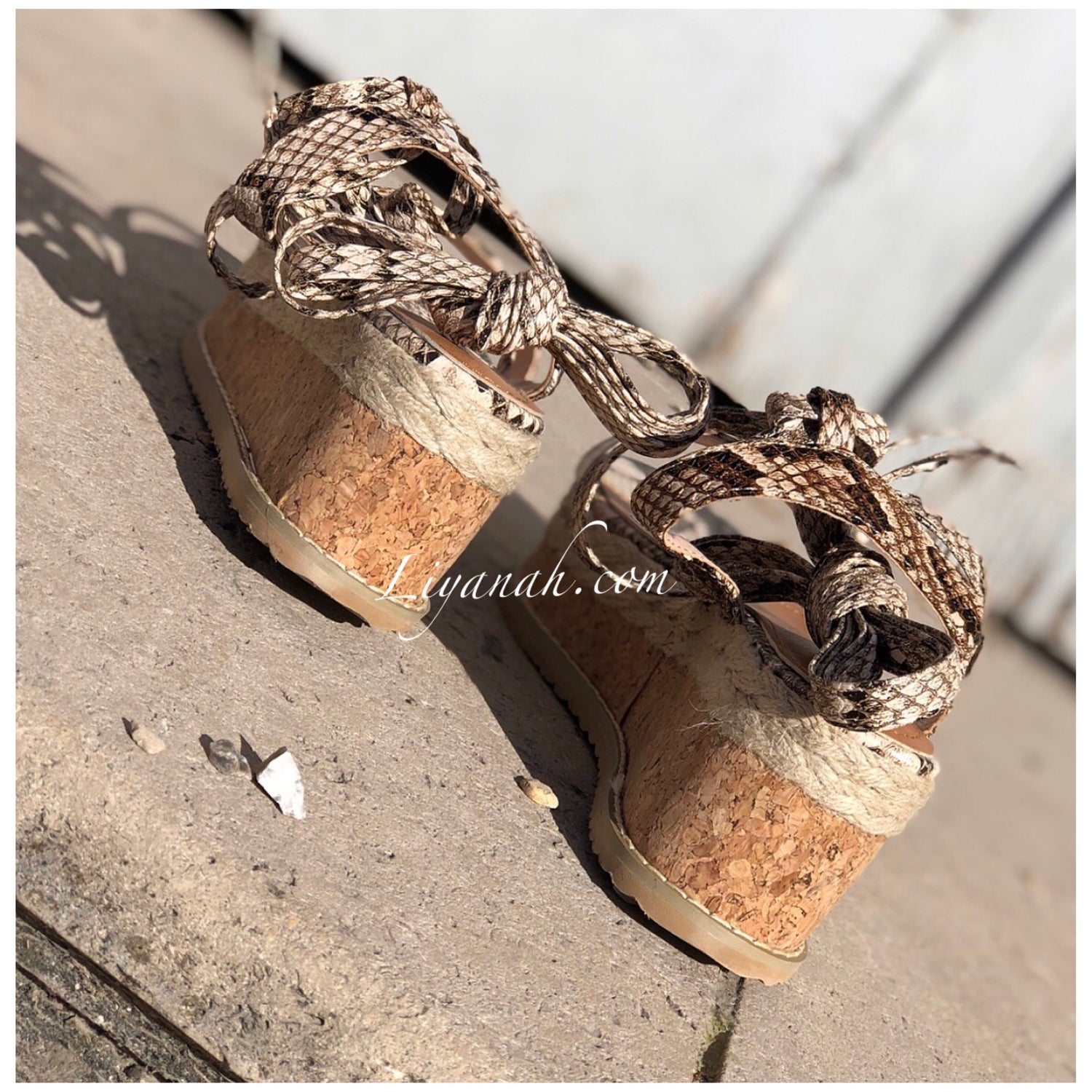 SANDALES COMPENSÉES Modèle DALYA PYTHON 🐍 Sandales compensées à noeud, aspect cuir (Synthétique) sur un talon haut en corde !!! hauteur ~ 7 cm !! Un compensé pour vôtre plus grand confort. Et Pour la finition une large bande bois et cordes qui s'entrelace sur le bas de la sandale - Très bon maintien du pied, et Bout ouvert !! ➰ Pointures du 36 au 41 - Conseil : Prenez votre pointure habituelle Pour des raisons d'hygiène, les sandales ne sont ni repris ni échangé.