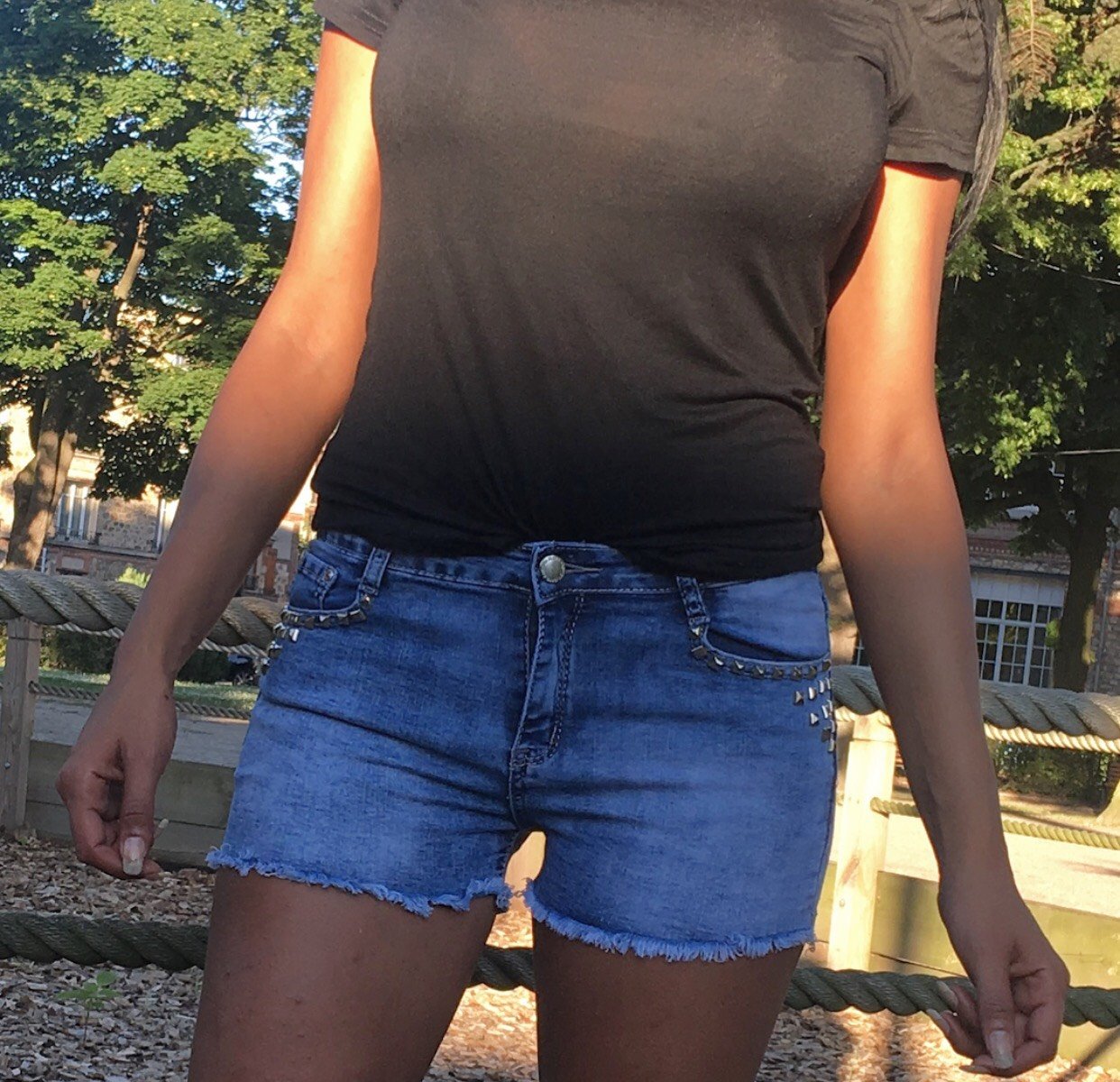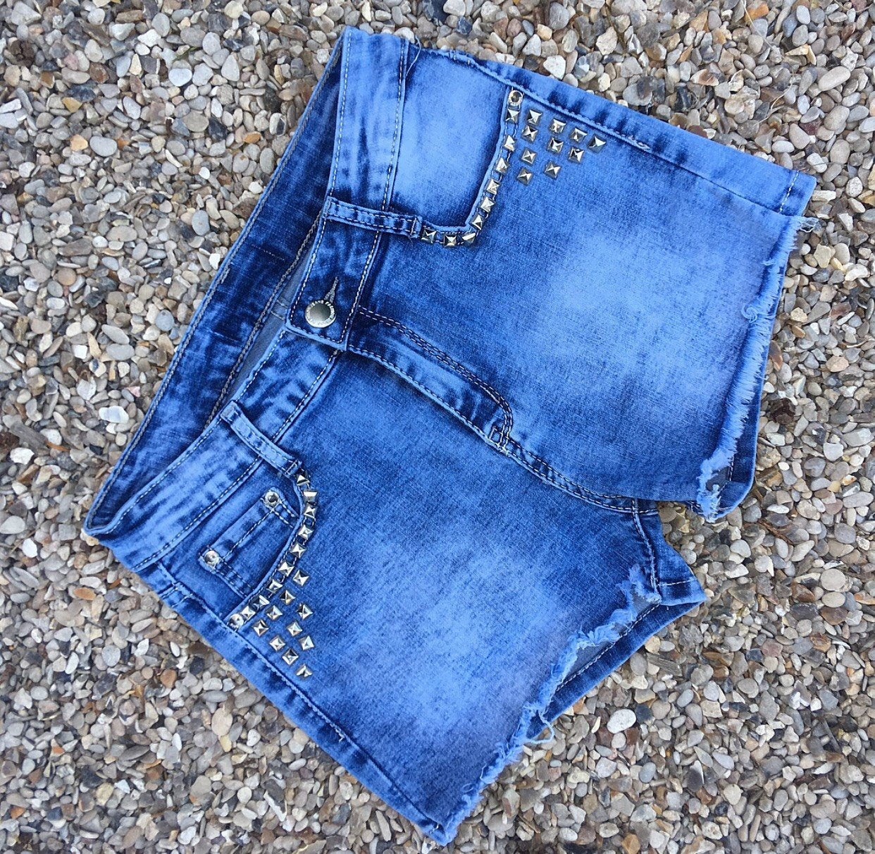 Short en jean avec détails Des clous pyramidaux argenté !!!