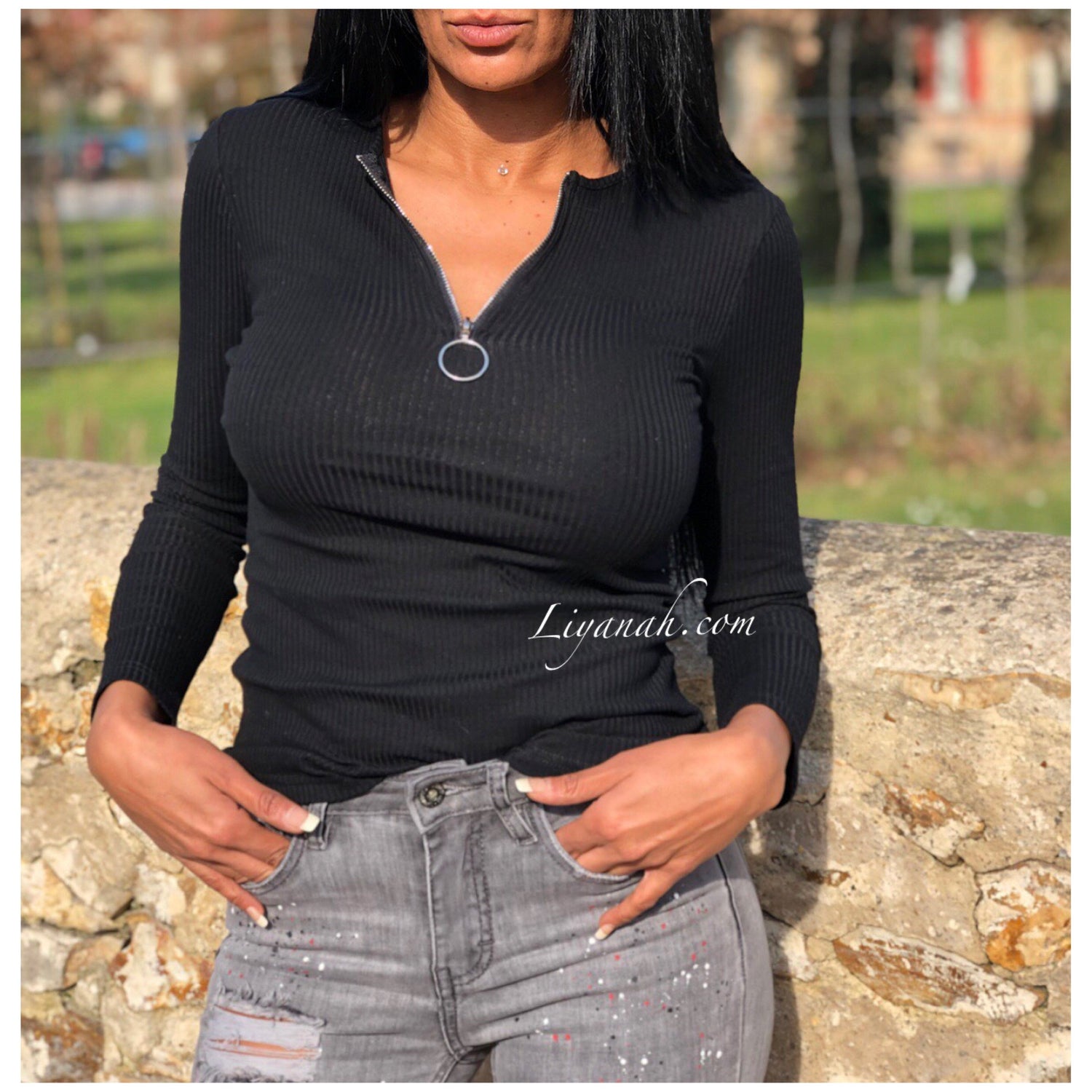Top Modèle DOUNYA NOIR 🖤 Top à enfiler avec Zip rond à l’avant !!! Manches longues - Coupe près du corps et matière côtelé - Taille SM ou ML - 95% Coton 5% Elasthanne