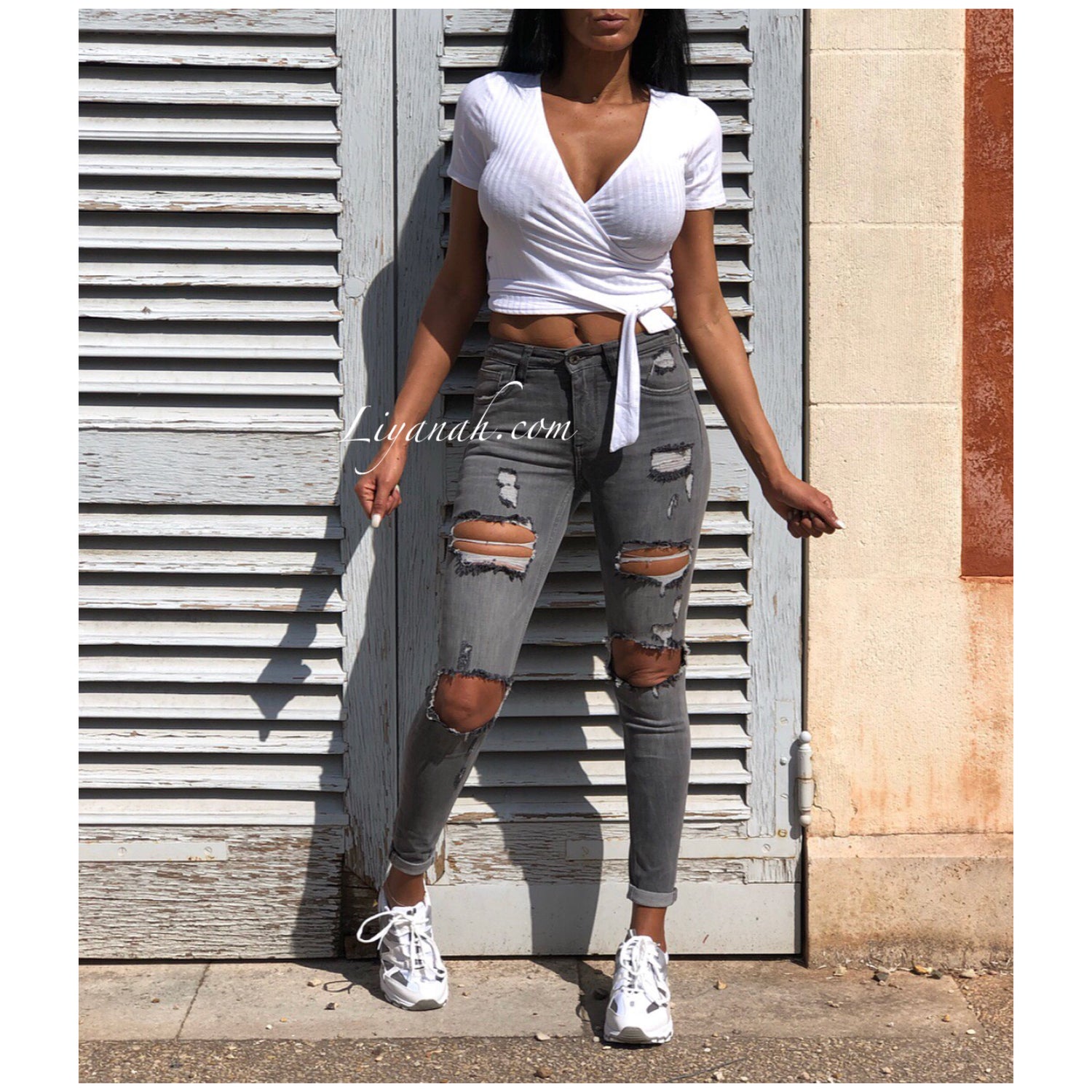 TOP Modèle MAYARA BLANC - Top court aspect cache coeur avec noeud à nouer fixe - Matière agréable à porter !! Tissus Côtelé et transparent