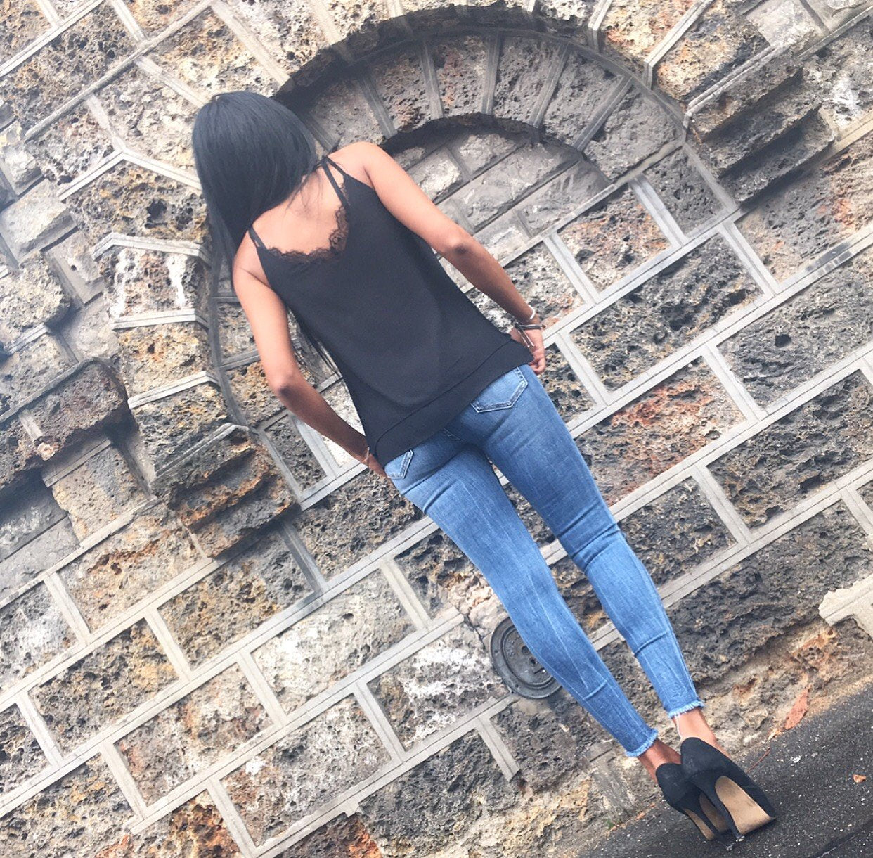 Top NOLANE Noir 💋 Bordure dentelle ✔️ Doublé ✔️ 100 % Polyester Taille S/M ou L