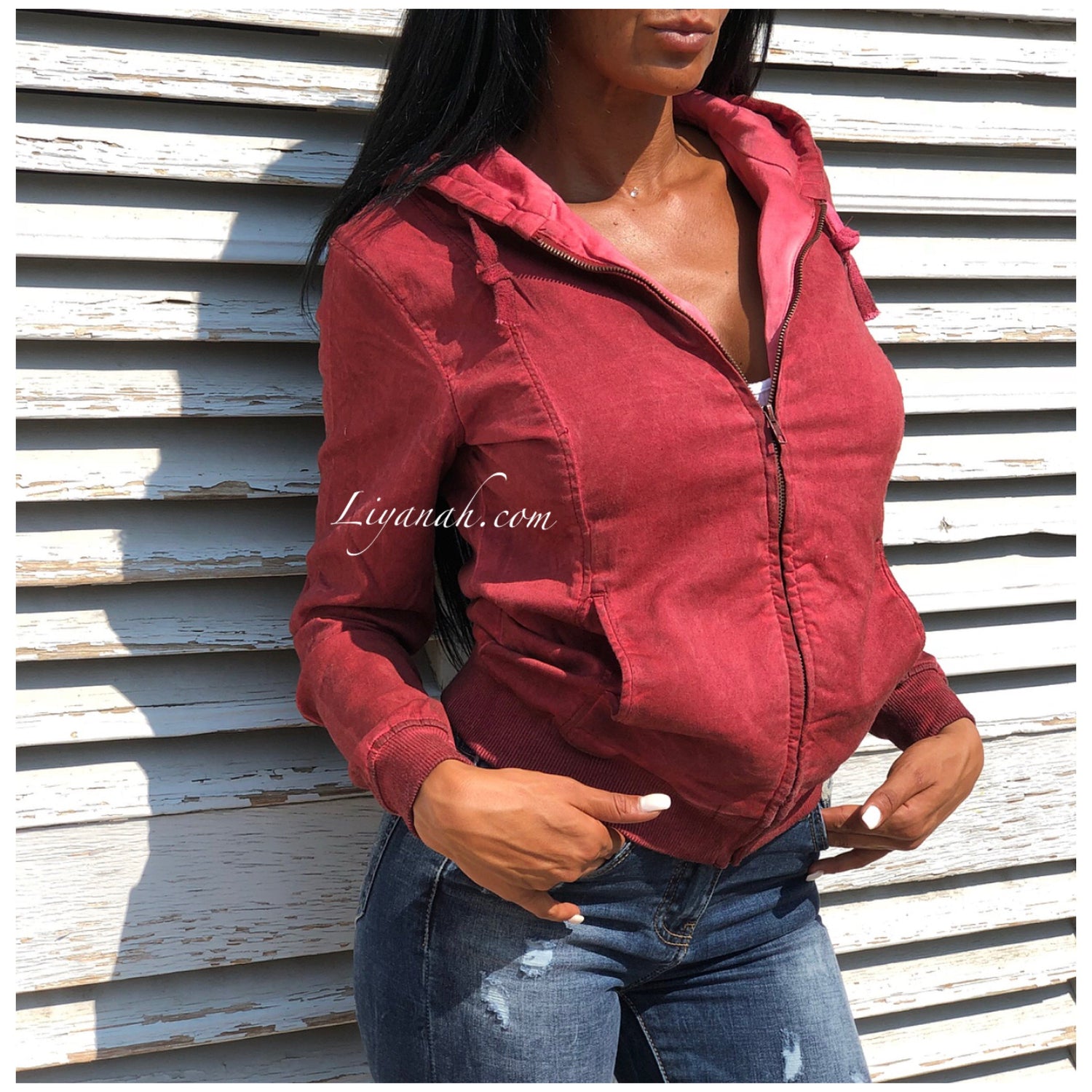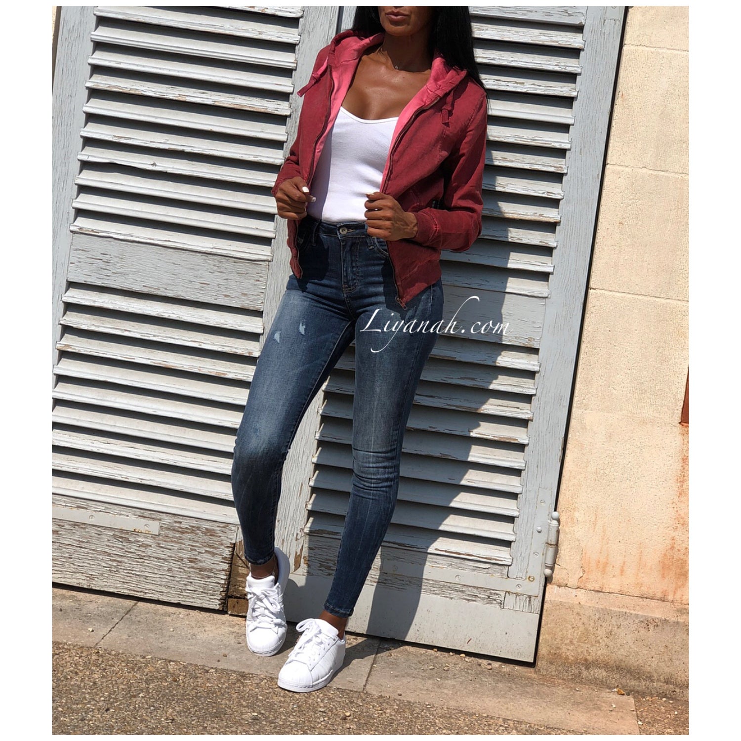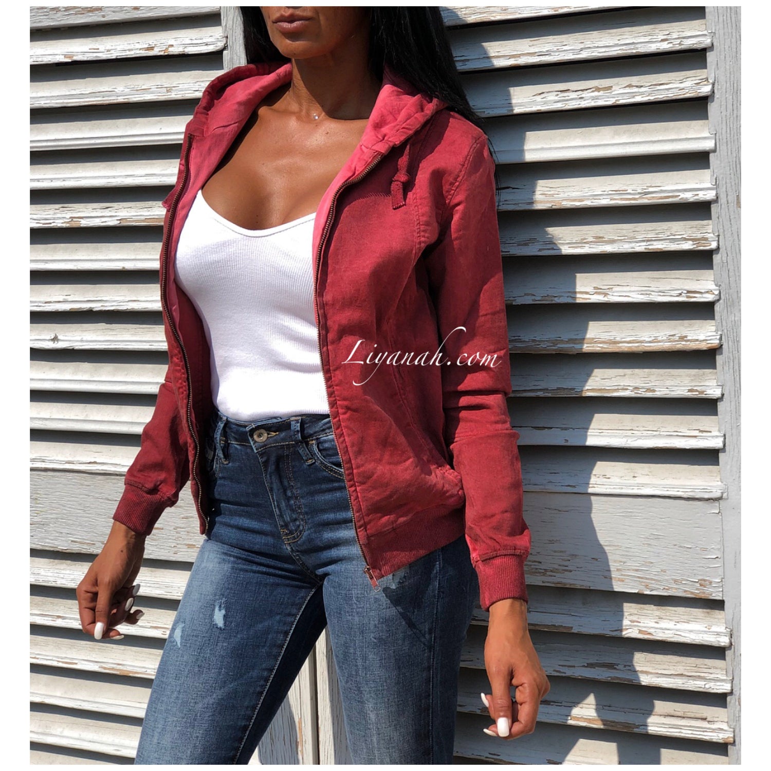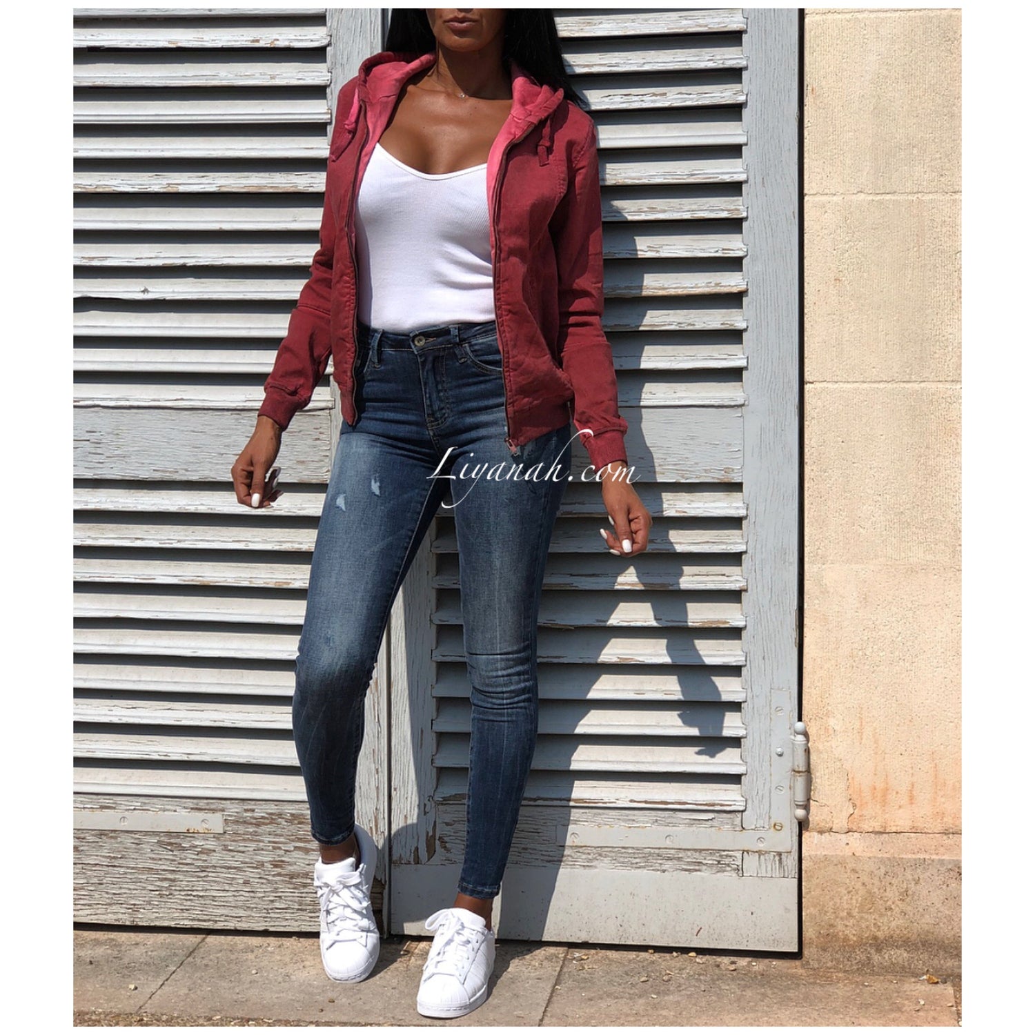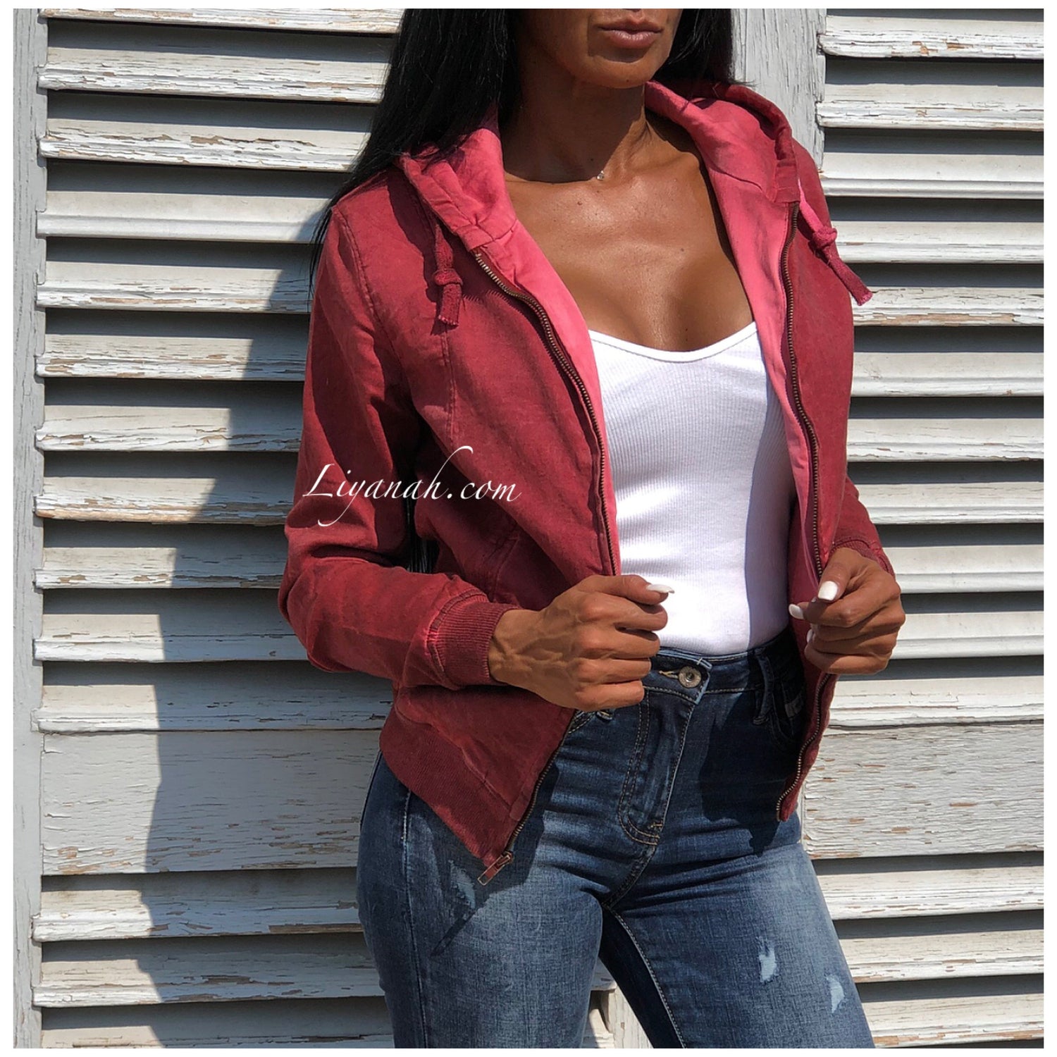 Veste style sport swear avec capuche et cordons, deux poches fonctionnelles !! Coupe près du corps et cintrée !! Fermeture ZIP ❤️ EFFET USÉ !!! 97% COTON 3% Elasthanne - Taille S à XL