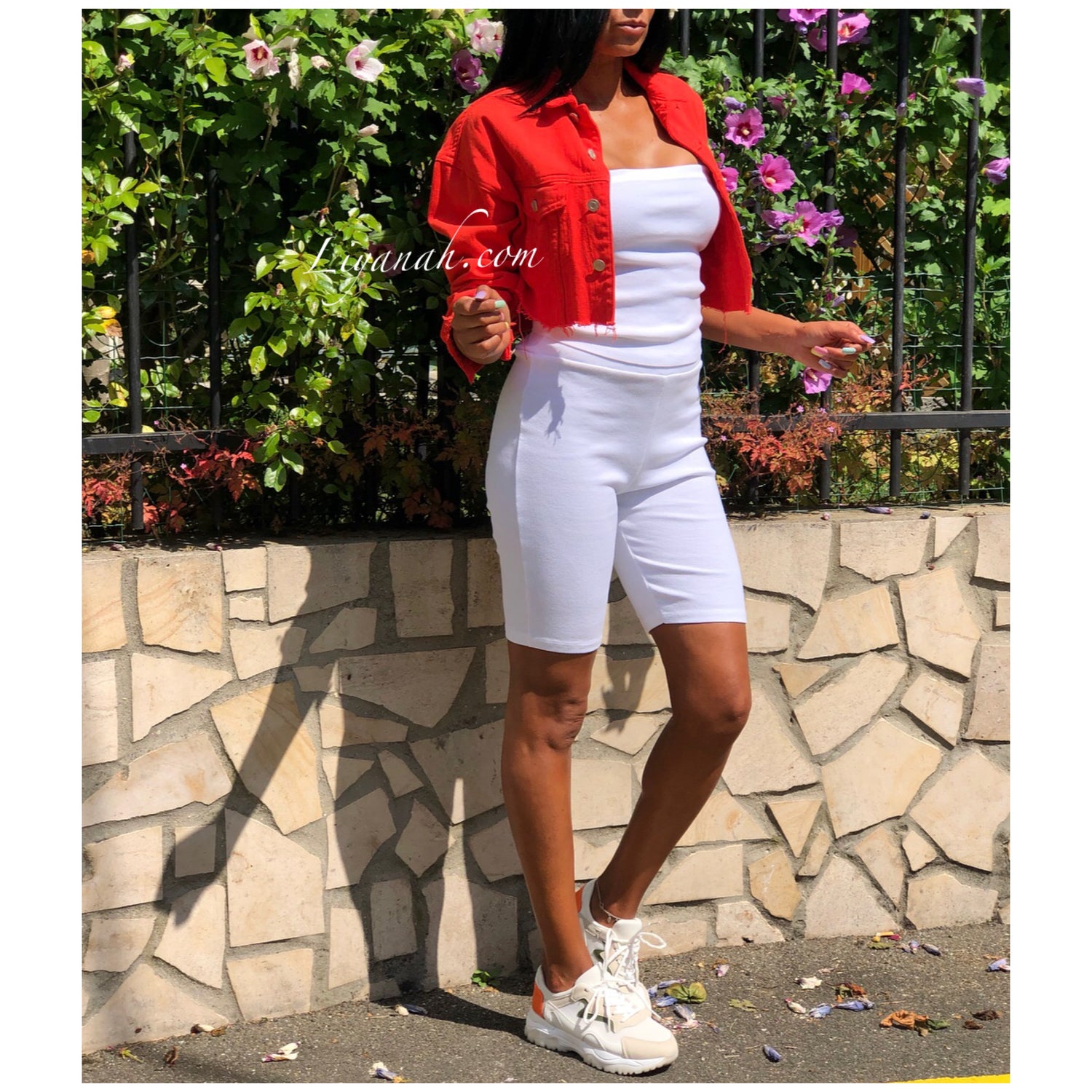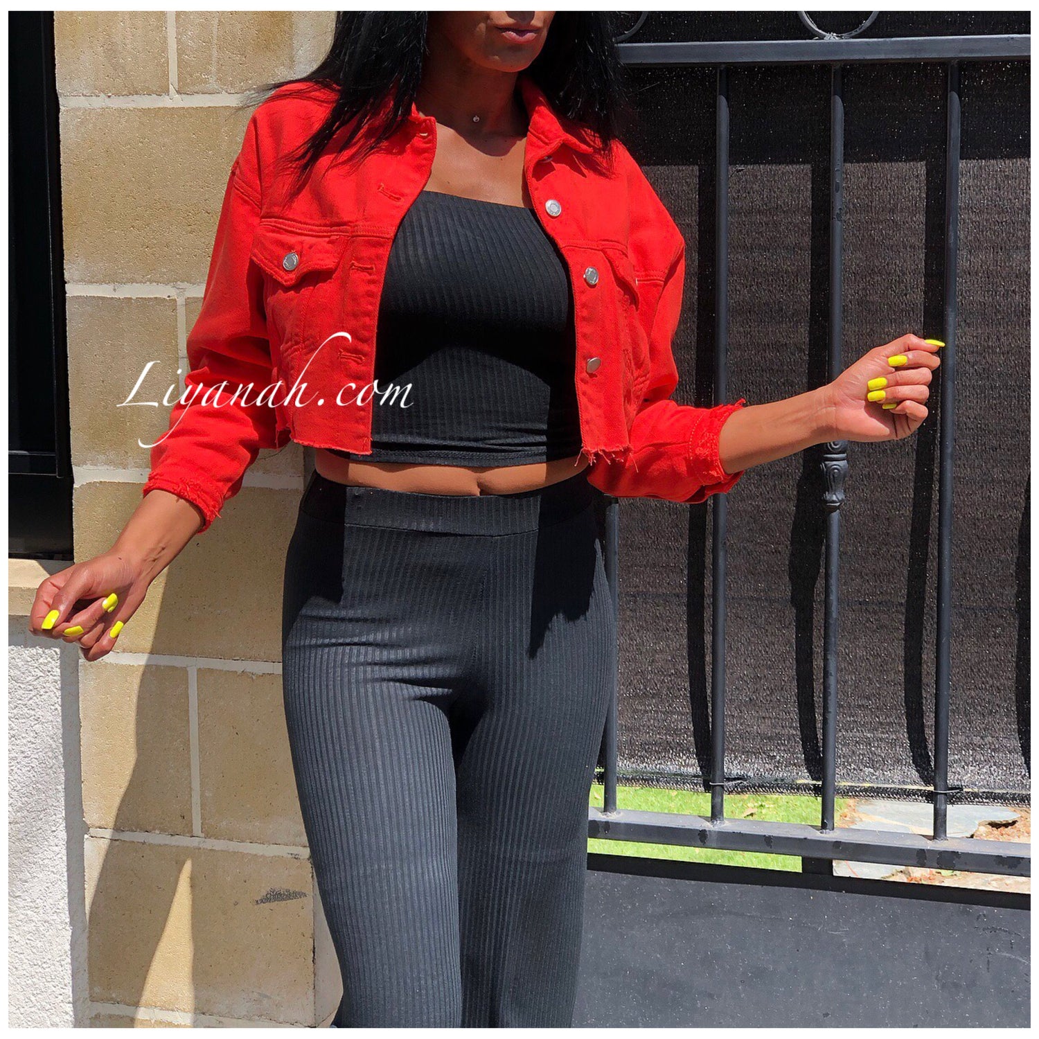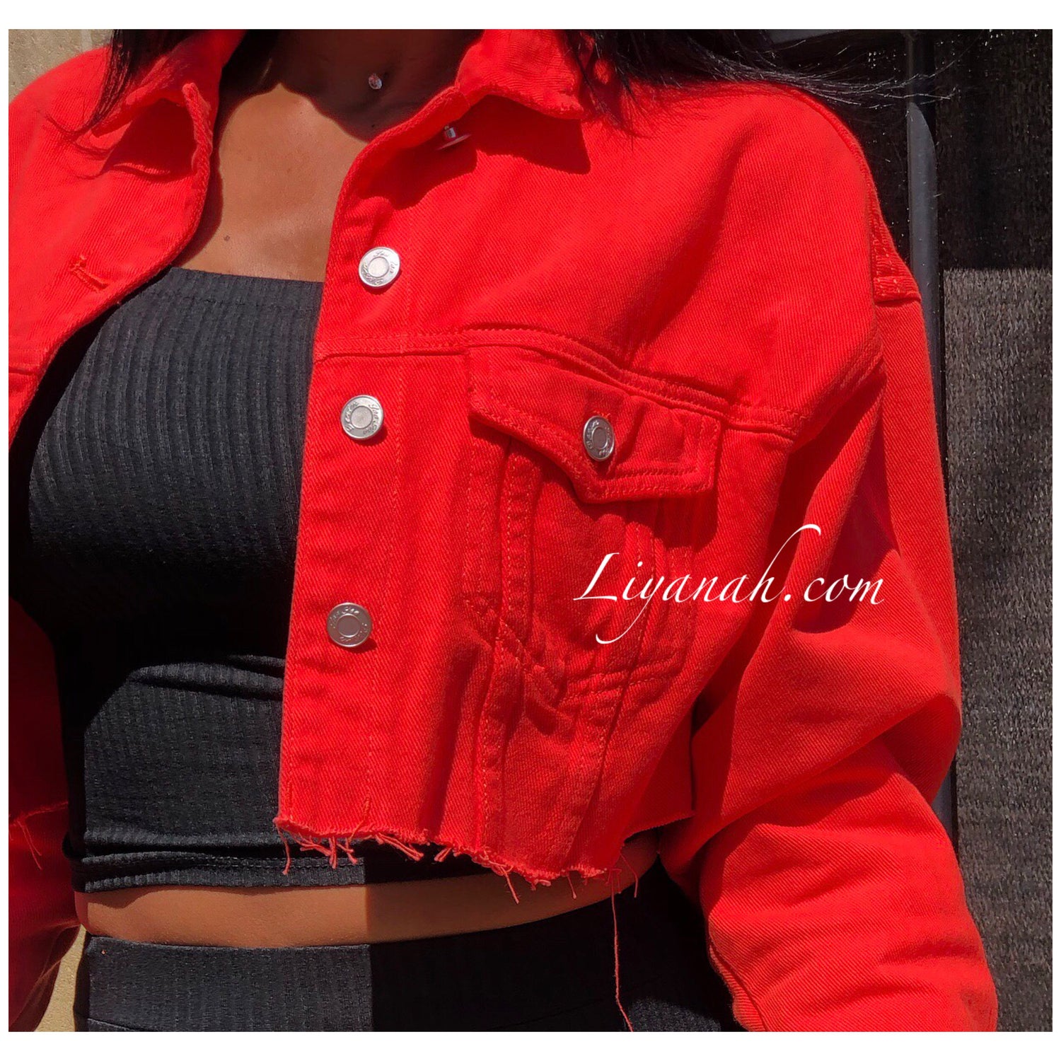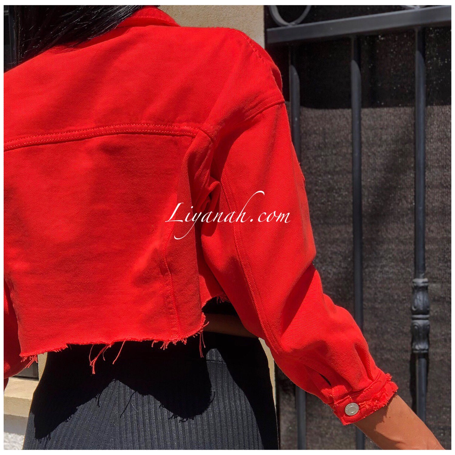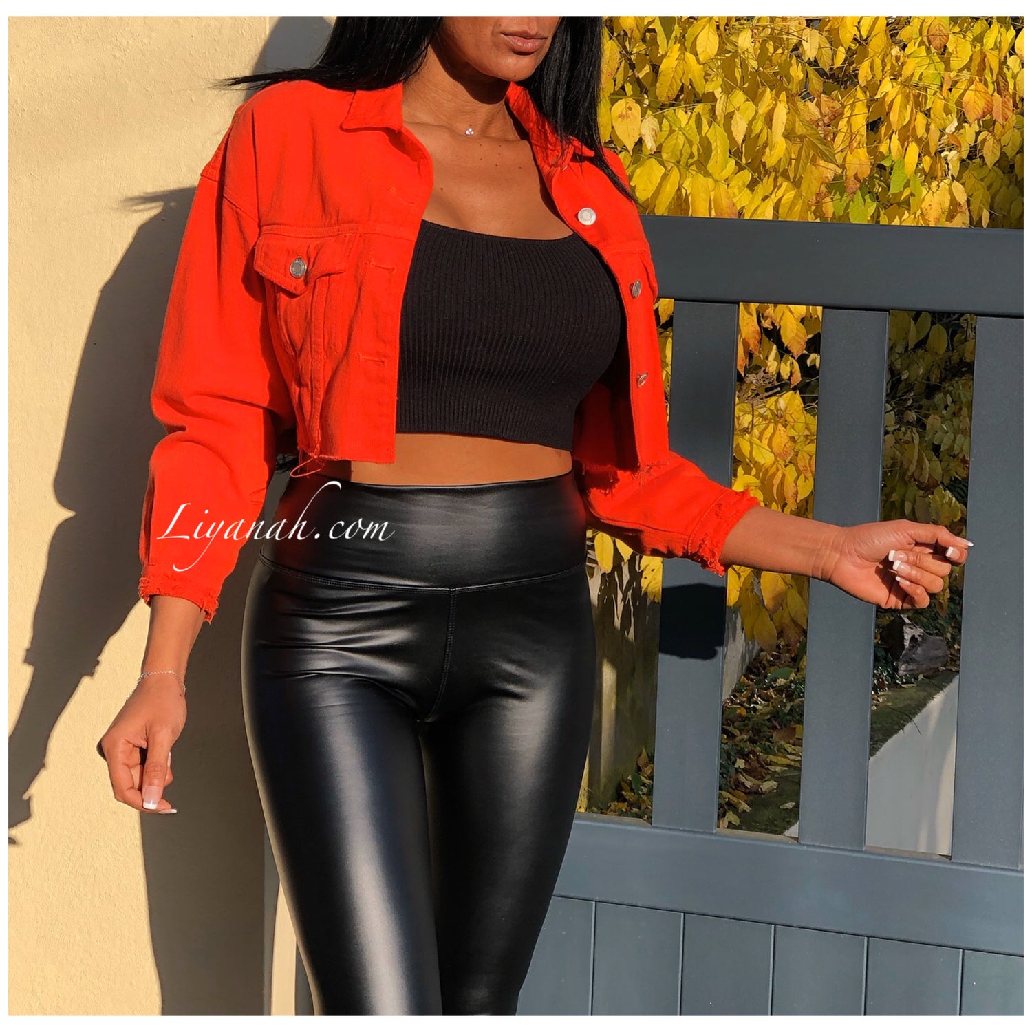 VESTE JEAN COURTE ORANGE Modèle SANANA ❤️ Veste en jeans destroy COURTE ET OVERSIZE - elle se porte courte et large, comportant deux poches à la poitrine - Taille XS à L / Composition: 100% COTON (Notre modèle porte la taille XS, fait un 32/34 Et mesure 1m70)