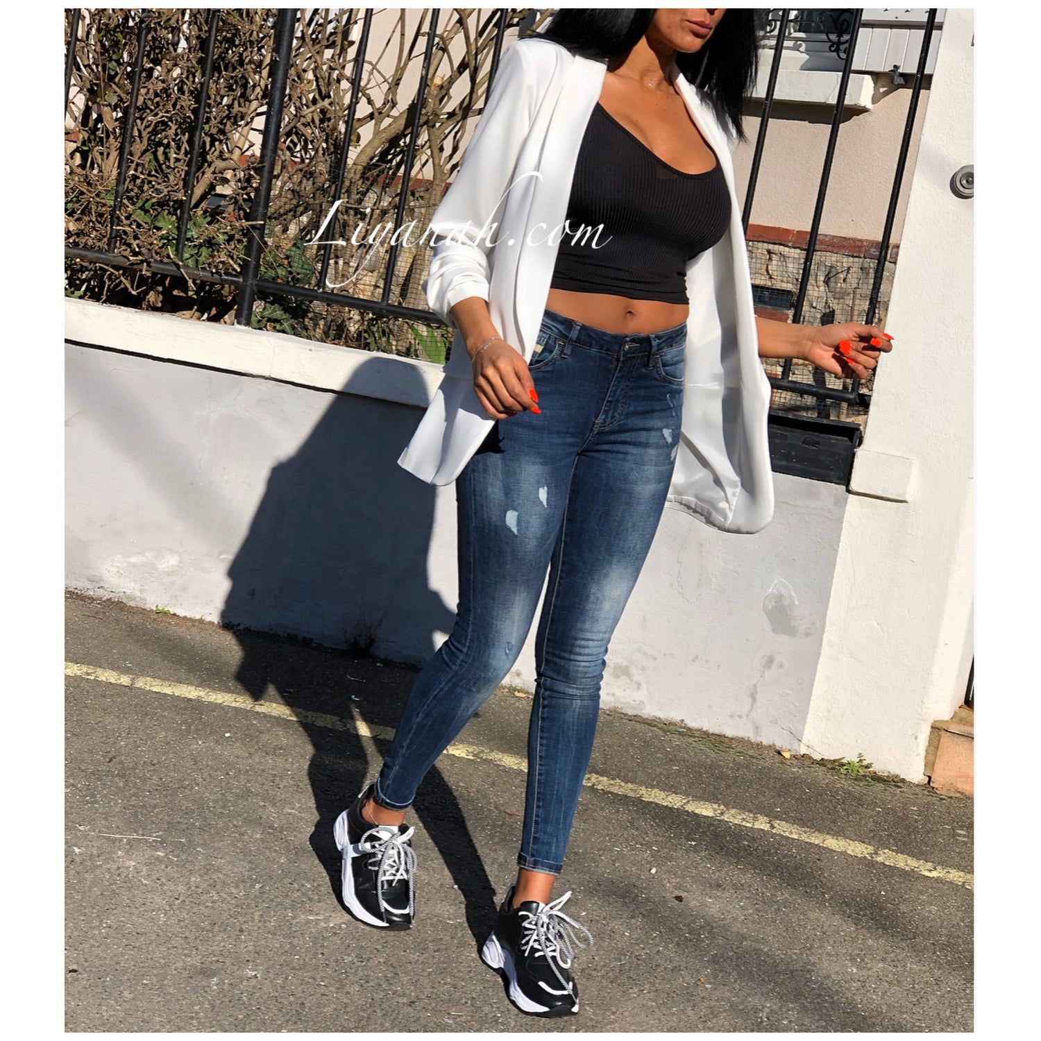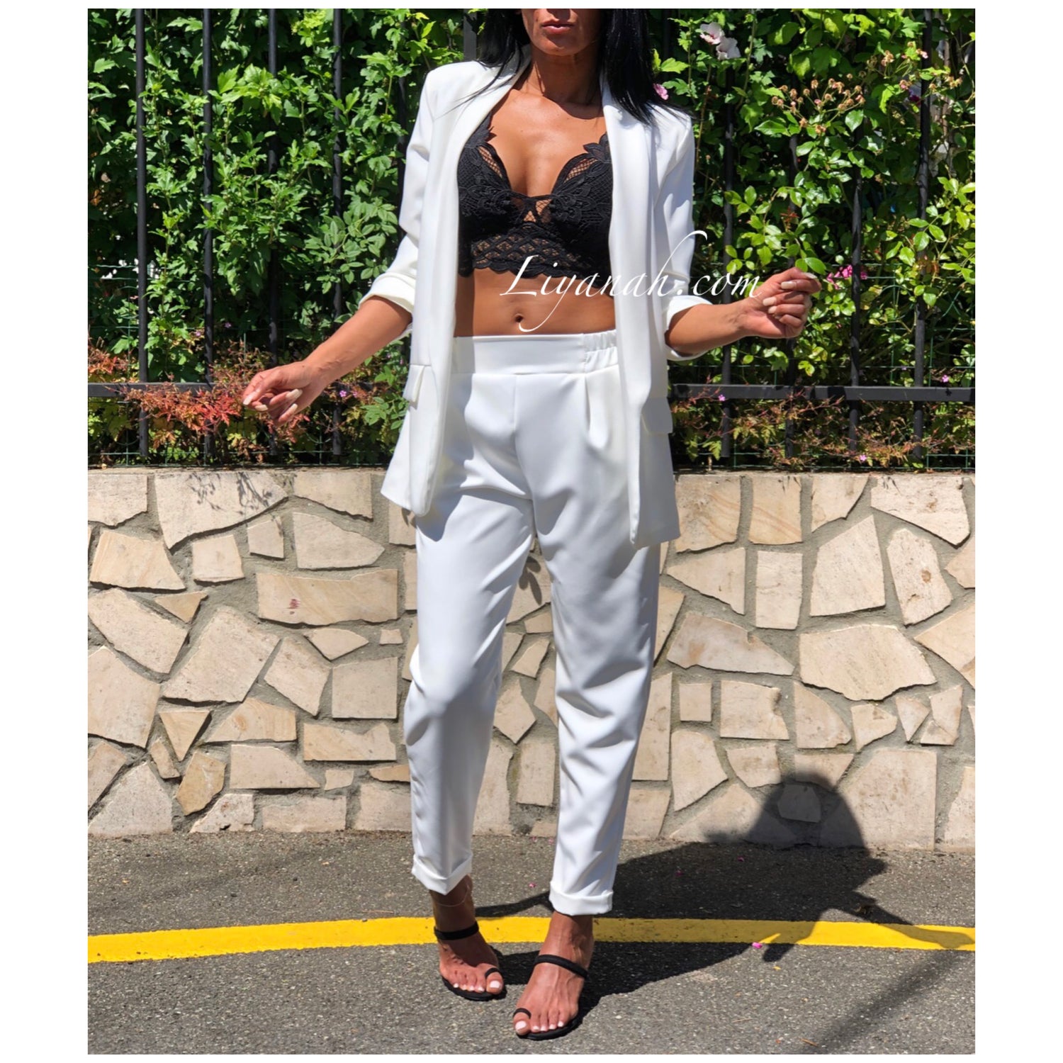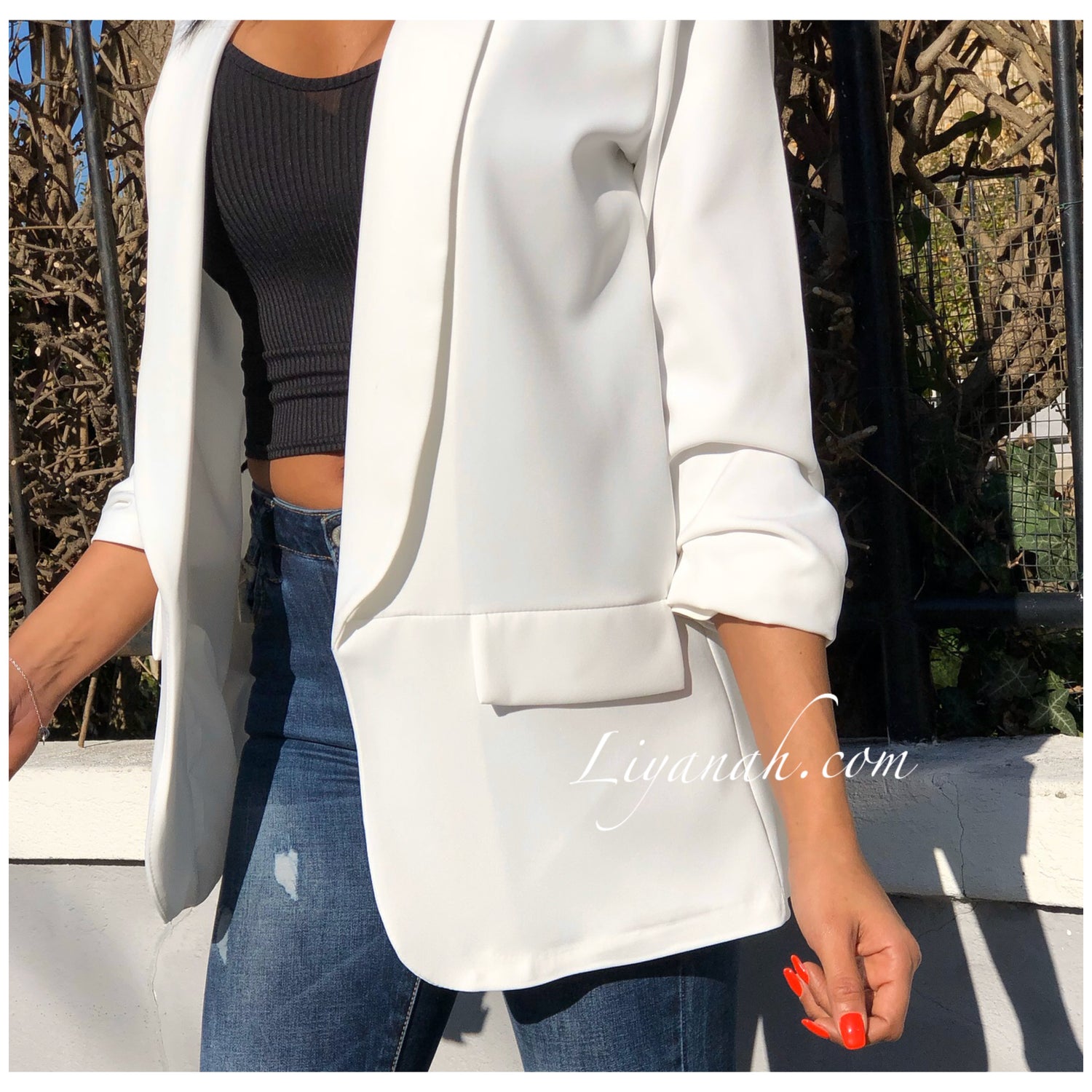 Veste tailleur, modèle léger et fluide, doublure intérieur, épaulettes, manches 3/4 fixes, deux fausses poches - 95% Polyester 5% Elasthanne - Taille Unique du 34 au 40 - Longueur : 74 cm