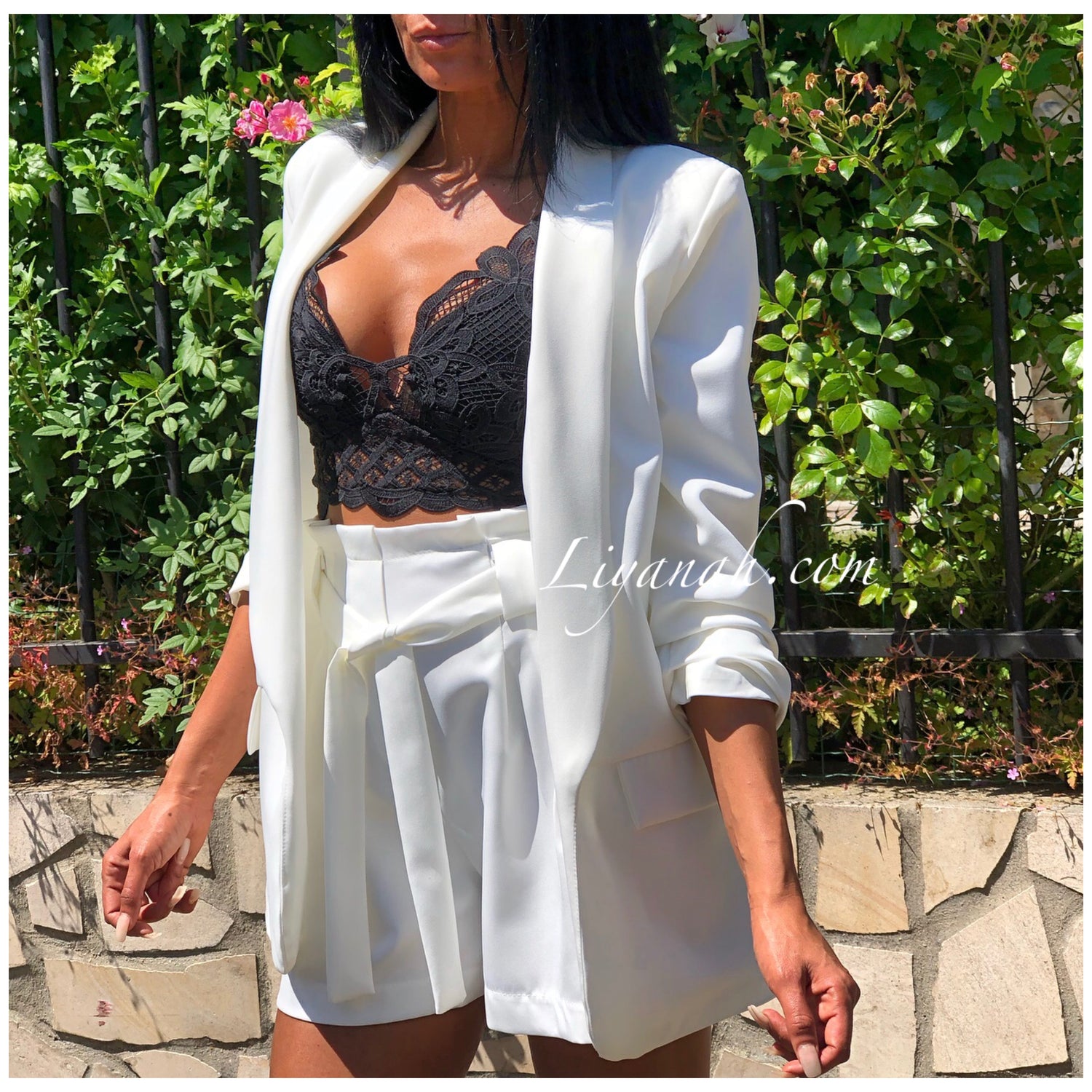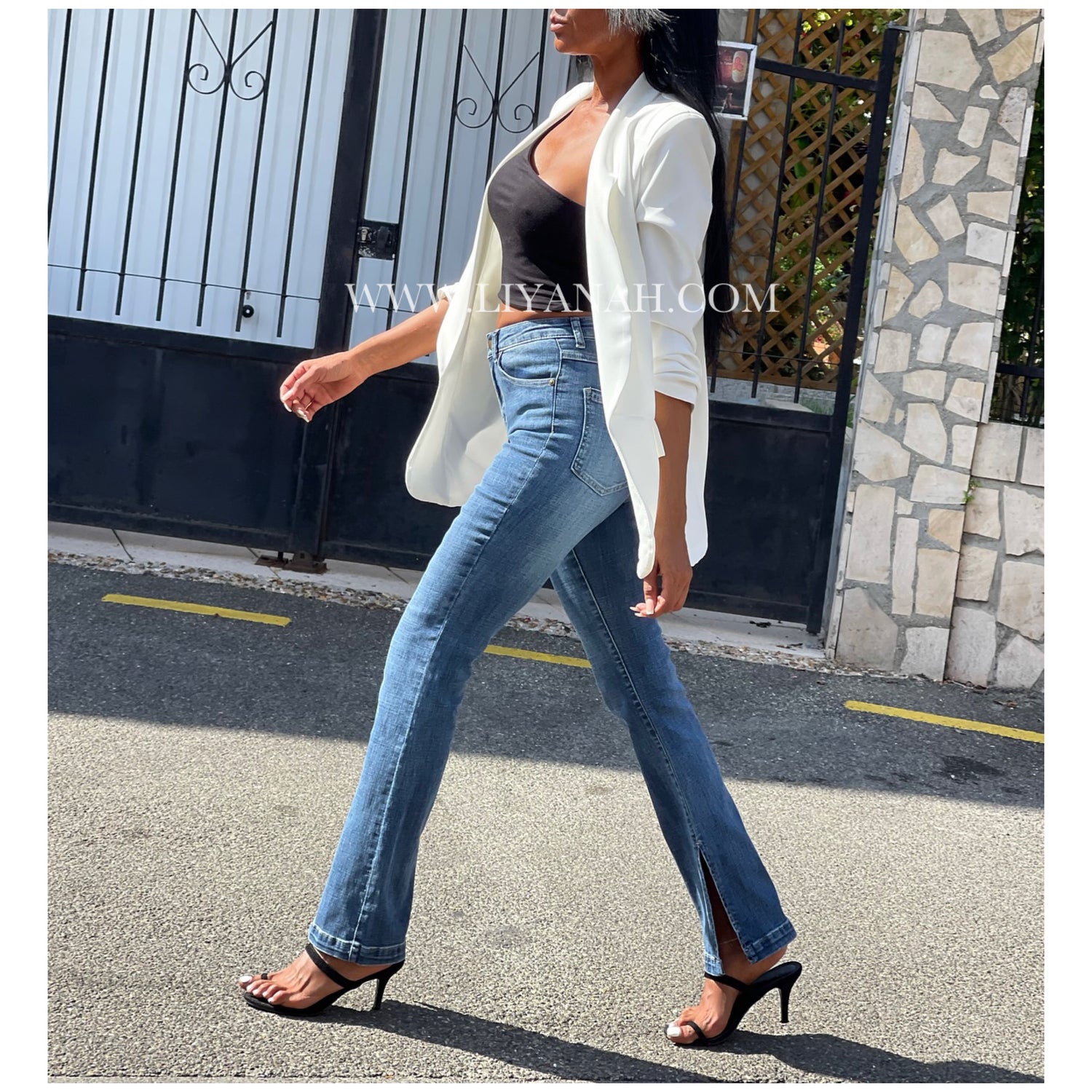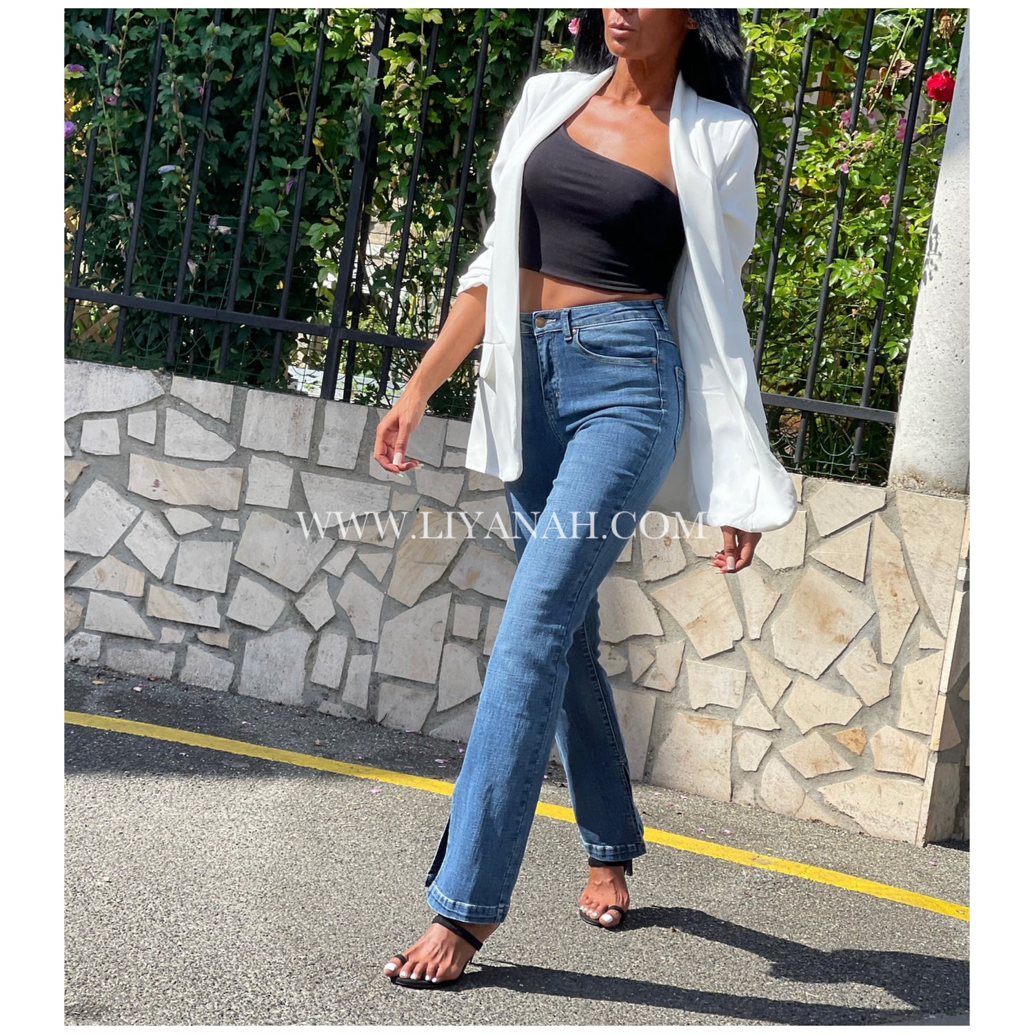 Veste tailleur, modèle léger et fluide, doublure intérieur, épaulettes, manches 3/4 fixes, deux fausses poches - 95% Polyester 5% Elasthanne - Taille Unique du 34 au 40 - Longueur : 74 cm