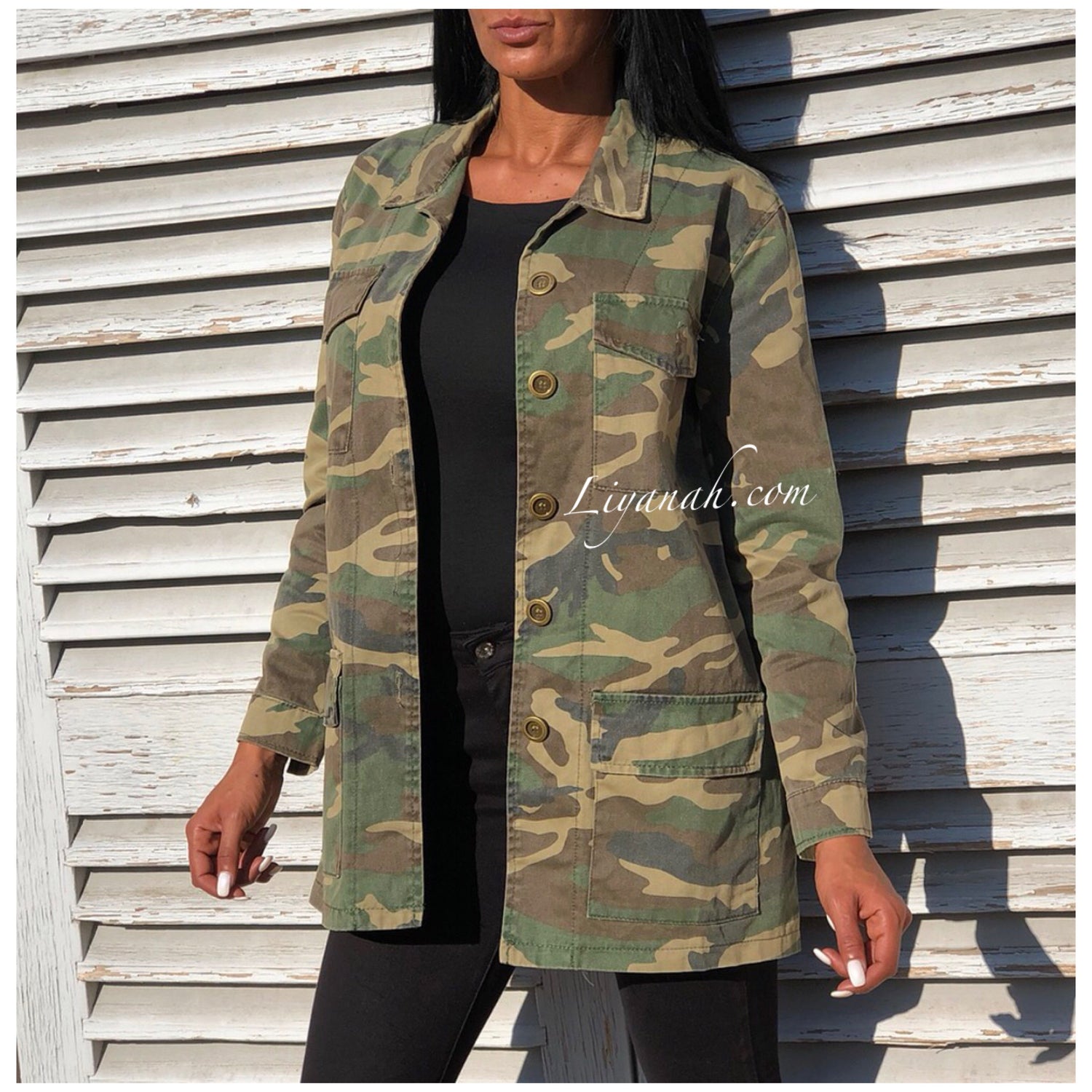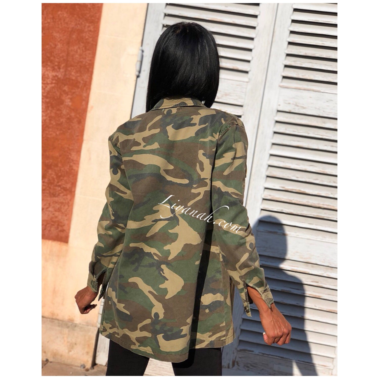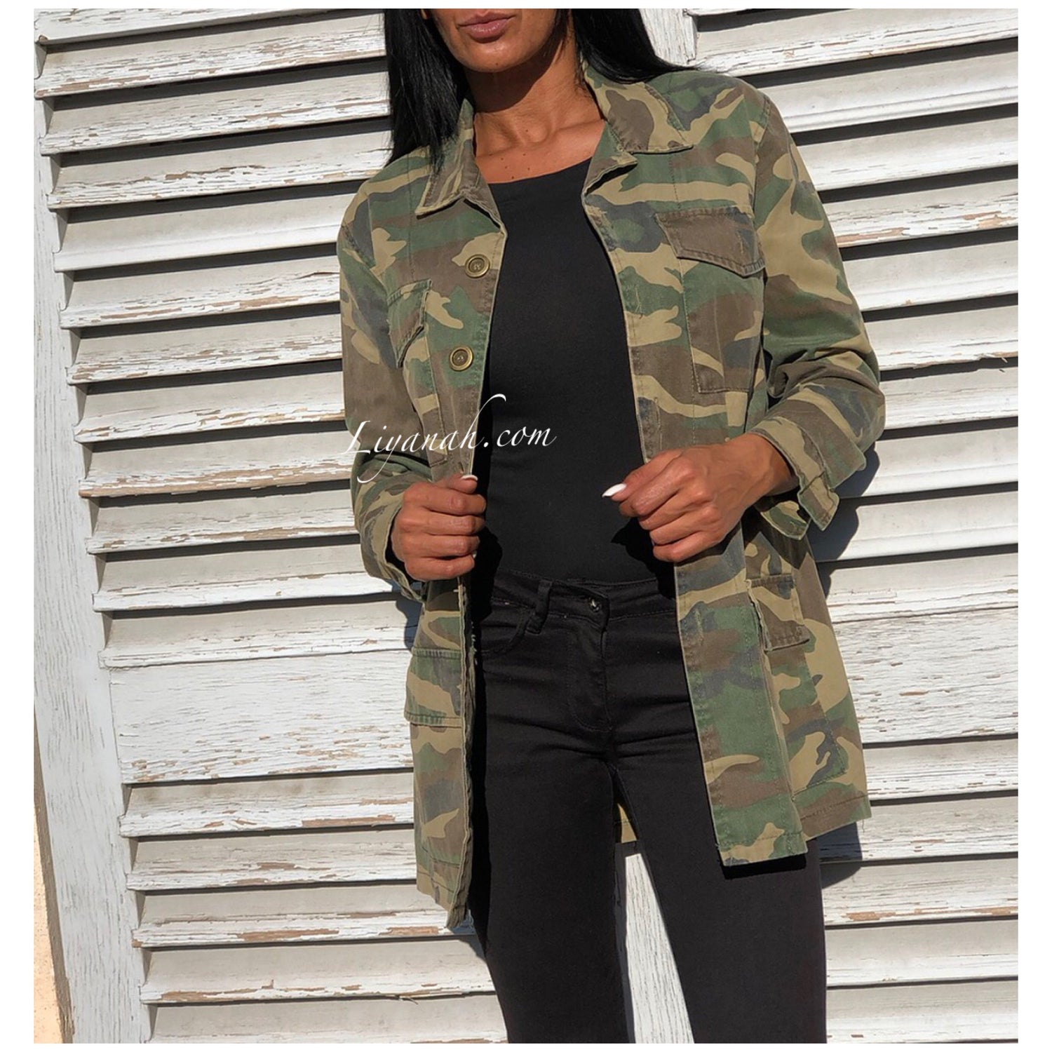 Veste Oversize Modèle ESSIA Military - Veste qui se porte légèrement ample, imprimé militaire avec 4 poches fonctionnelles - Fermeture à boutons ✖️ Taille S au L - 100% COTON - Longueur : 75 cm