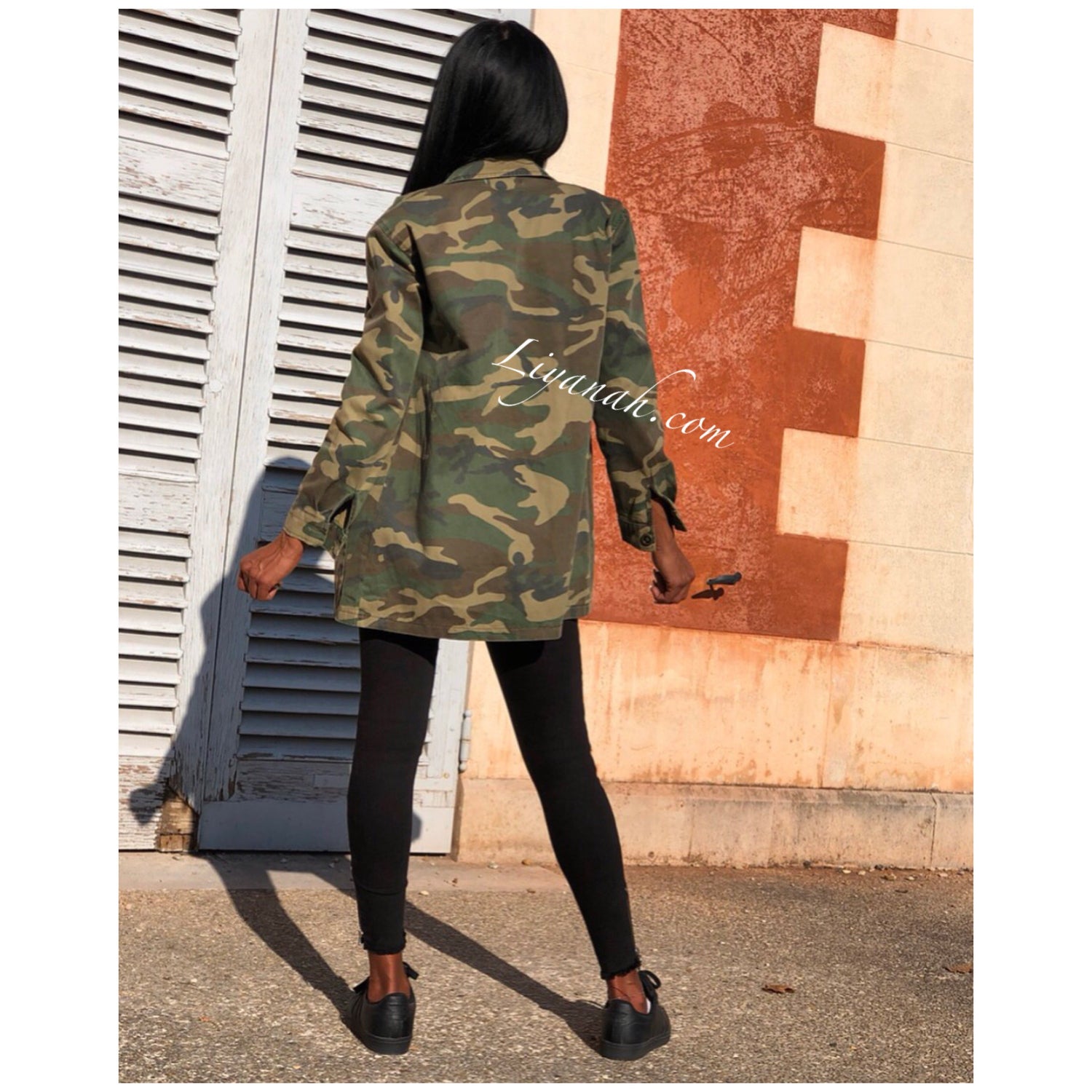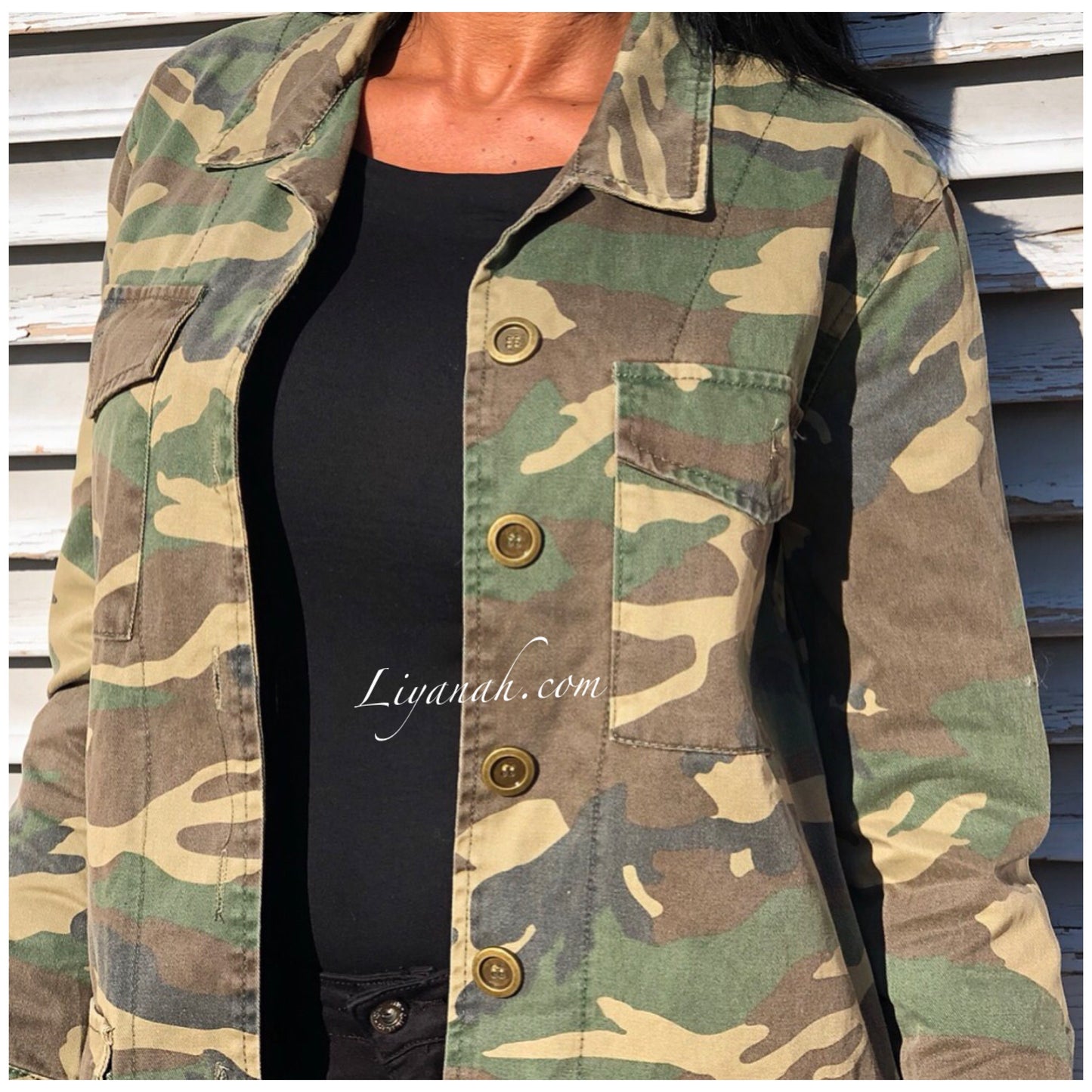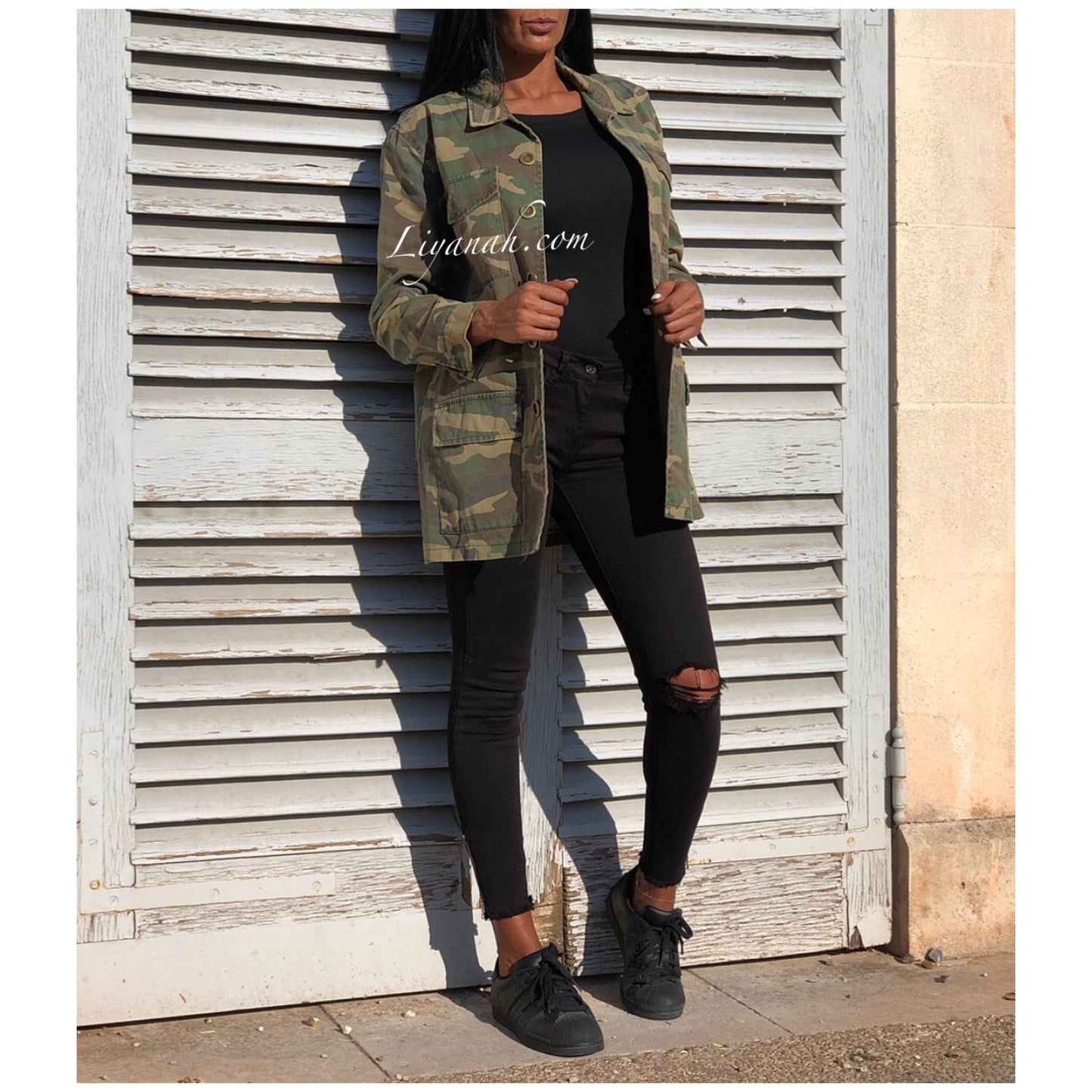 Veste Oversize Modèle ESSIA Military - Veste qui se porte légèrement ample, imprimé militaire avec 4 poches fonctionnelles - Fermeture à boutons ✖️ Taille S au L - 100% COTON - Longueur : 75 cm